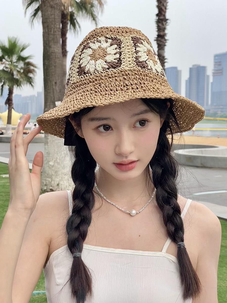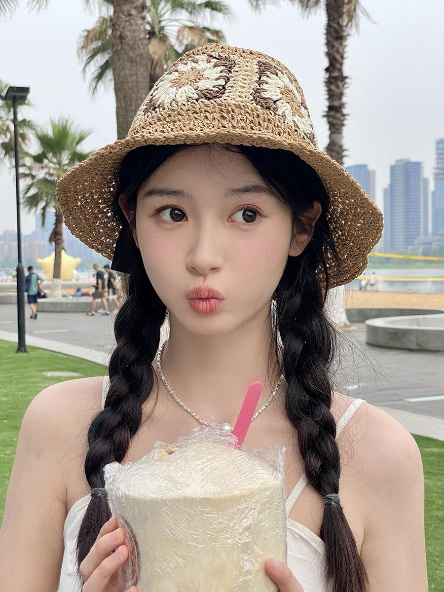 | Sombrero japonés simple hueco de ala ancha sombrero para el sol moderno casual sombrero de concha sombrero anti-ultravioleta para mujer |