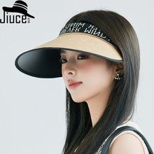 | Sombrero de paja japonés nuevo UPF50+ con parte superior hueca, logotipo de letras moderno, sombrero de sol de ala ancha para ciclismo, protección solar y protección UV |