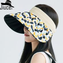 | Sombrero para el sol para mujer, sombrero de copa vacía de doble cara con estampado de moda, sombrero para el sol de ala ancha de nuevo estilo, sombrero para el sol de ocio anti-ultravioleta |