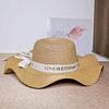 | Sombrero de copa hueco de plástico negro con letras de sol nuevo de primavera y verano para mujer, verano, ala grande, sombrero para el sol anti-ultravioleta |