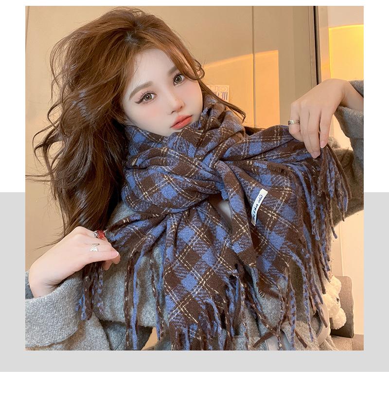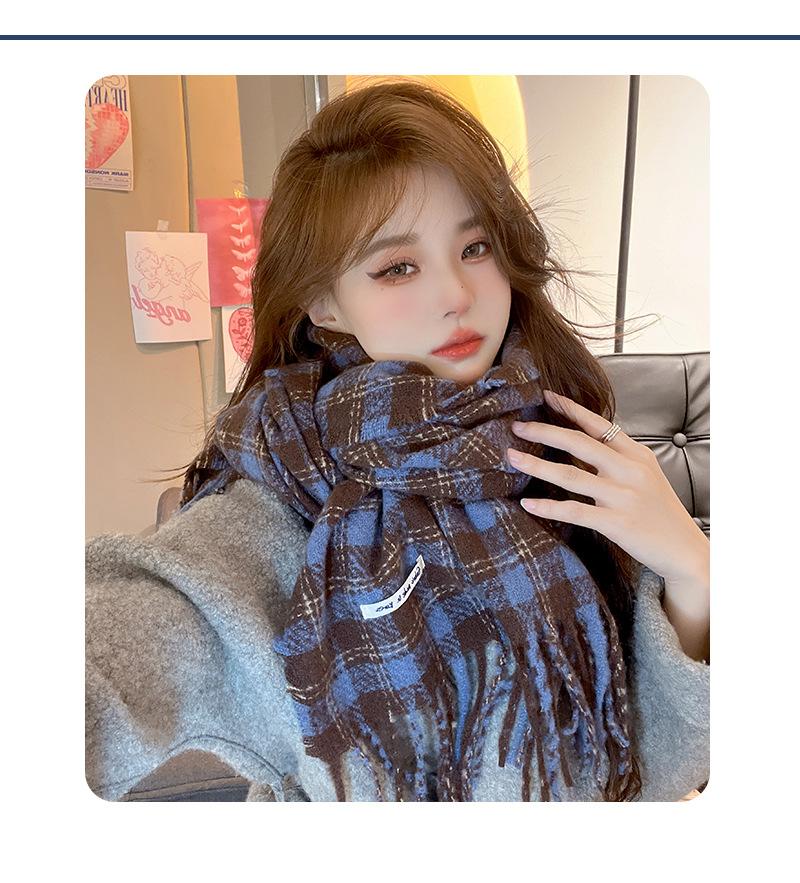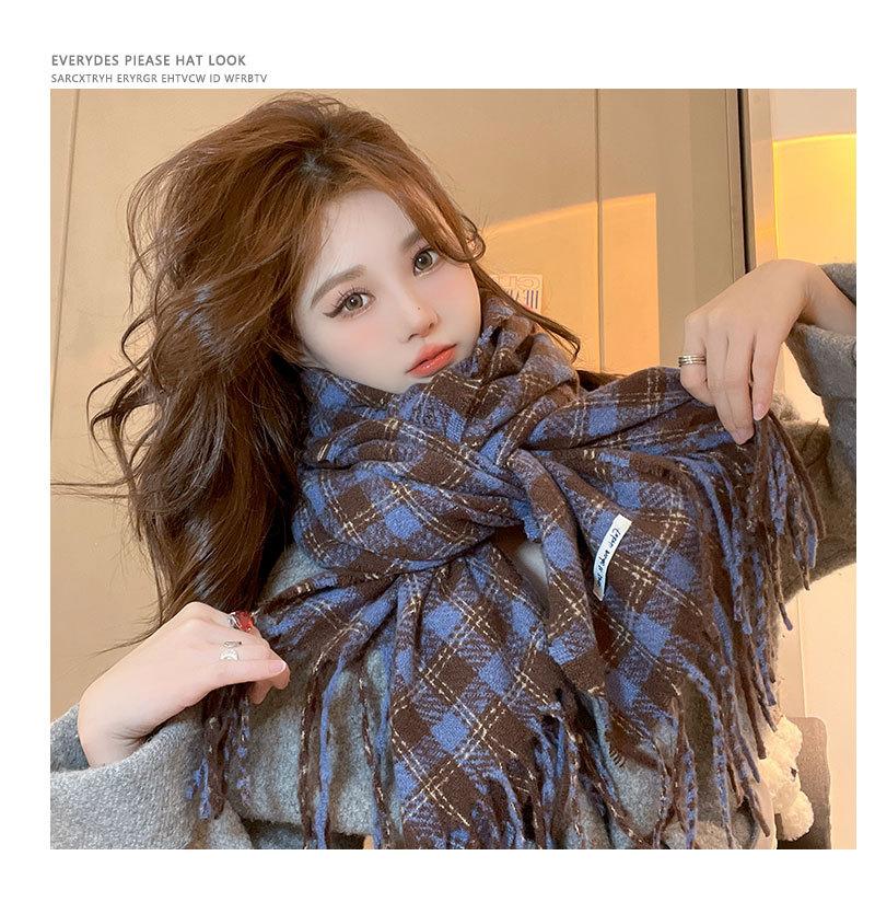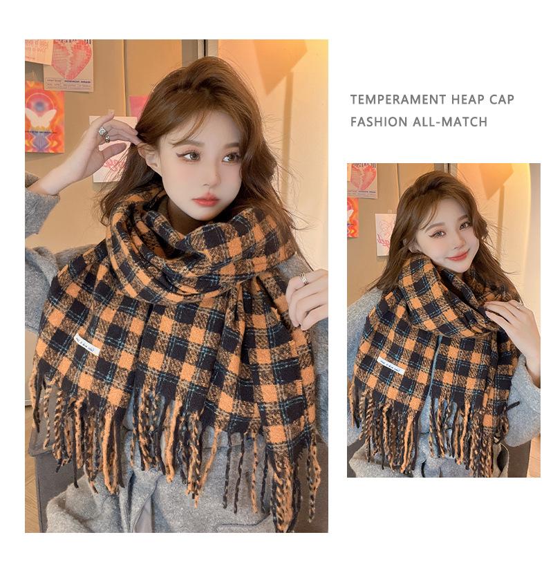Bufanda estilo coreano, suave y cómoda, estilo occidental, combina con todo, cálida, gruesa, moderna, con borlas, para estudiantes, para otoño e invierno.