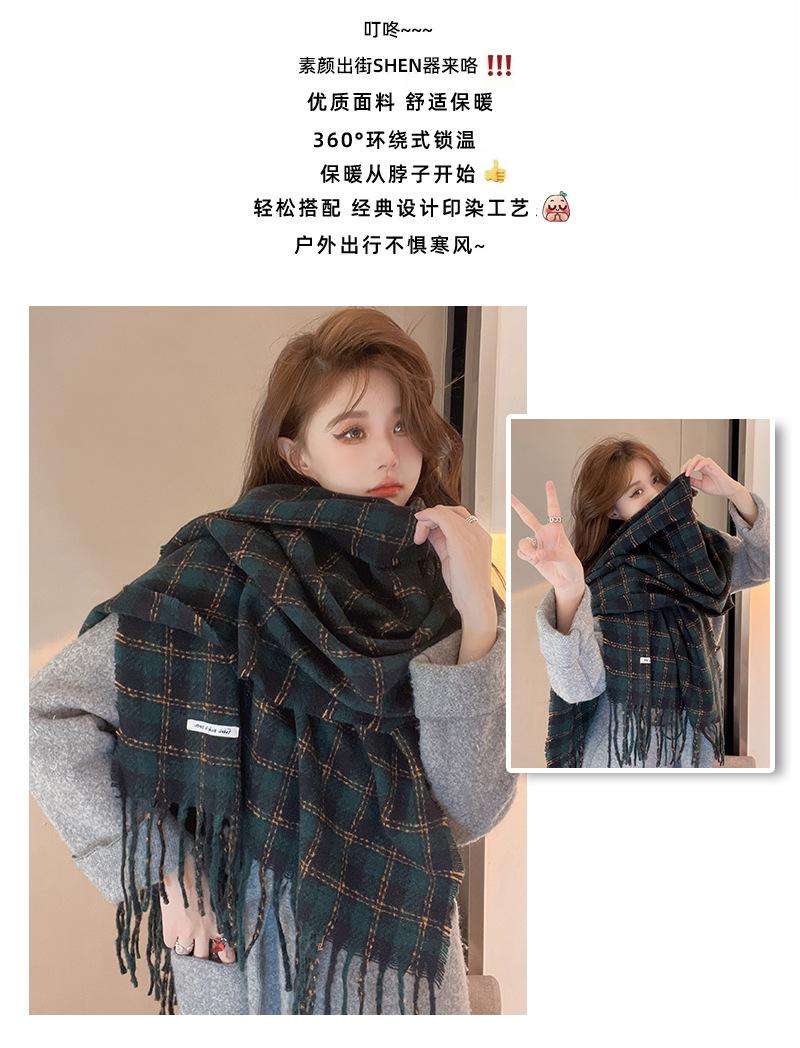 C1800 fringed checkered patch scarf Gray, C1800 tassel checkered patch scarf dark green, C1800 fringed plaid s...