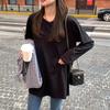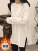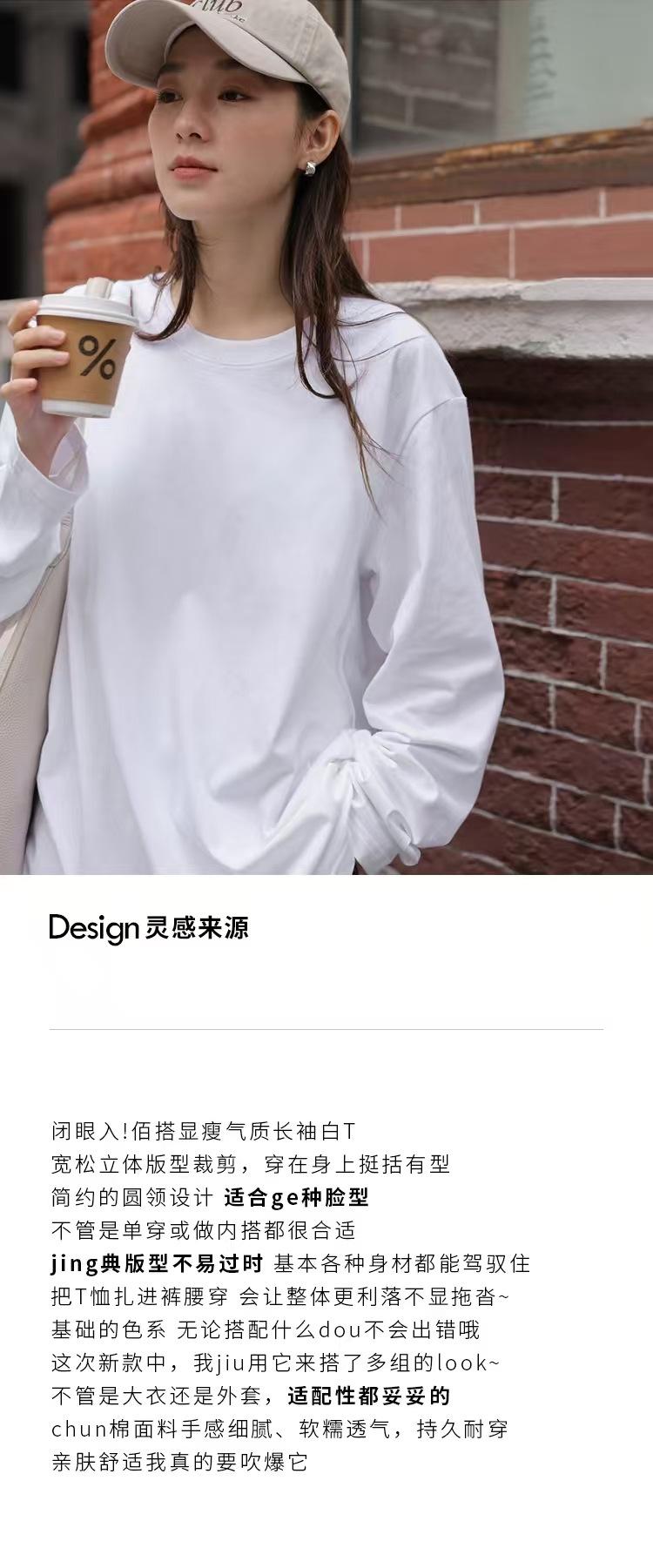 Camiseta básica de largo medio para mujer 2025 Otoño Sudadera de cuello redondo Algodón suelto Cubre glúteos Camiseta blanca de manga larga