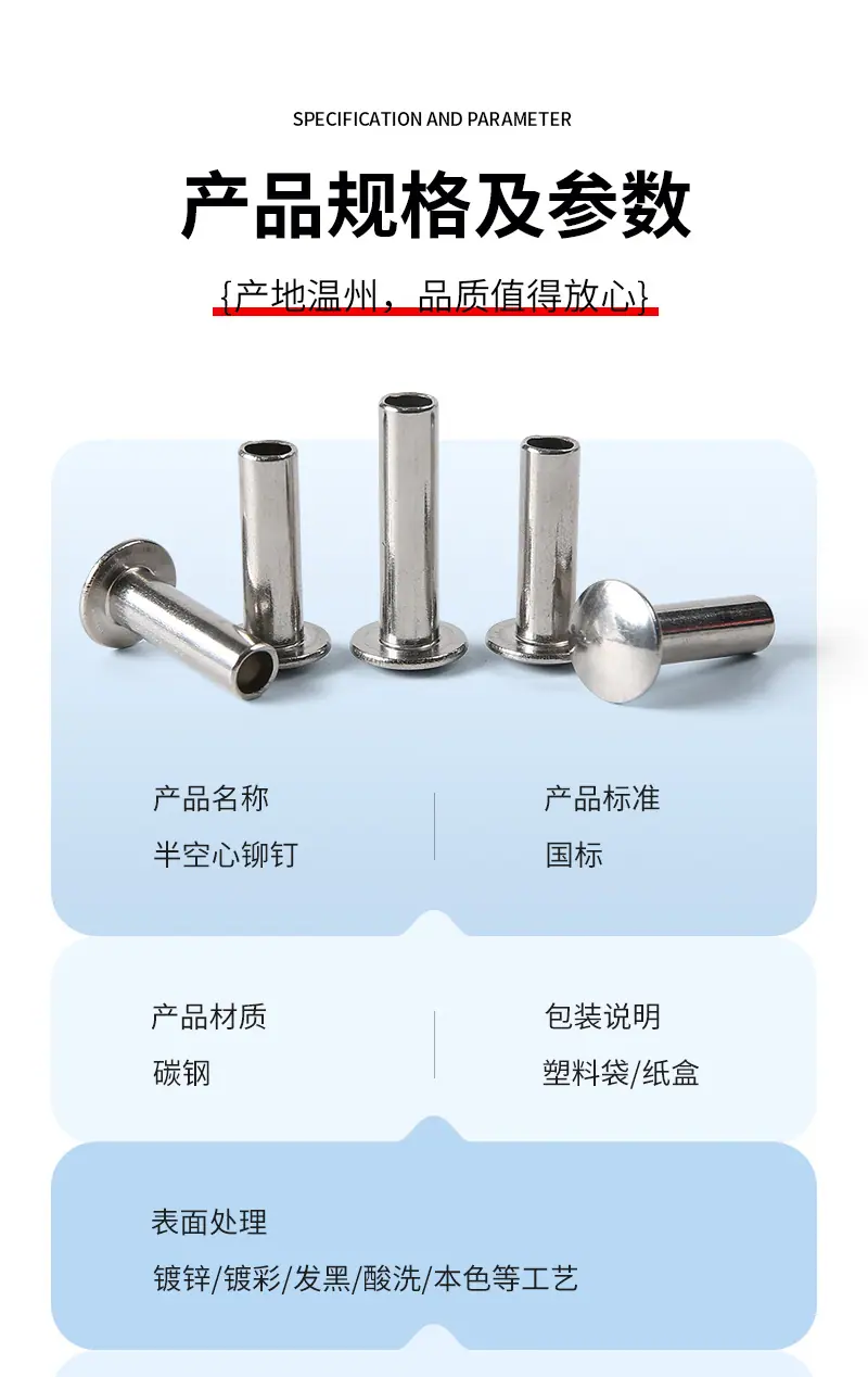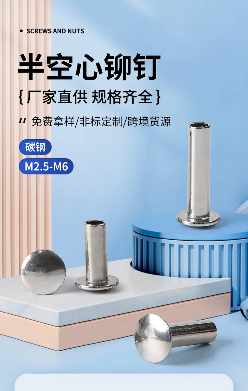 Remache semihueco galvanizado de acero al carbono, remache de cabeza redonda plana GB873, remache hueco de cabeza plana grande M2.5-M6