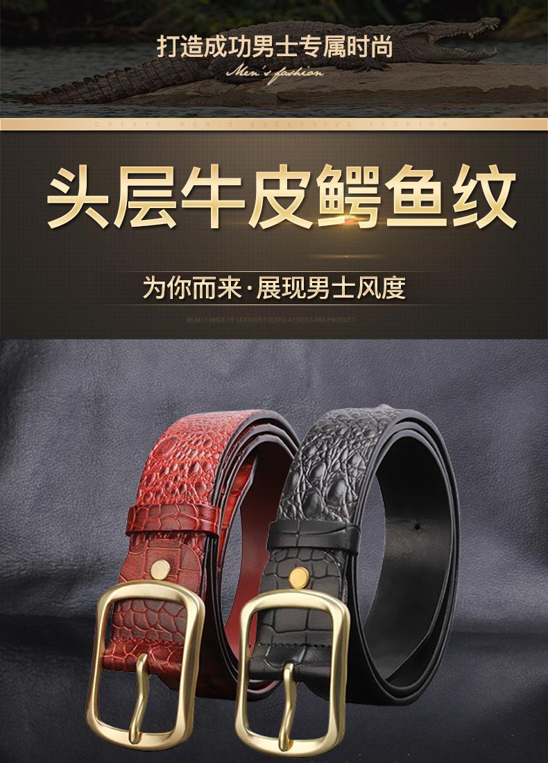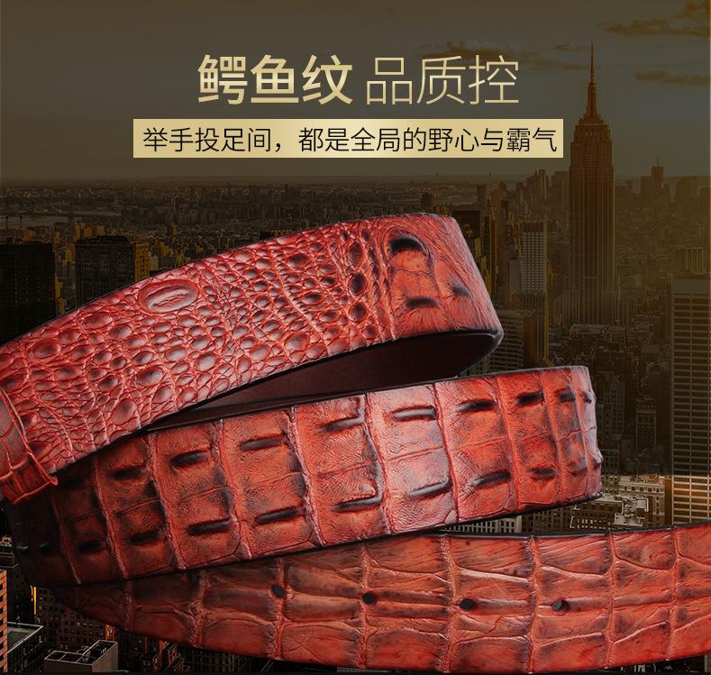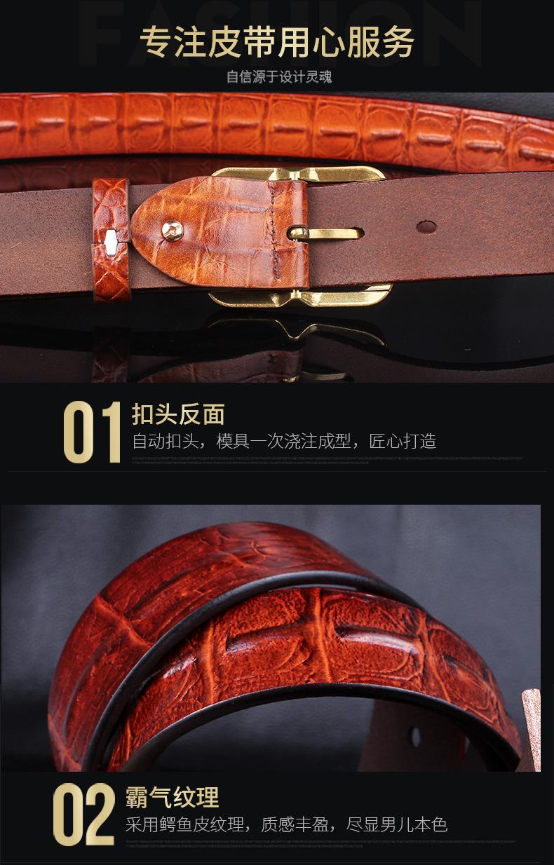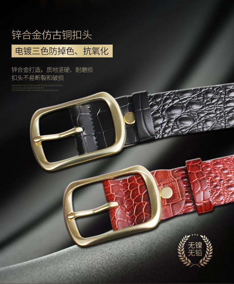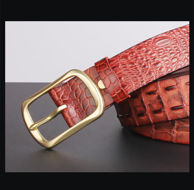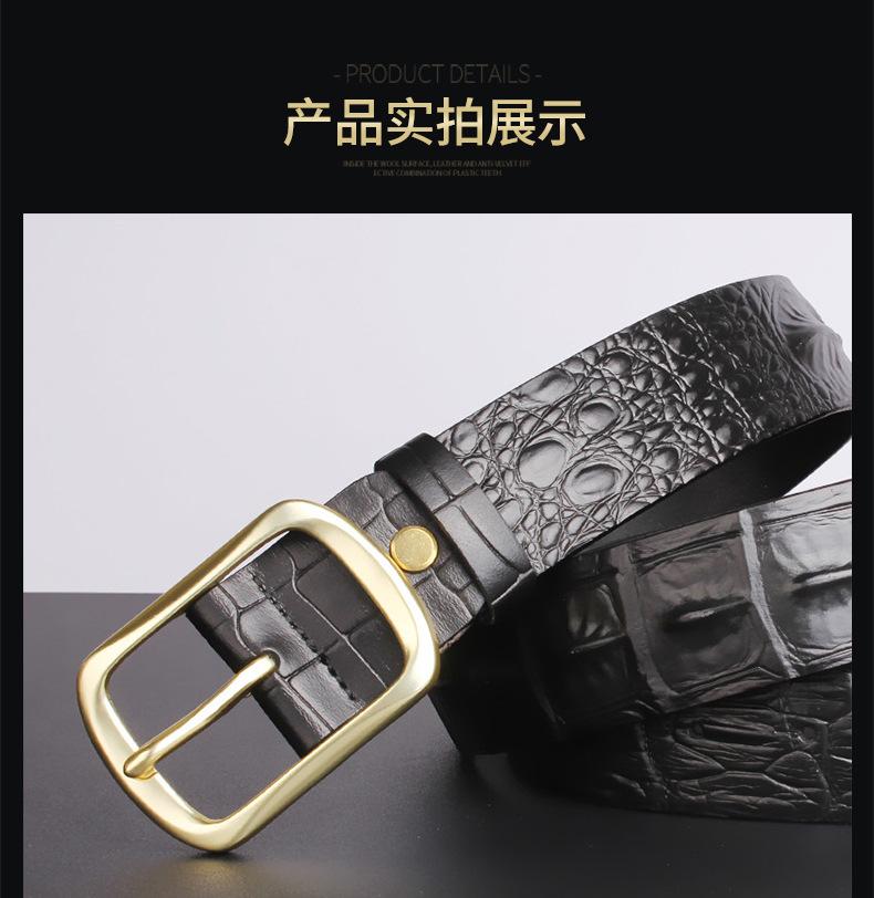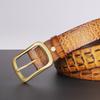 Cinturón de Cuero Genuino para Hombre con Hebilla de Púa, Capa Superior de Piel de Vaca, Patrón de Cocodrilo, Estilo Casual de Negocios, Lujo Ligero
