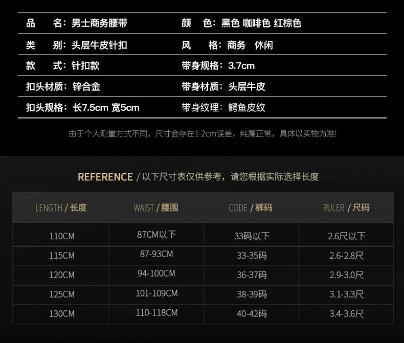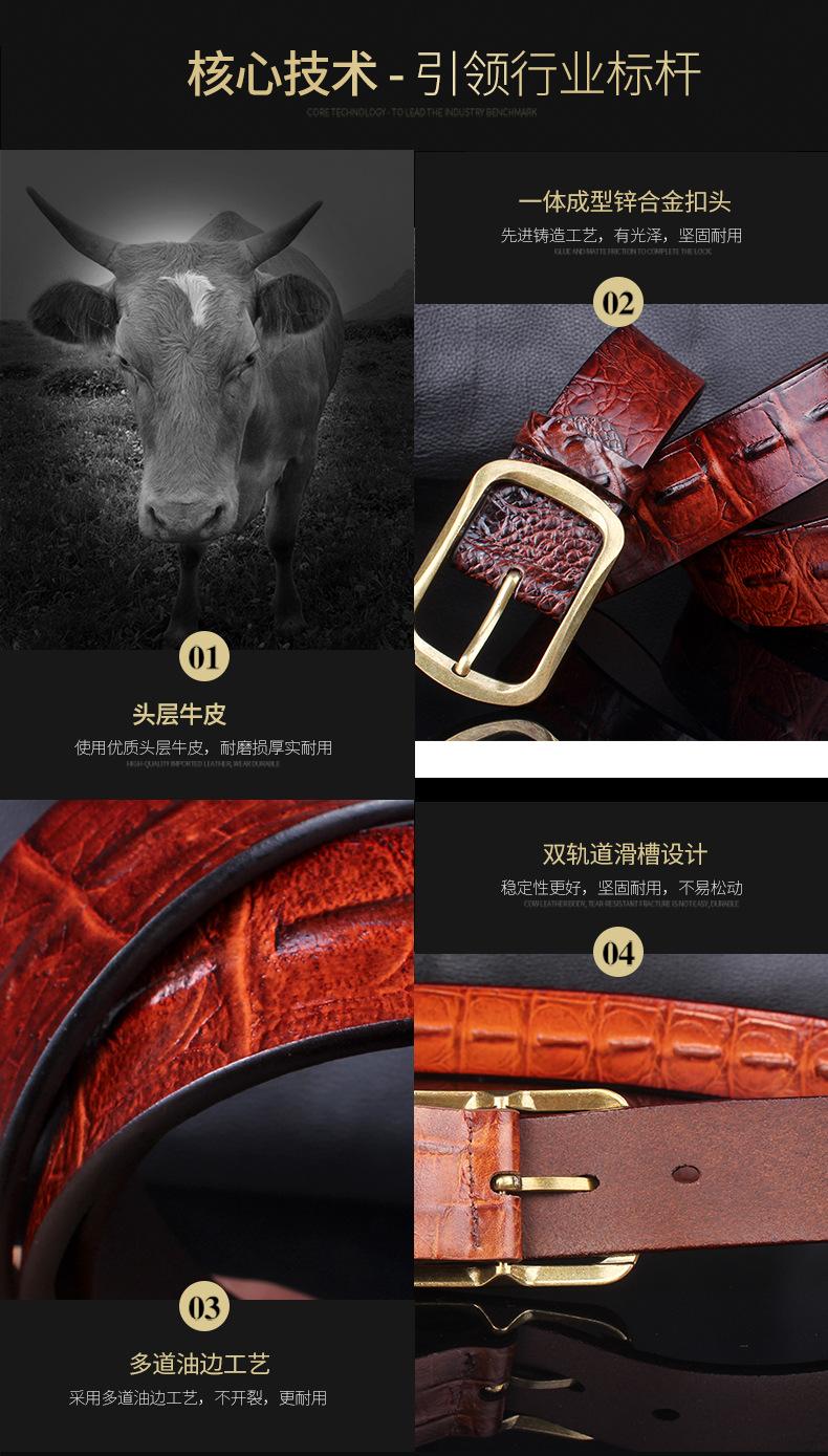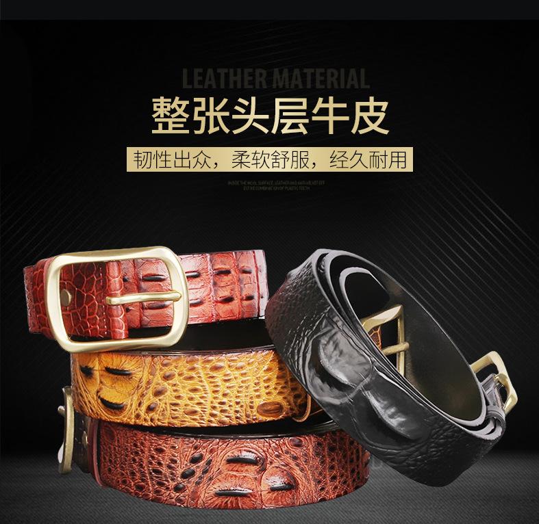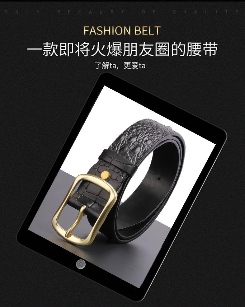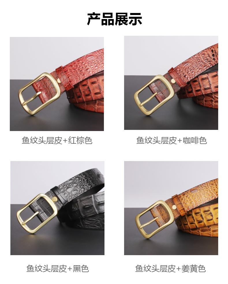 Cinturón de Cuero Genuino para Hombre con Hebilla de Púa, Capa Superior de Piel de Vaca, Patrón de Cocodrilo, Estilo Casual de Negocios, Lujo Ligero