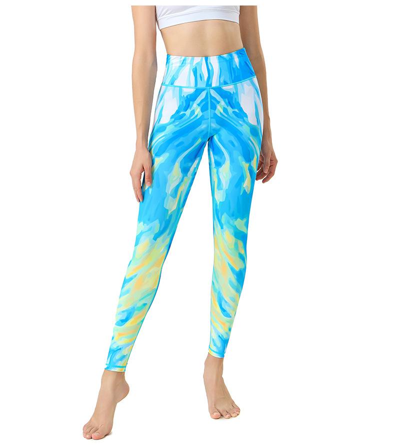 2023 Nuevo Transfronterizo Pantalones de Yoga Deportivos Fitness para Mujer Ajustados Cintura Alta Levanta Cadera Pantalones de Fitness Ropa de Yoga Estampada Europea y Americana
