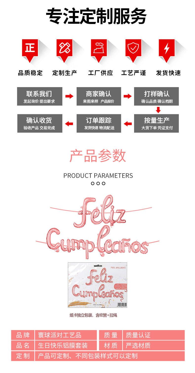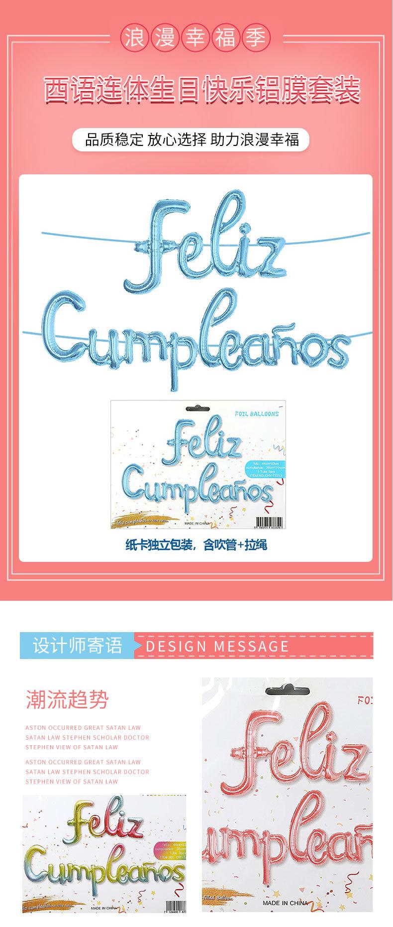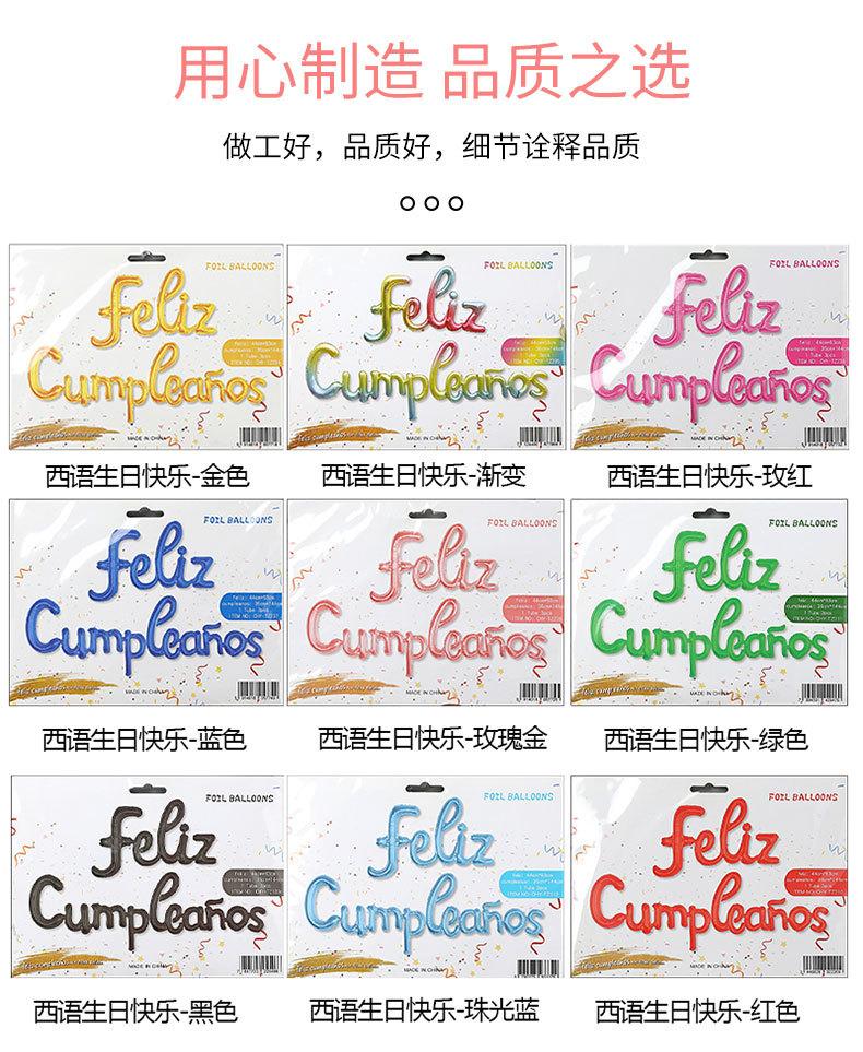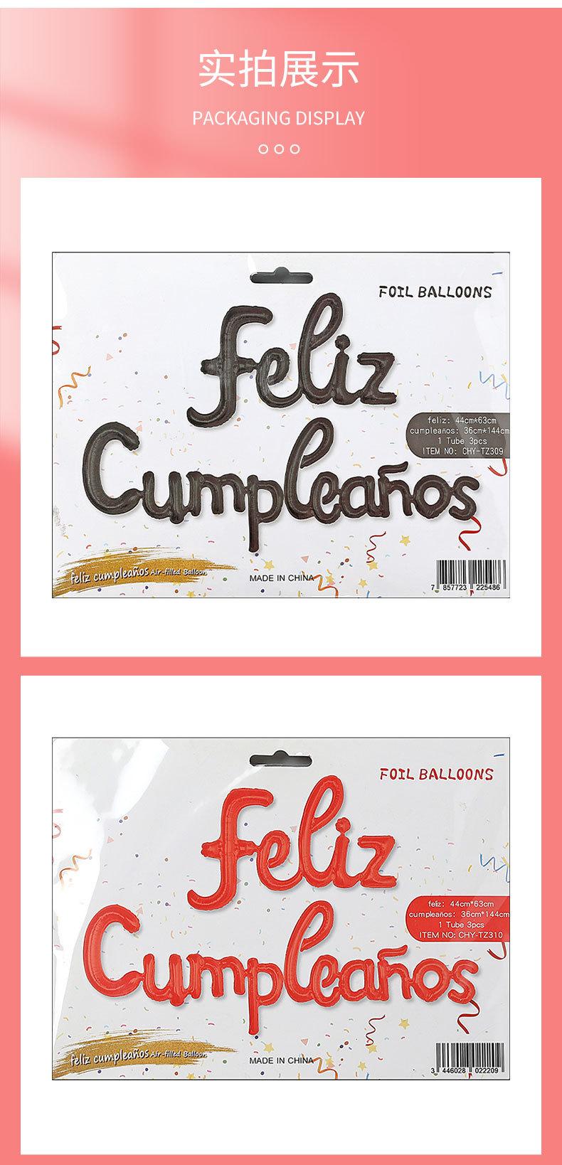 Traje de película de aluminio de feliz cumpleaños español unido al por mayor de fábrica, globo de feliz cumpleaños con embalaje