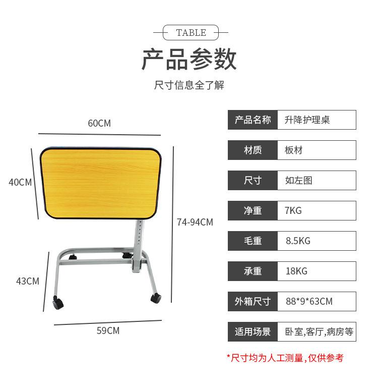 Escritorio plegable manual de elevación directa de fábrica para hospital, hogar, computadora, plegable, integrado como mesita de noche, escritorio abatible