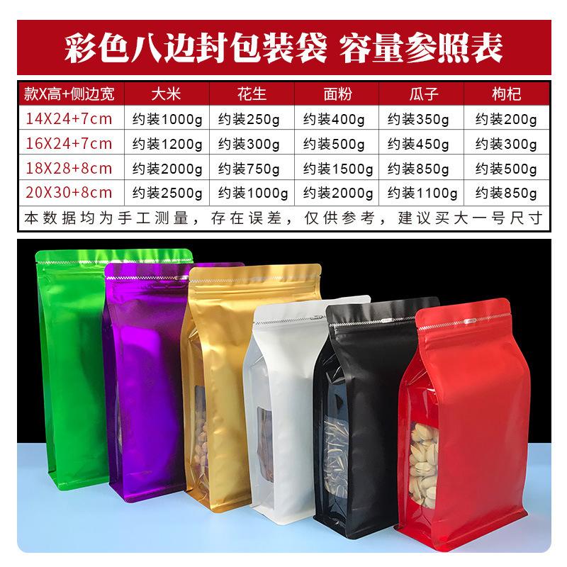 Bolsa de Papel de Aluminio de Sellado de Ocho Lados Colorida Bolsa de Empaque para Té Bolsa de Papel de Aluminio con Ventana Lateral Bolsa de Empaque Sellada para Alimentos de Grado Alimenticio para Comida de Gato y Perro