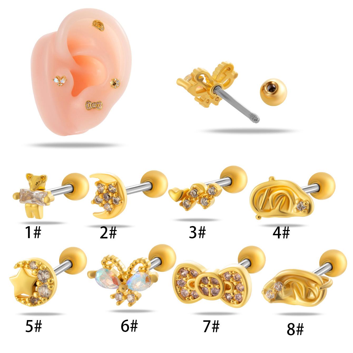 nombre del producto | Nuevo arco de serpiente de flor de circonio con incrustaciones de cobre de Henson, varilla de acero inoxidable, moderno y versátil, popular piercing de cartílago, aretes para el hueso de la oreja |