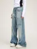 Hey+Jeans Jeans Blancos de Pierna Ancha para Mujer Primavera y Verano 2024 Cintura Alta Sueltos Versátiles Pantalones Largos hasta el Piso Cintura Alta Adelgazantes