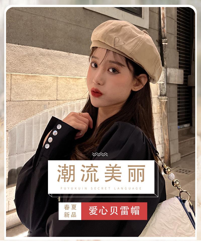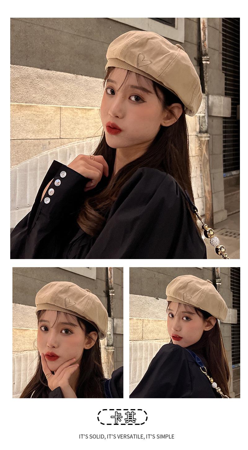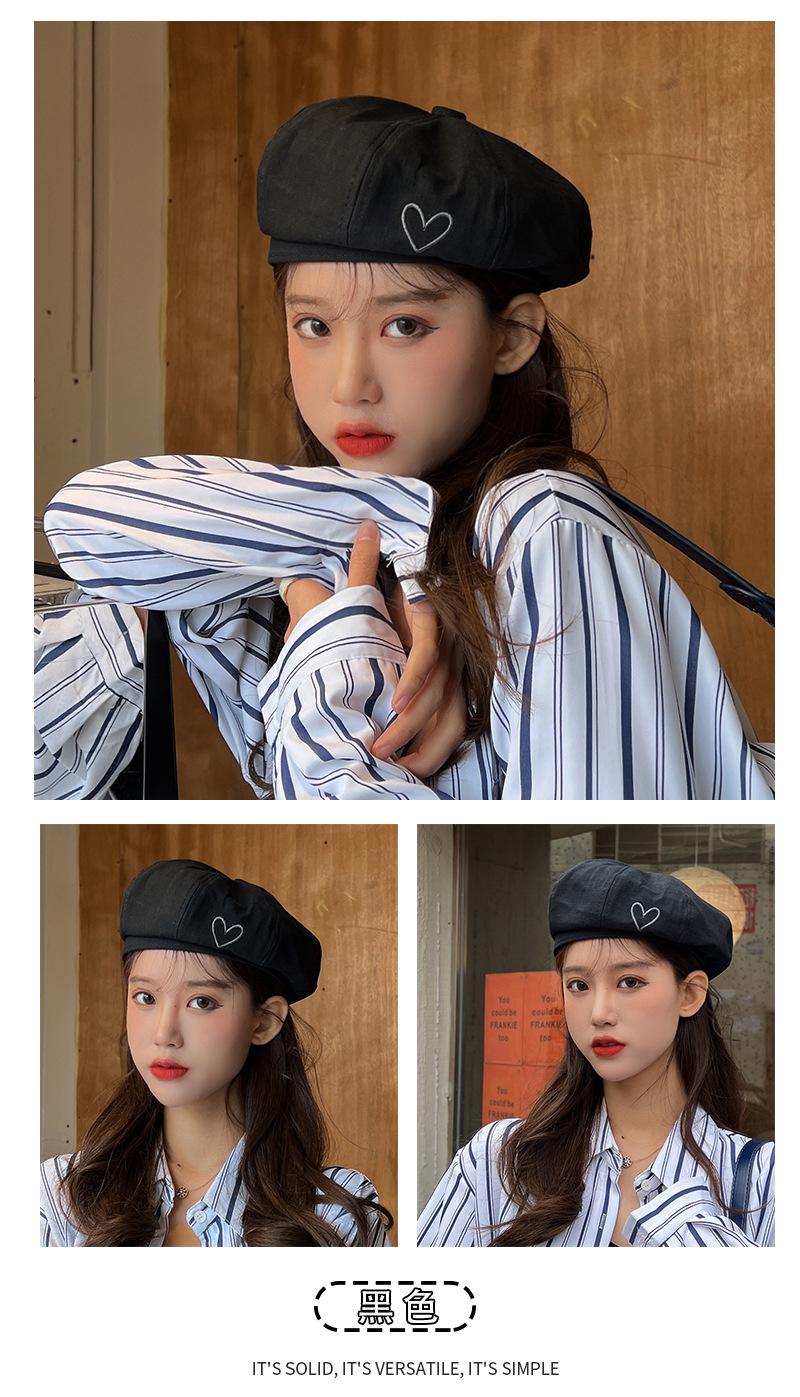 C0723 Simple Love Embroidered Beret Black, C0723 Simple Love Embroidered Beret Khakis, C0723 Simple Love Embro...