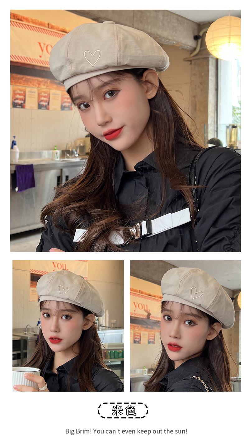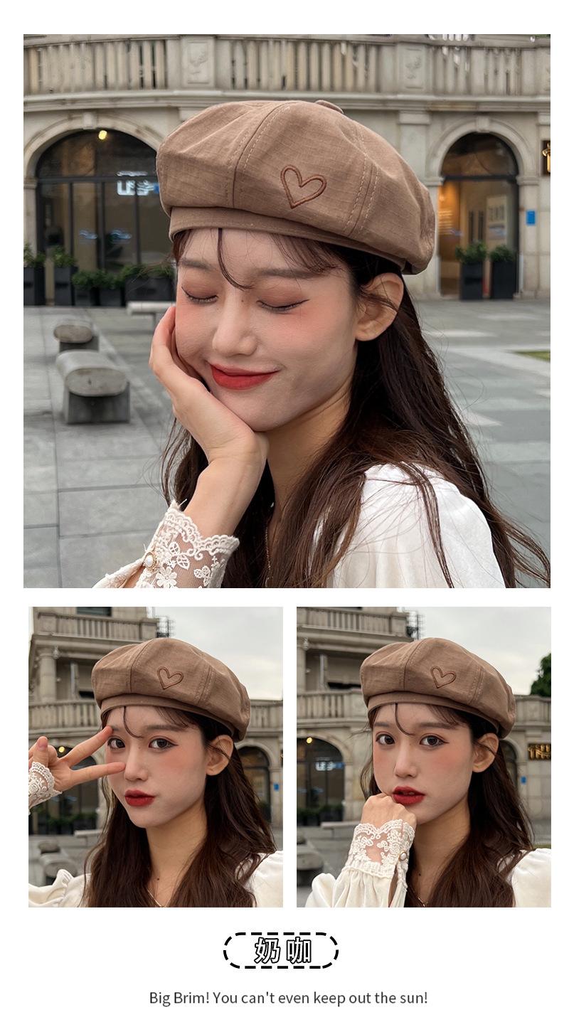 C0723 Simple Love Embroidered Beret Milk Curry