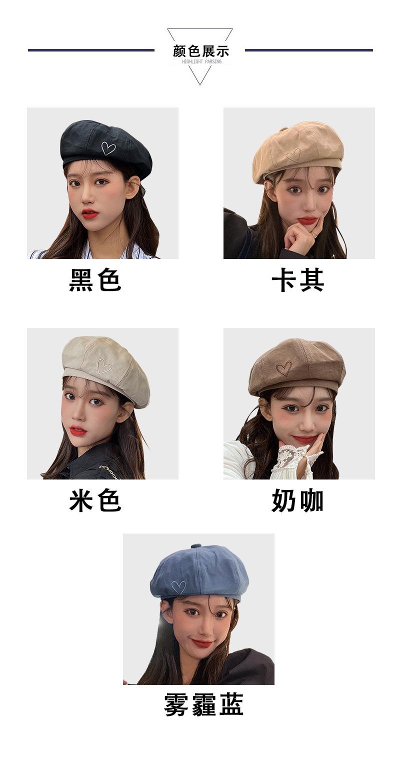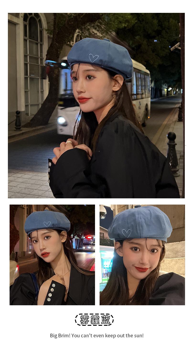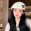 Sombrero Boina Bordada Love para Mujer Otoño e Invierno Cara Pequeña Retro Coreano Sombrero de Nube Sombrero de Pintor Sombrero Estrella Francés