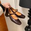 Piel de oveja de primera capa estilo retro 2024 nuevos zapatos de una sola capa para mujer Mary Jane moda adelgazantes versátiles tacón grueso tacón bajo