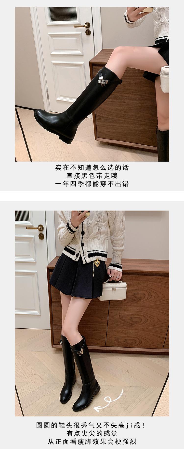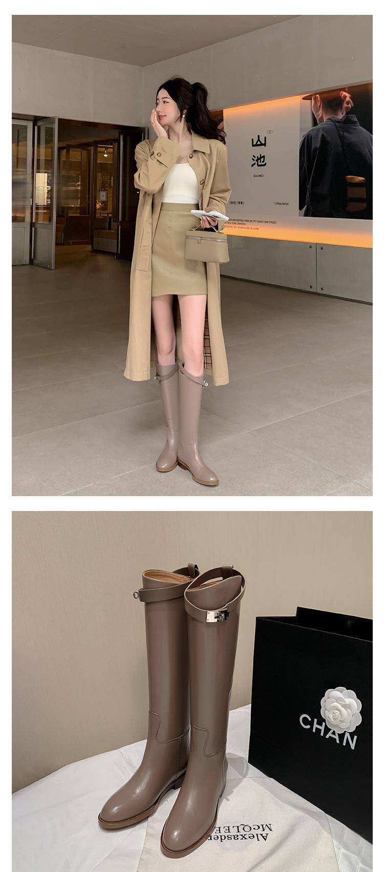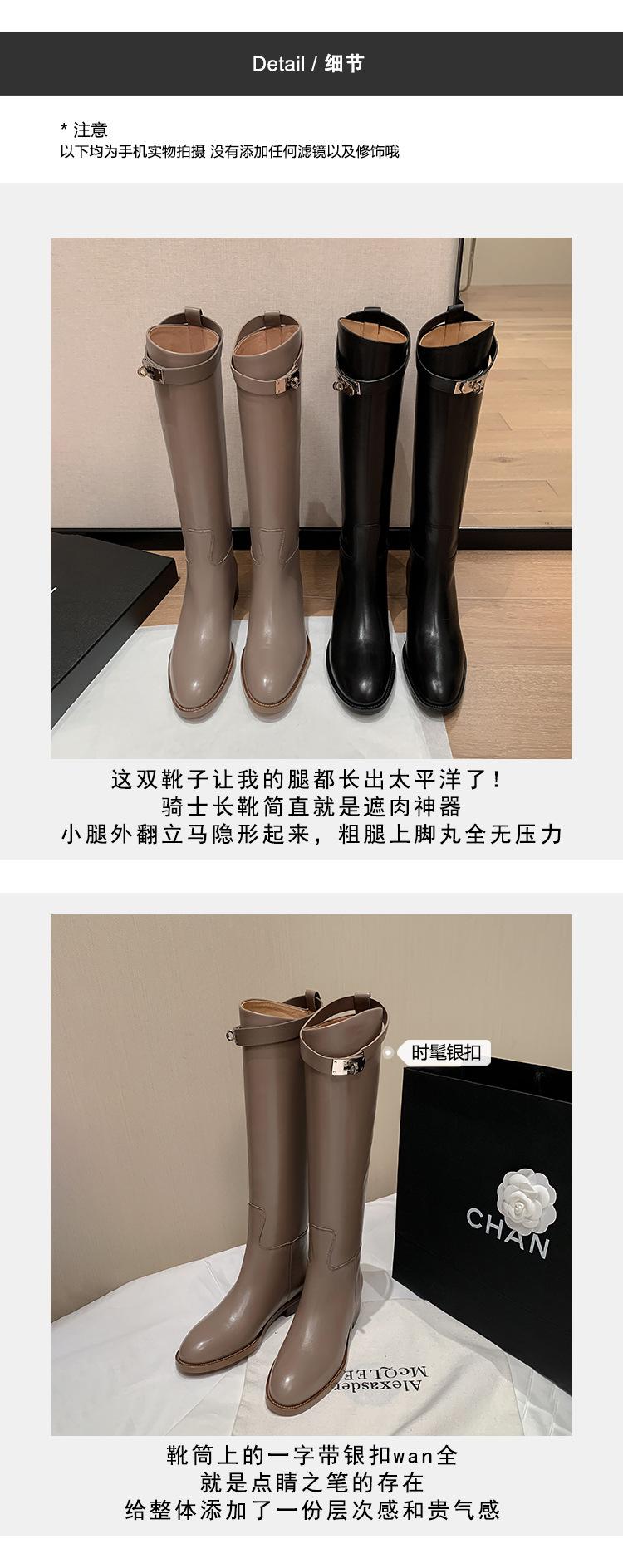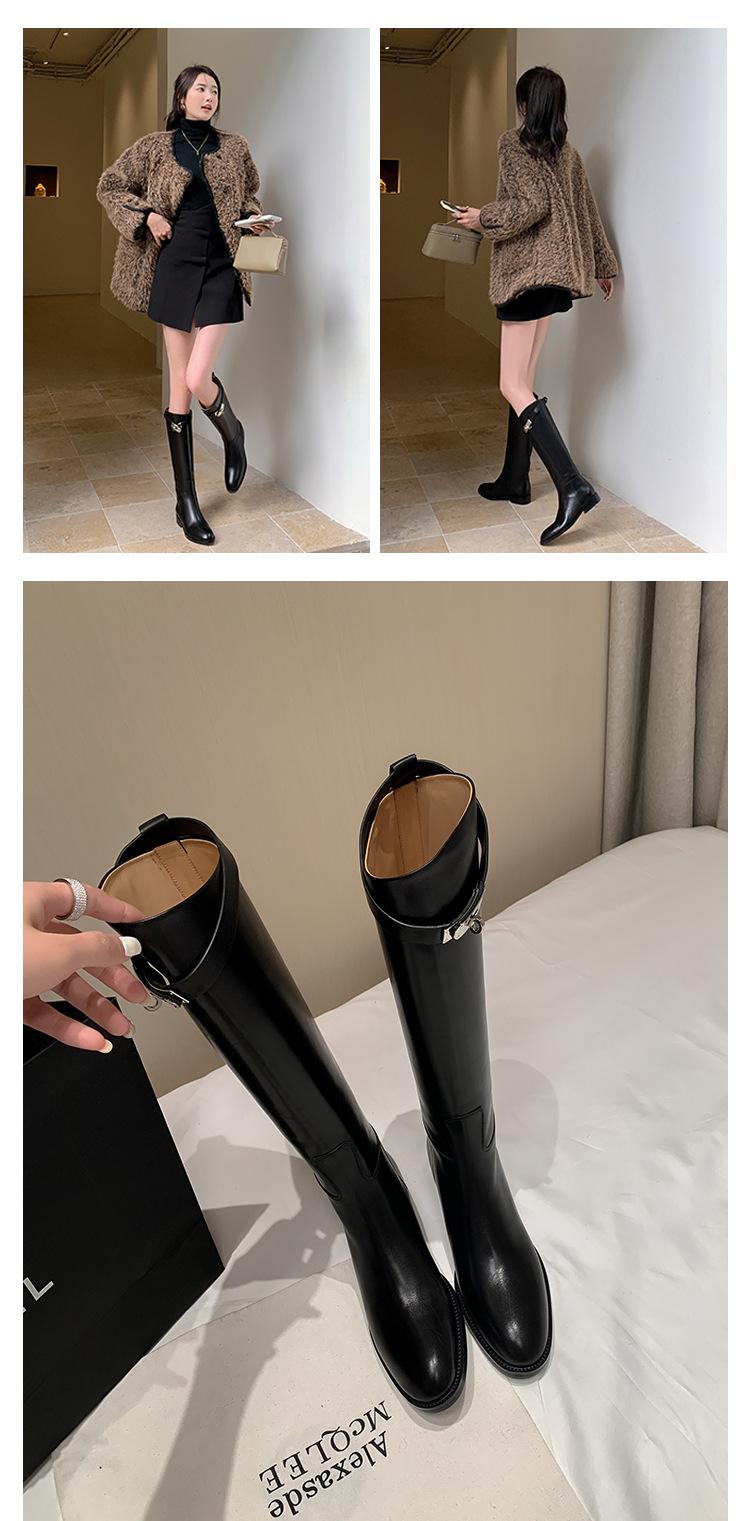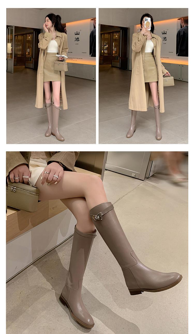 Botas de Caballero de Estilo Coreano Inclinadas con Hebilla Metálica de Punta Redonda de Talla Grande 2025 Otoño e Invierno Nuevas Versátiles Moda Botas de Moda Botas Largas