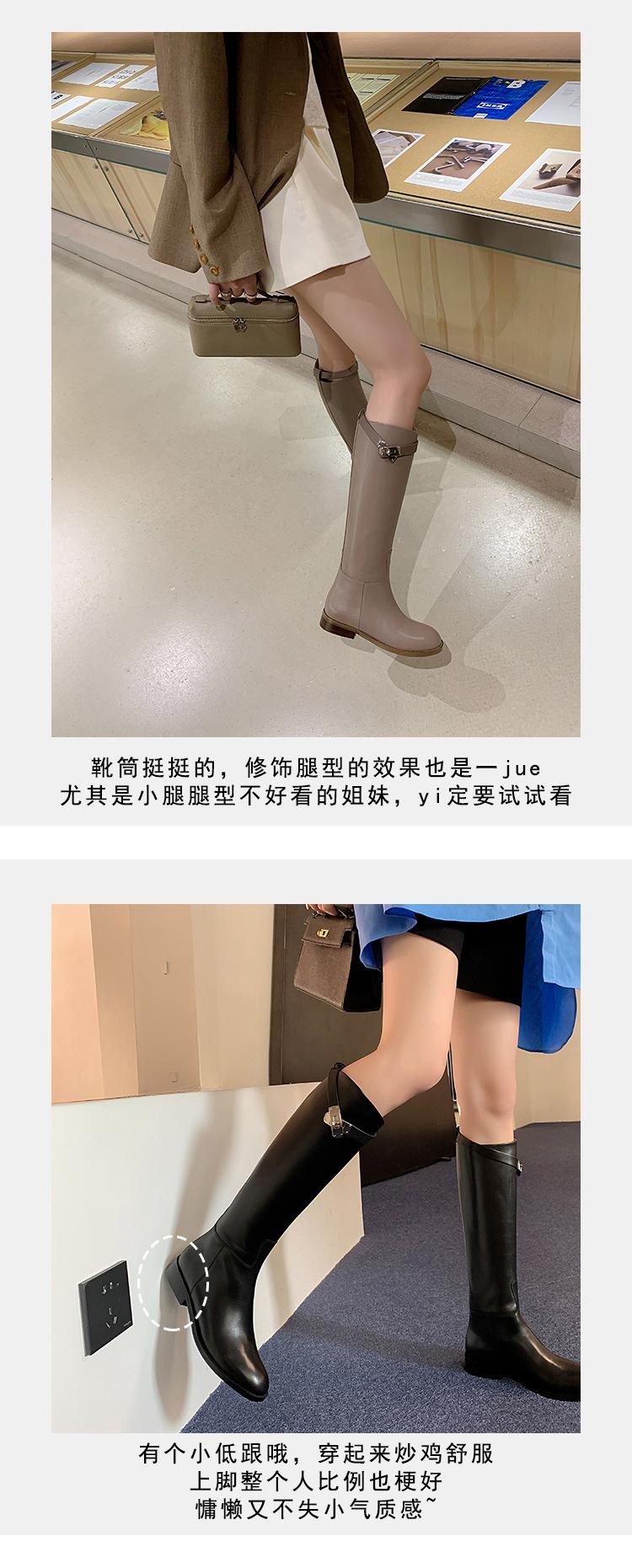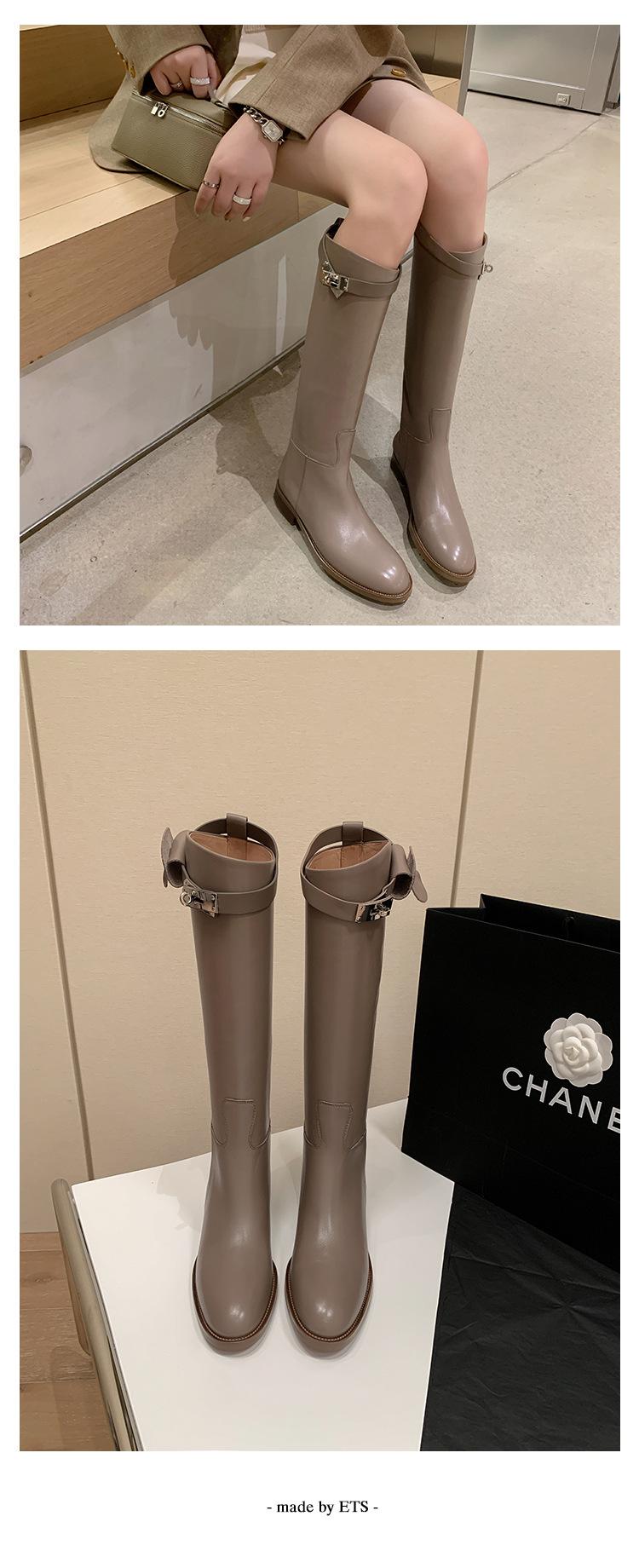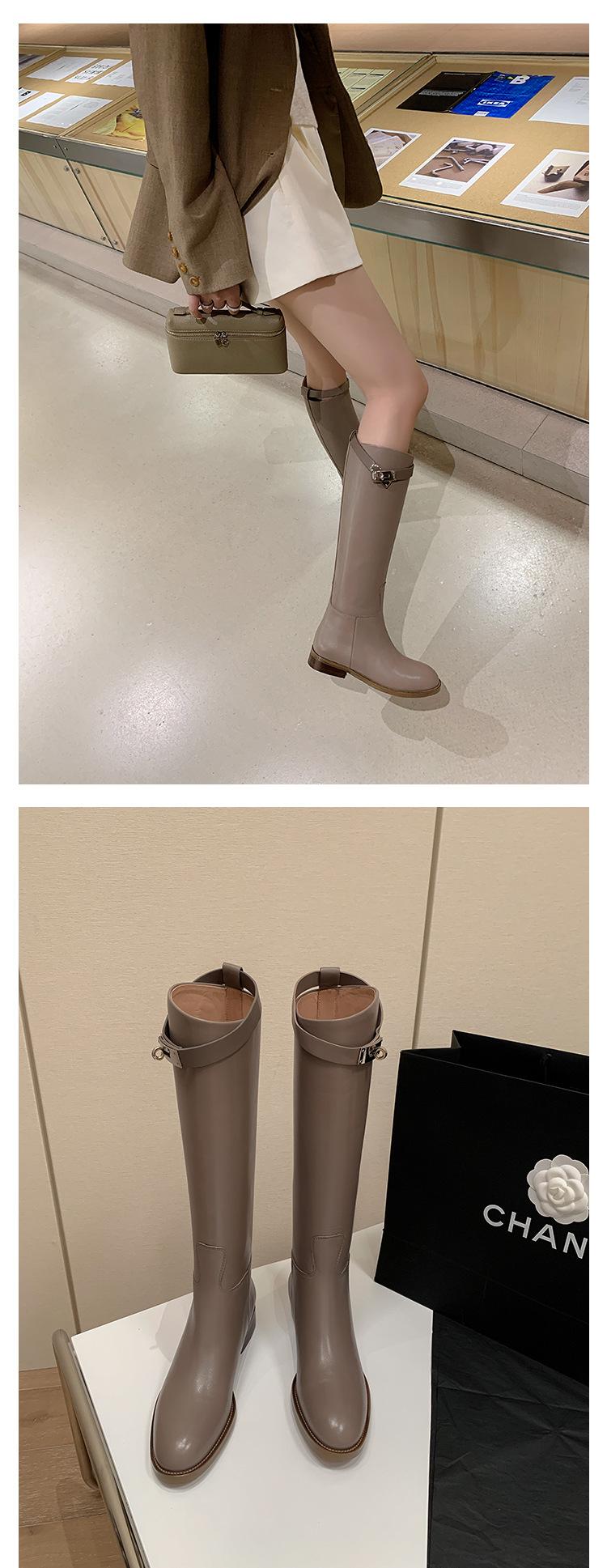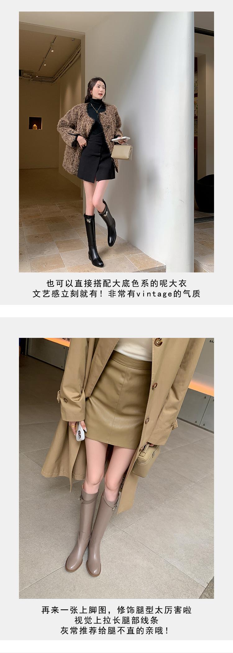 Botas de Caballero de Estilo Coreano Inclinadas con Hebilla Metálica de Punta Redonda de Talla Grande 2025 Otoño e Invierno Nuevas Versátiles Moda Botas de Moda Botas Largas