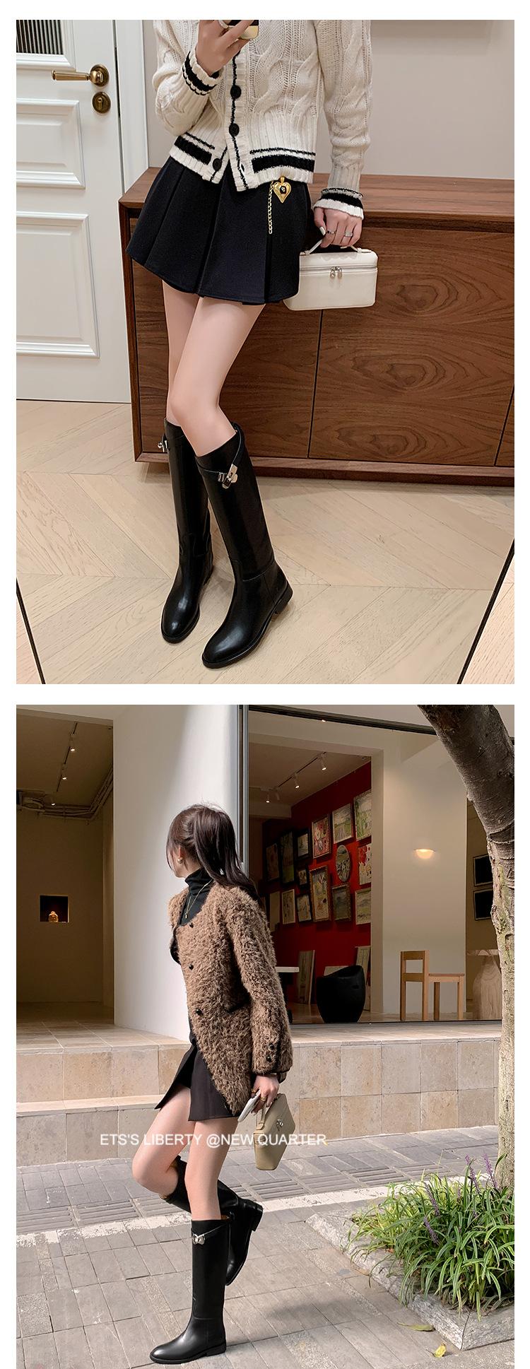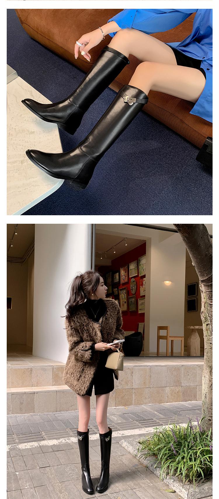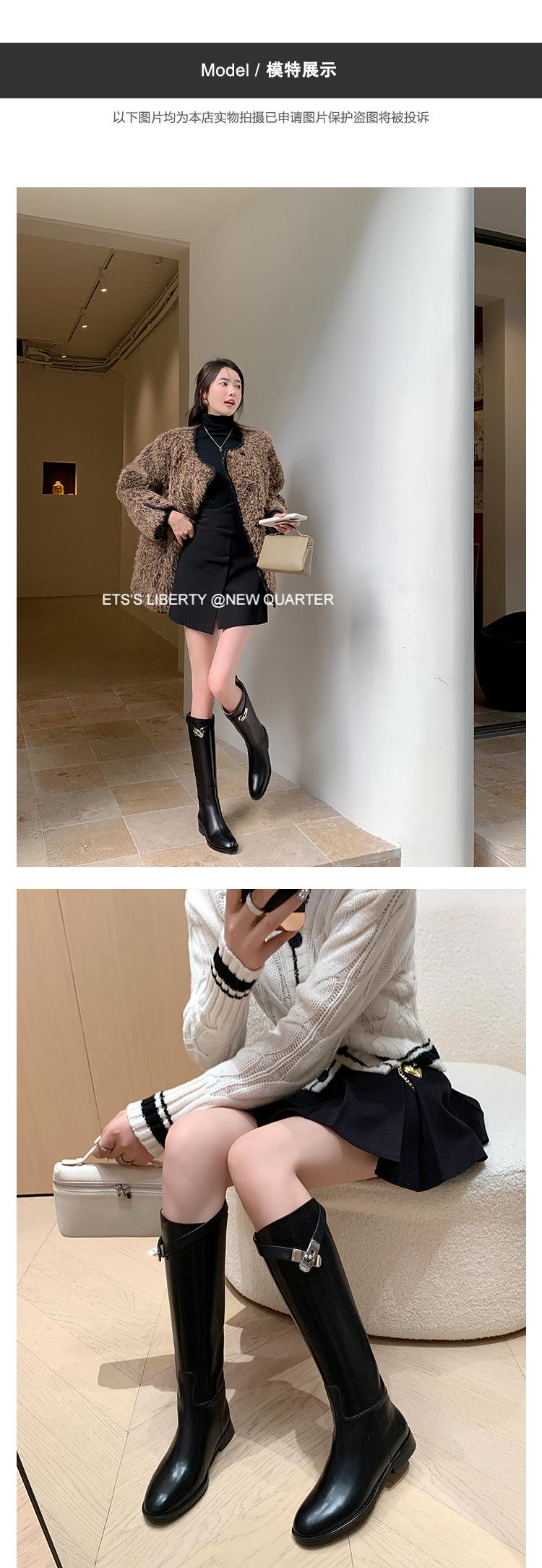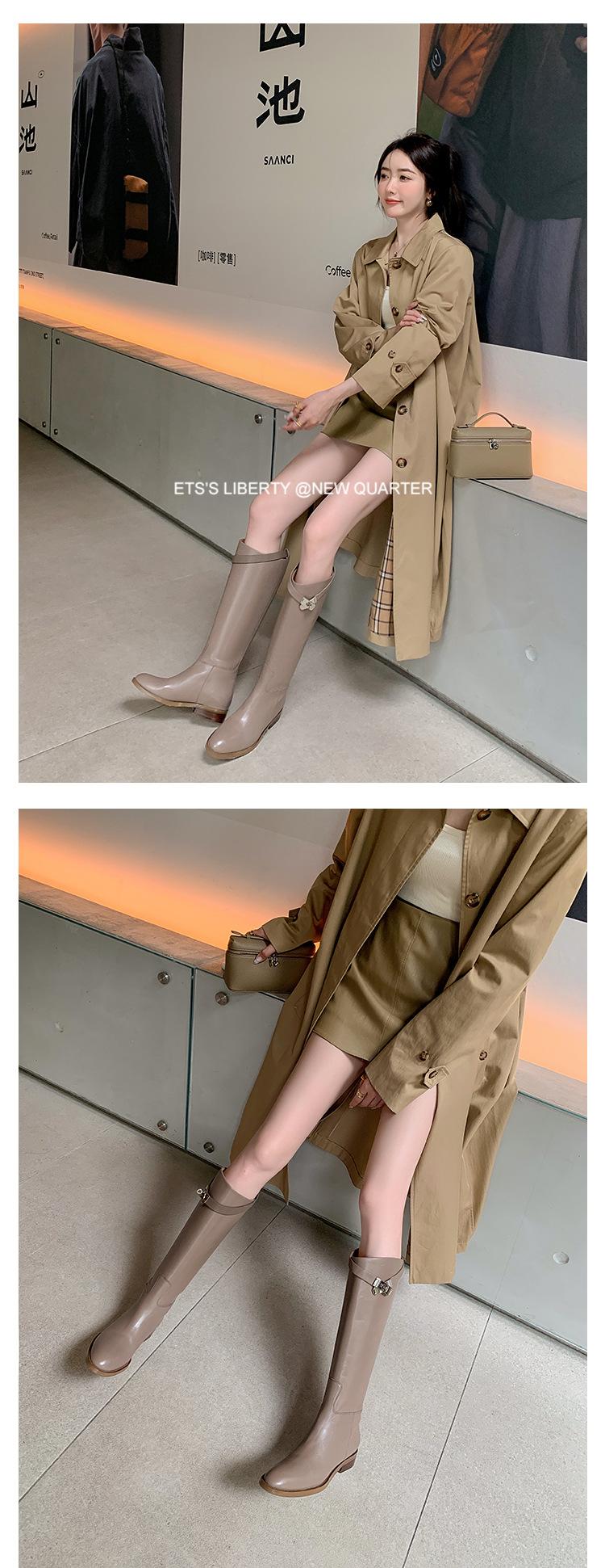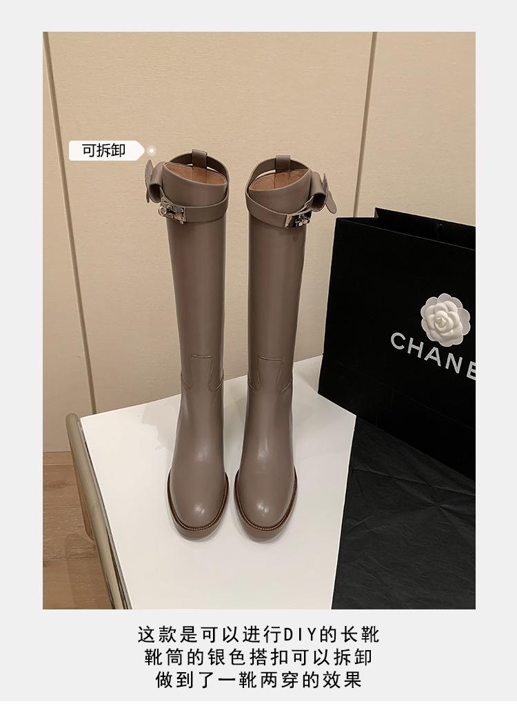 Botas de Caballero de Estilo Coreano Inclinadas con Hebilla Metálica de Punta Redonda de Talla Grande 2025 Otoño e Invierno Nuevas Versátiles Moda Botas de Moda Botas Largas