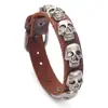Pulsera de Cuero Punk Calavera Europea y Americana para Hombres, Pulsera Vintage Desgastada Personalizada de Moda, Pulsera Ajustable de Piel de Vaca