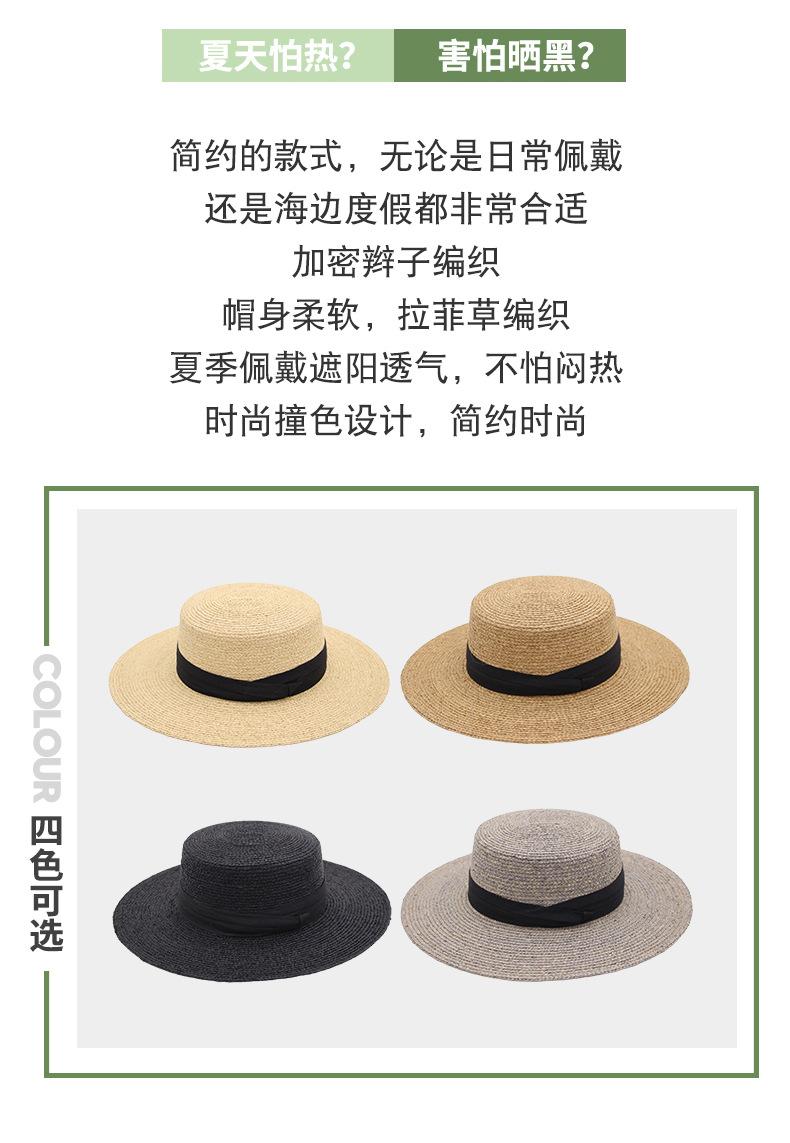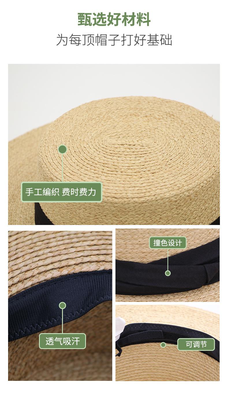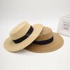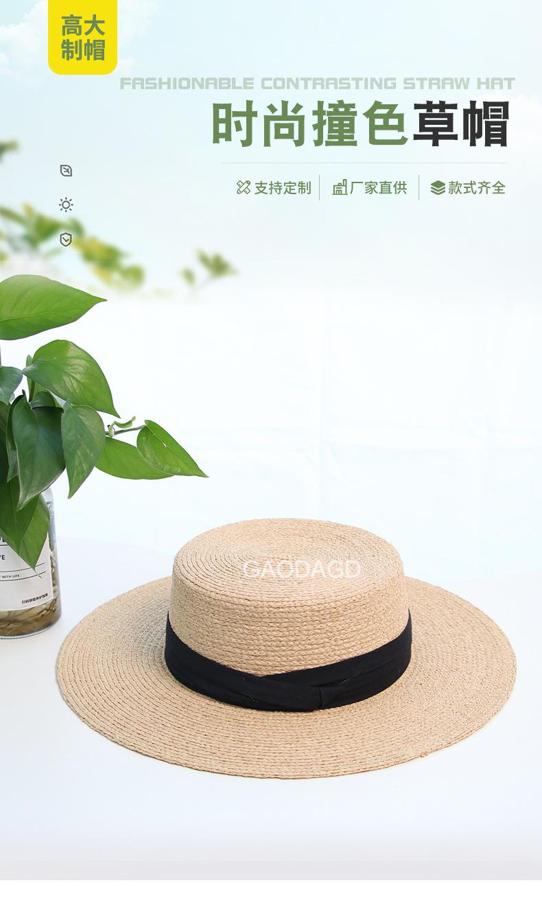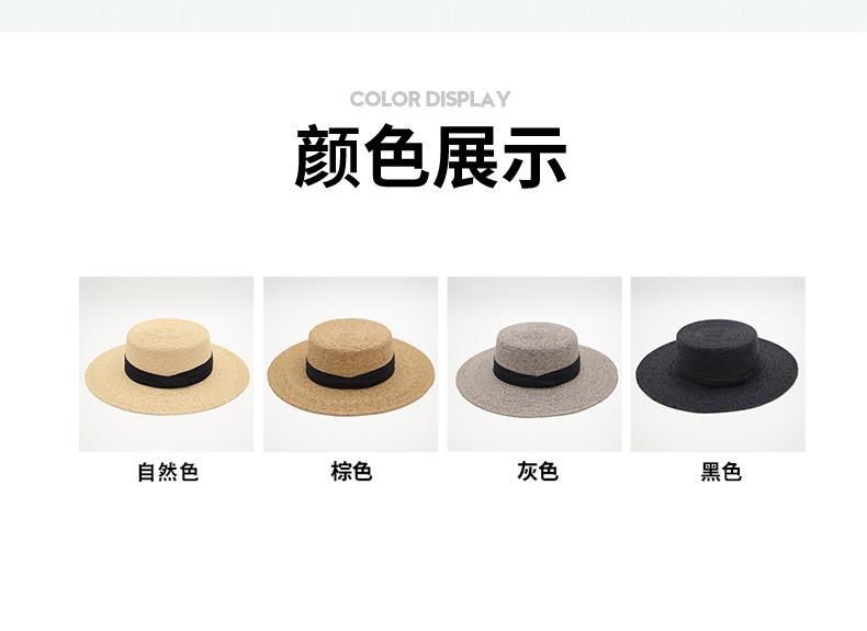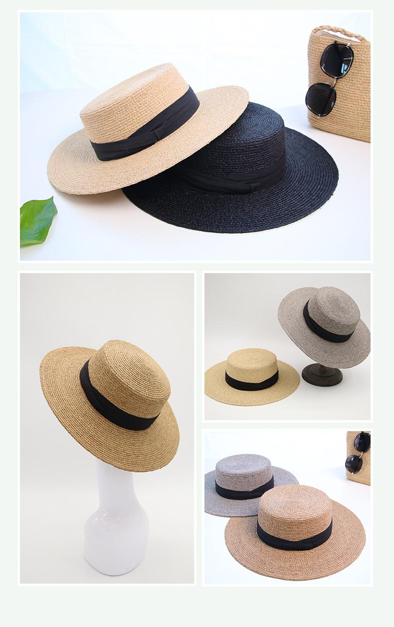Sombrero de paja de pescador de primavera para mujer, sombrero de rafia de parte superior plana con protección solar, sombrero de playa de ala grande, sombrero de paja al por mayor