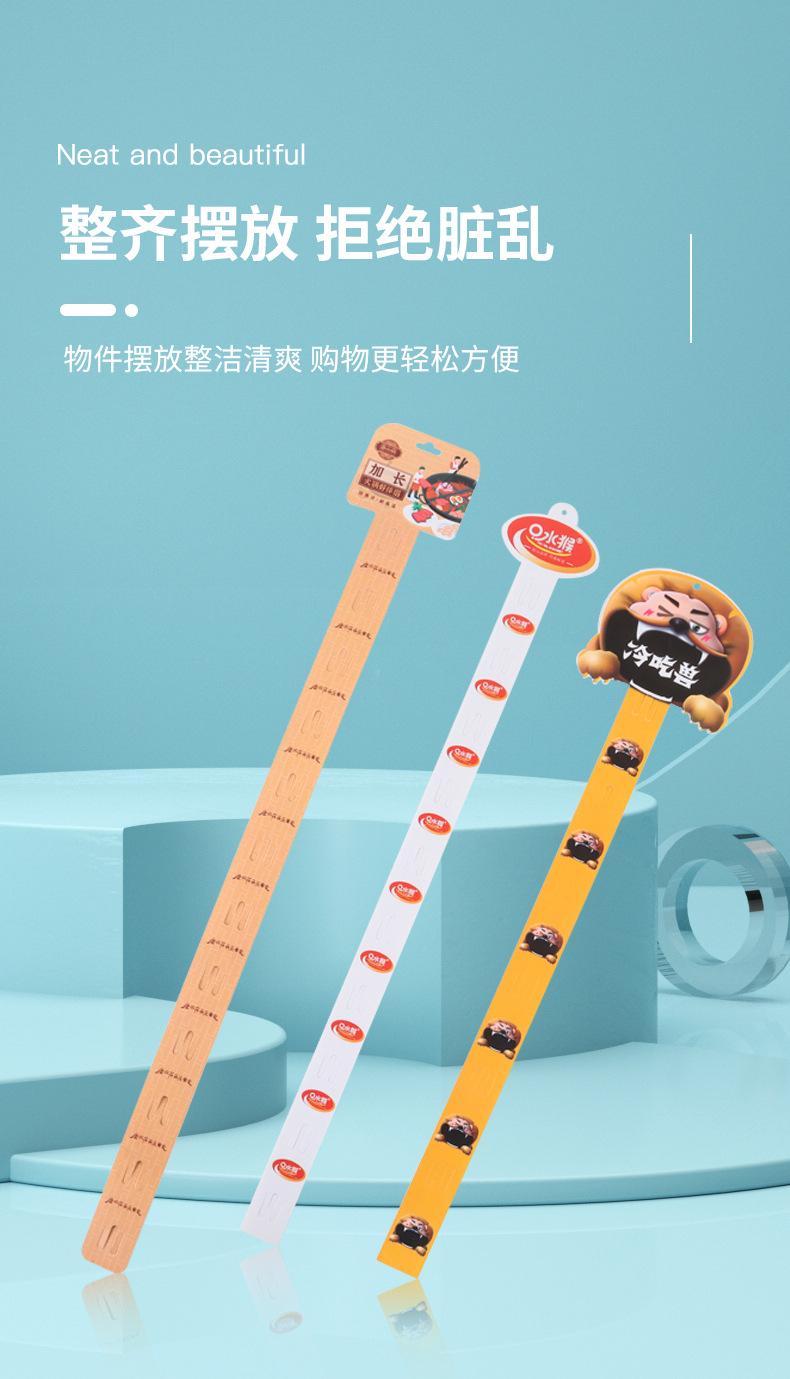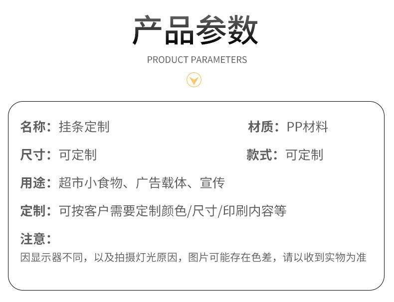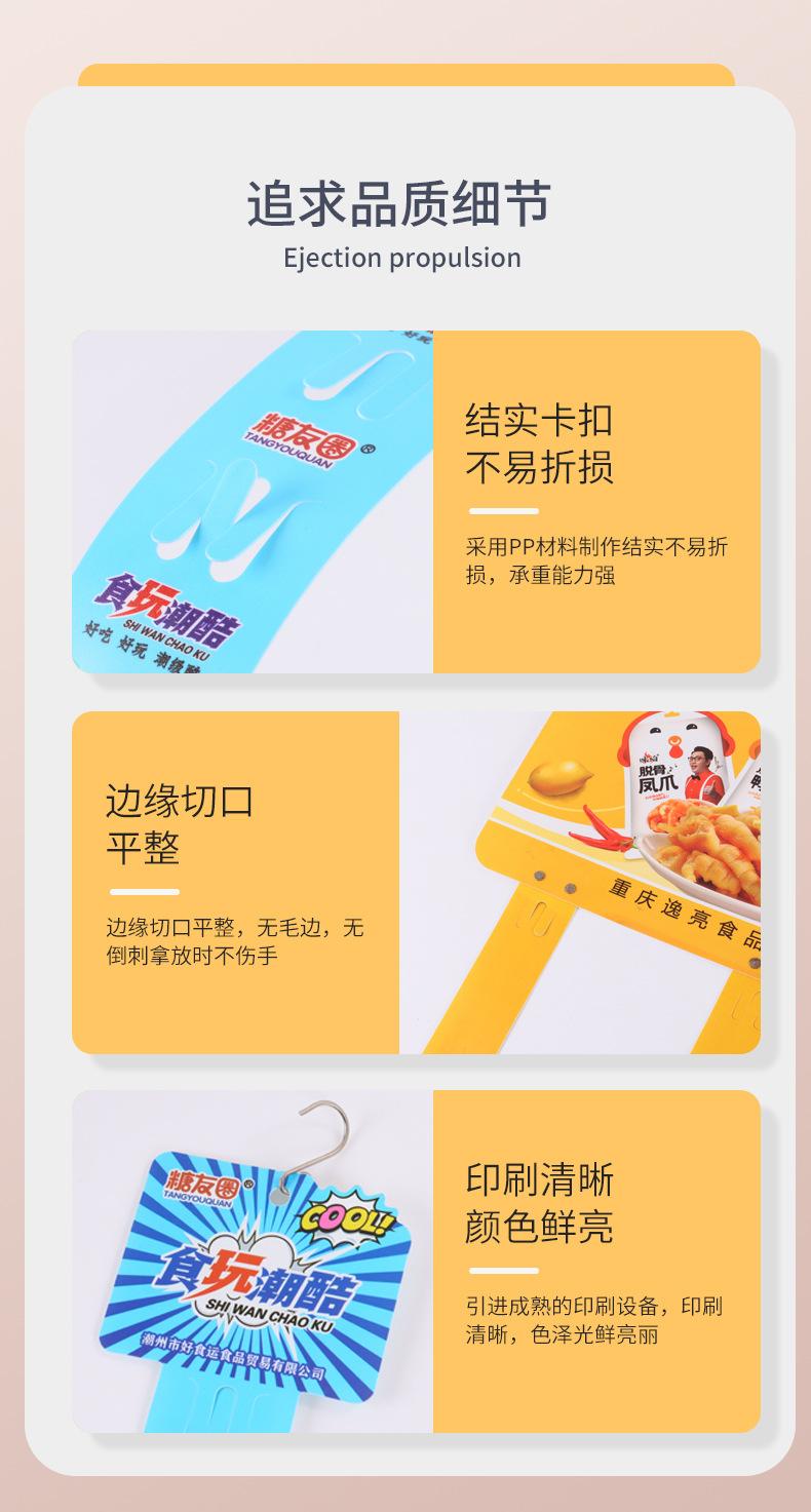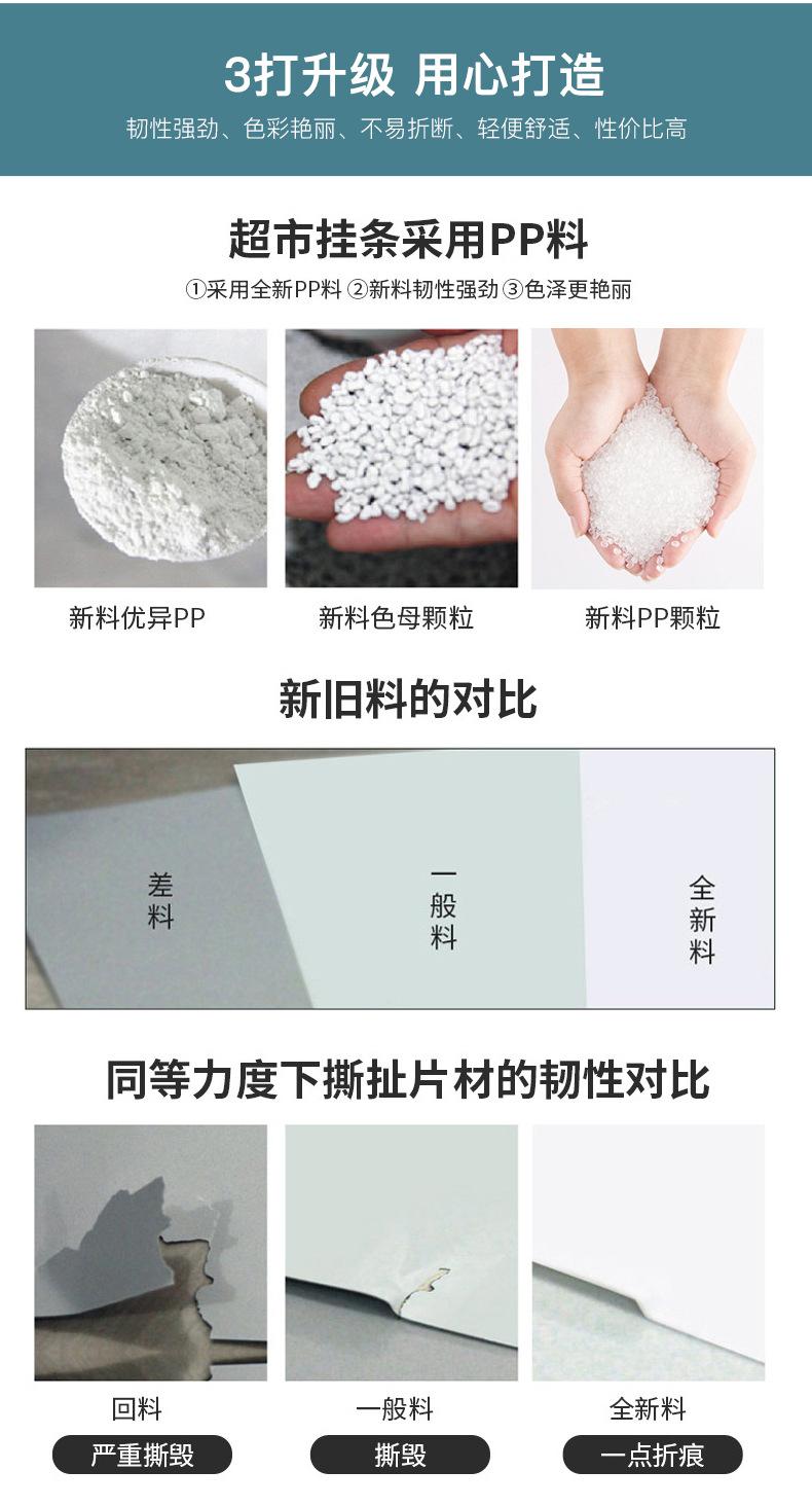 Tira colgante de polipropileno de color de fábrica, personalizada, para estante de supermercado, de plástico, de PVC, con impresión publicitaria personalizada, con tarjeta colgante y logotipo impreso.