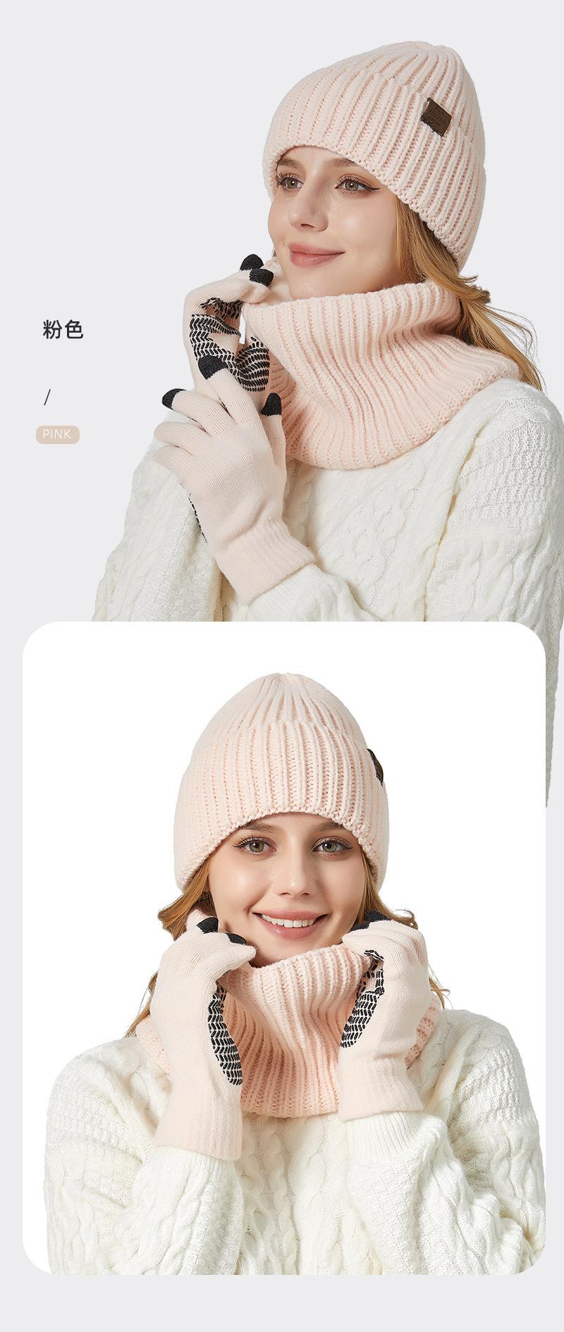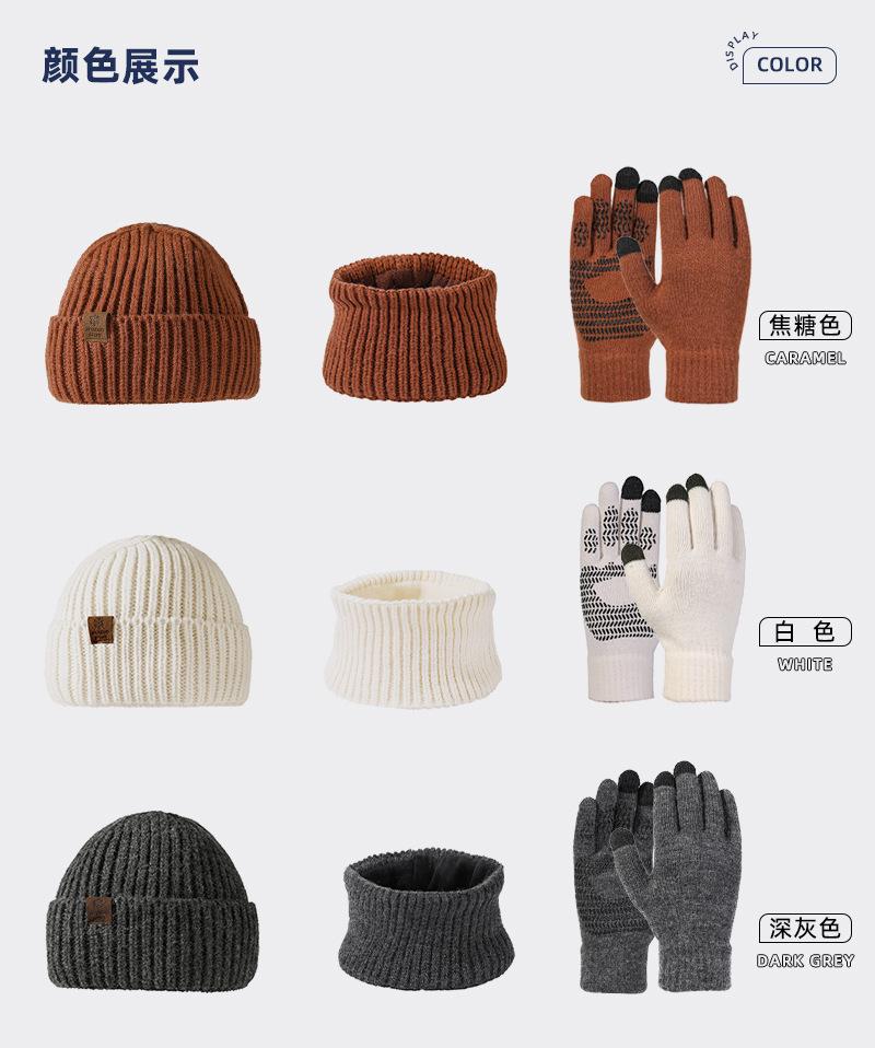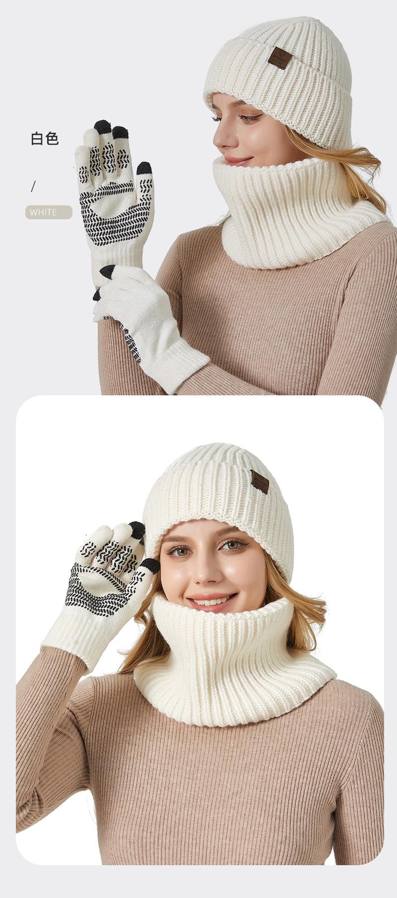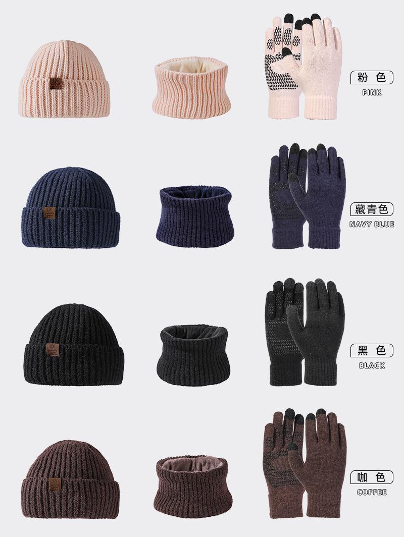 Fábrica de sombreros transfronteriza nuevo invierno sombrero bufanda guantes de pantalla táctil de tres piezas para exteriores cálido sombrero de lana