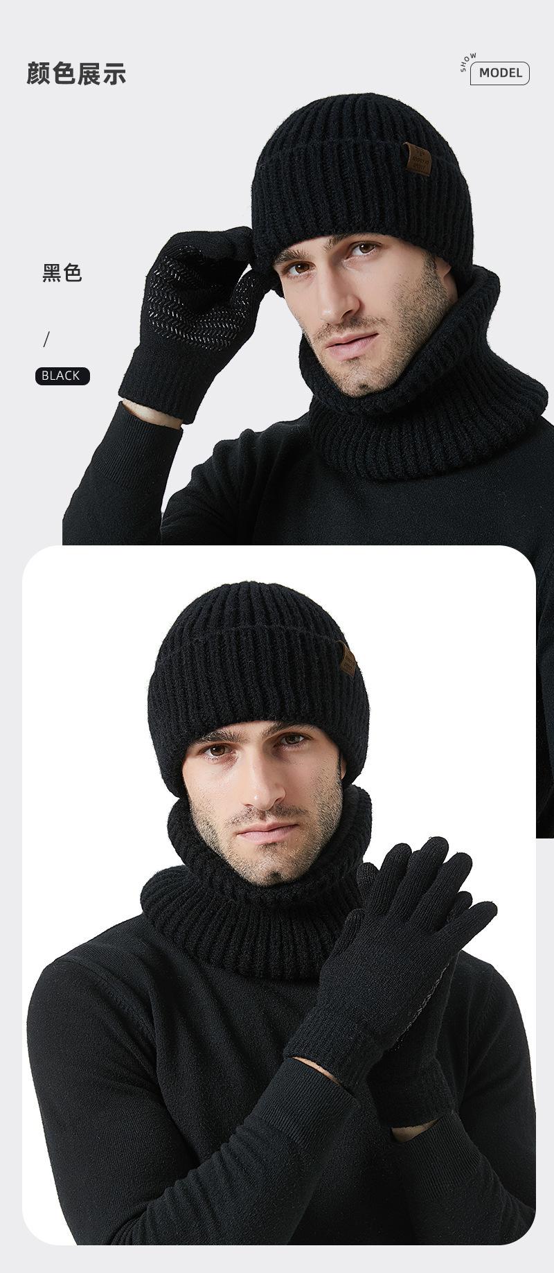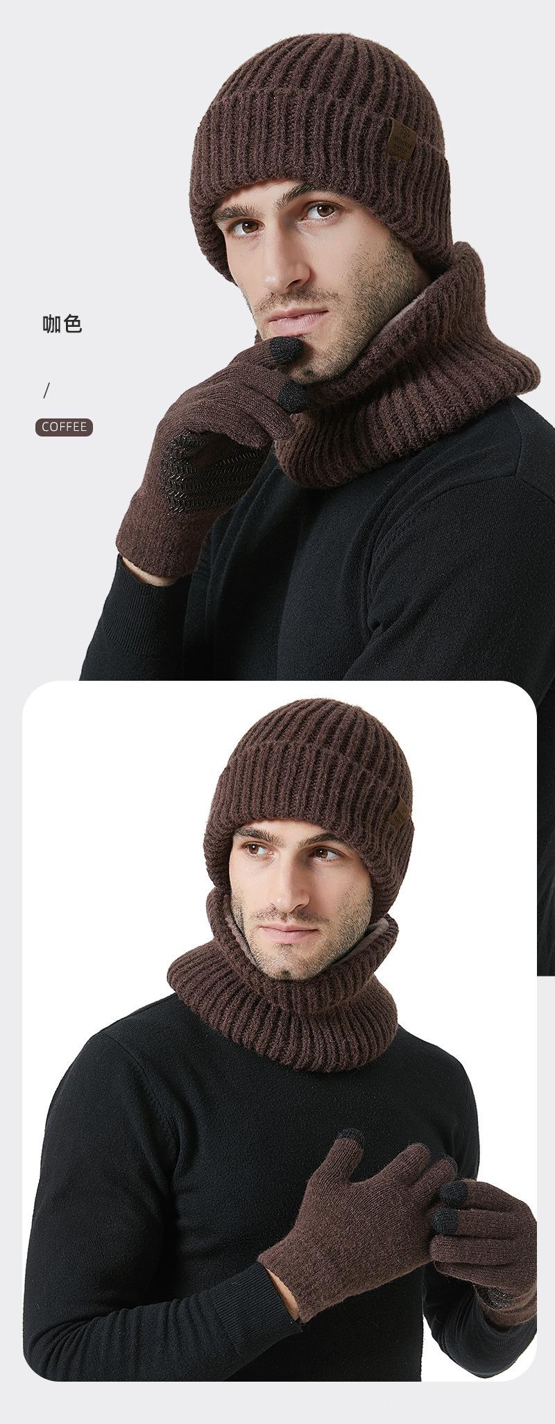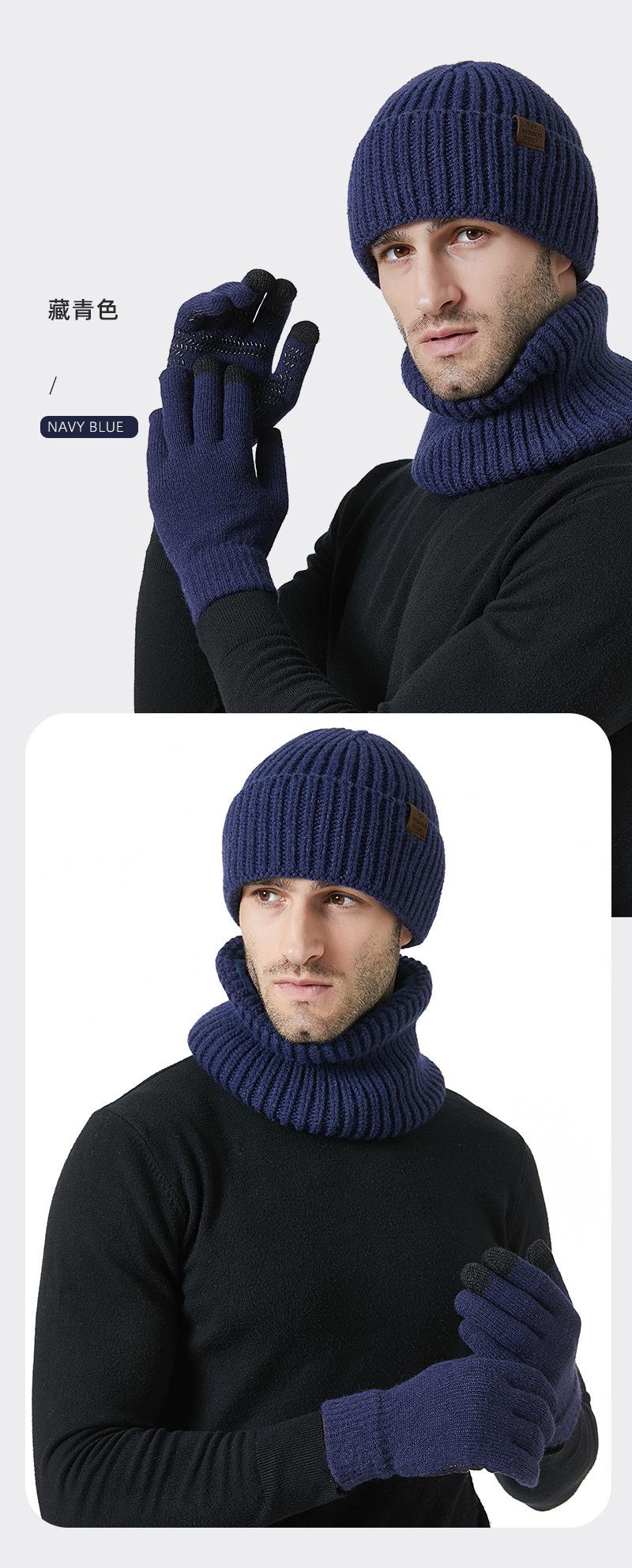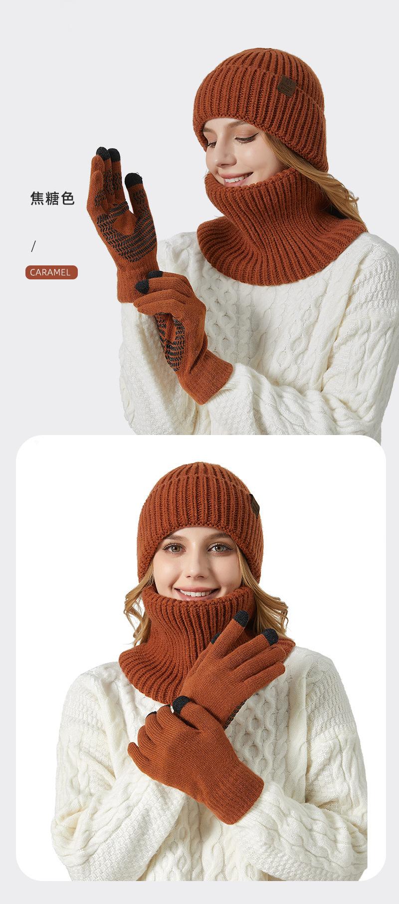 Fábrica de sombreros transfronteriza nuevo invierno sombrero bufanda guantes de pantalla táctil de tres piezas para exteriores cálido sombrero de lana