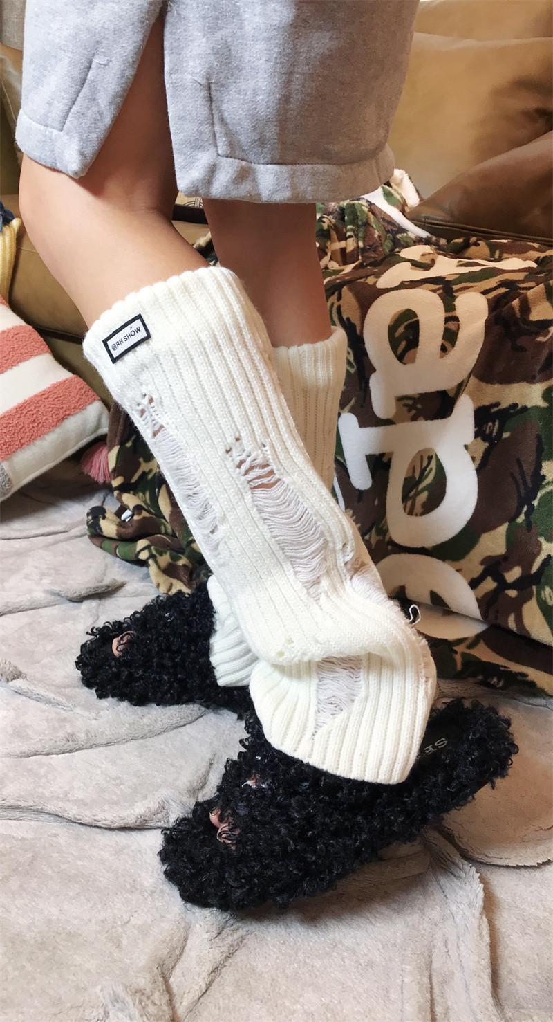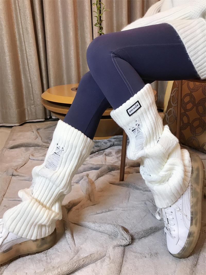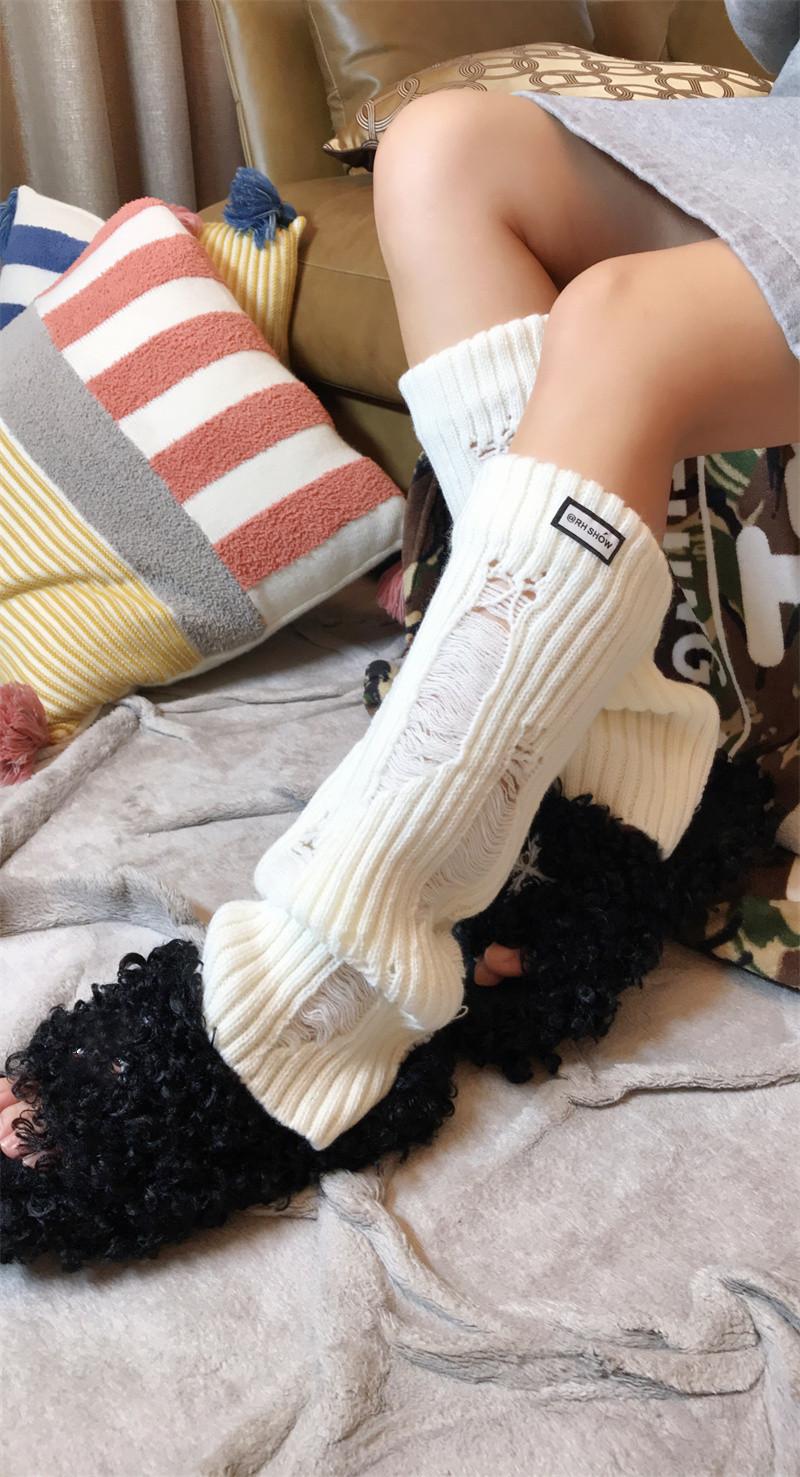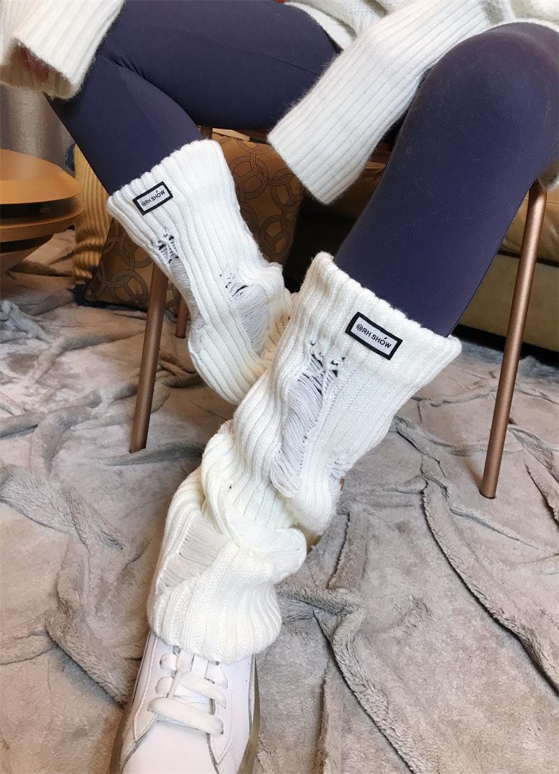 Otoño e Invierno Nuevos Calcetines de Mujer Calentadores de Pierna Estilo Japonés Calcetines de Felpa Rotos Calcetines hasta la Mitad de la Pantorrilla Estilo Jk Calentadores de Pierna Tejidos Transpirables Anti-Rozaduras