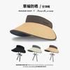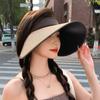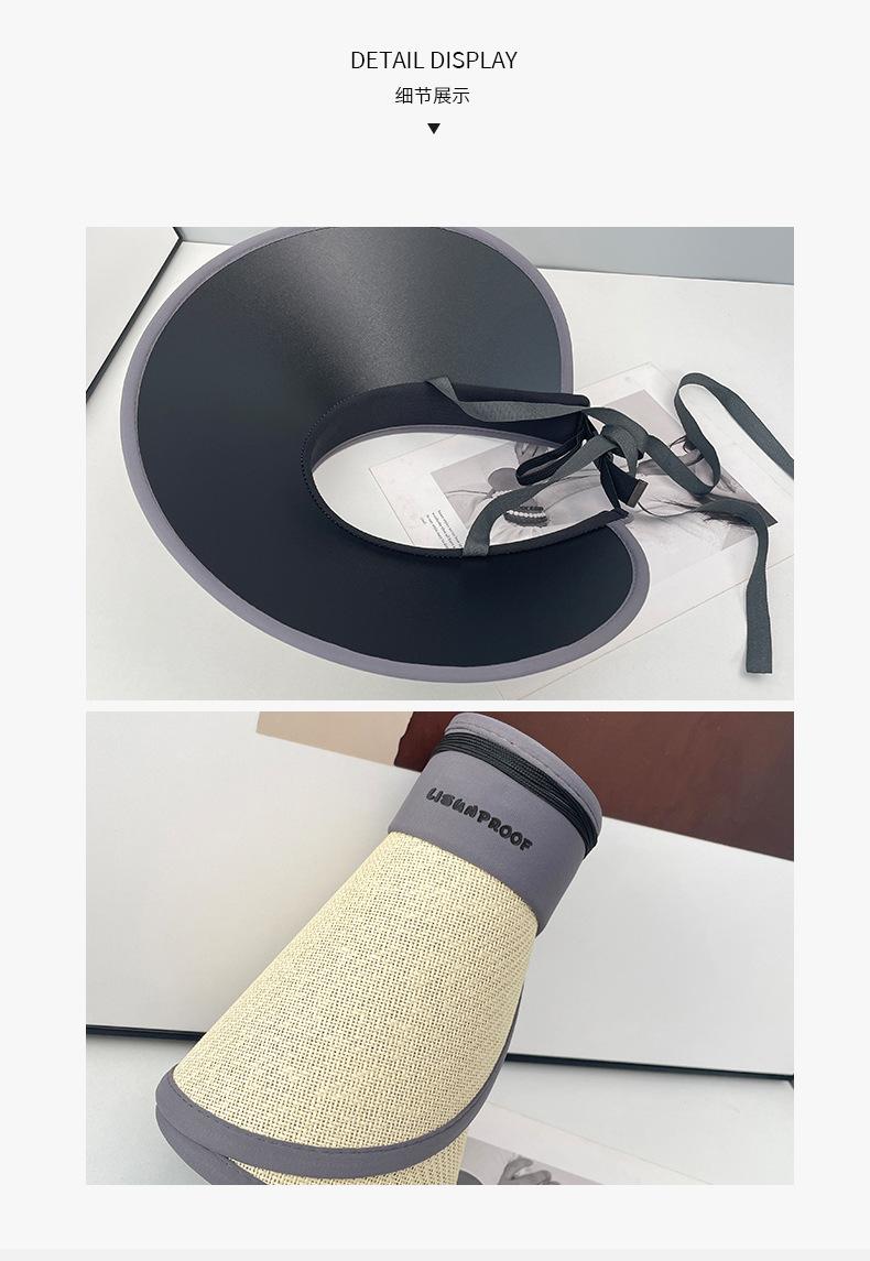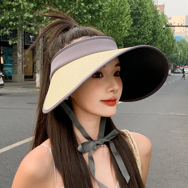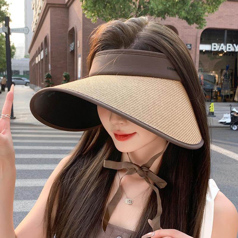 Sombrero de Paja Visera Superior Vacía para Mujer Verano Viaje al Aire Libre Ala Anti-UV Sombrero de Protección Solar en Forma de Abanico Sombrero para el Sol