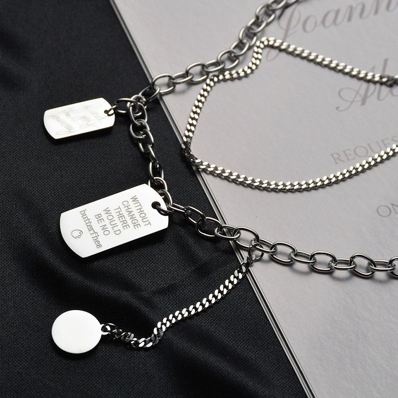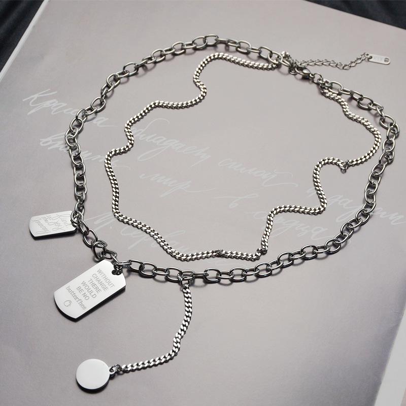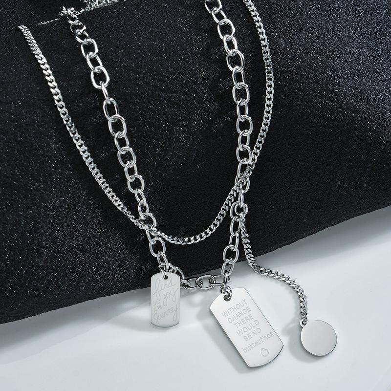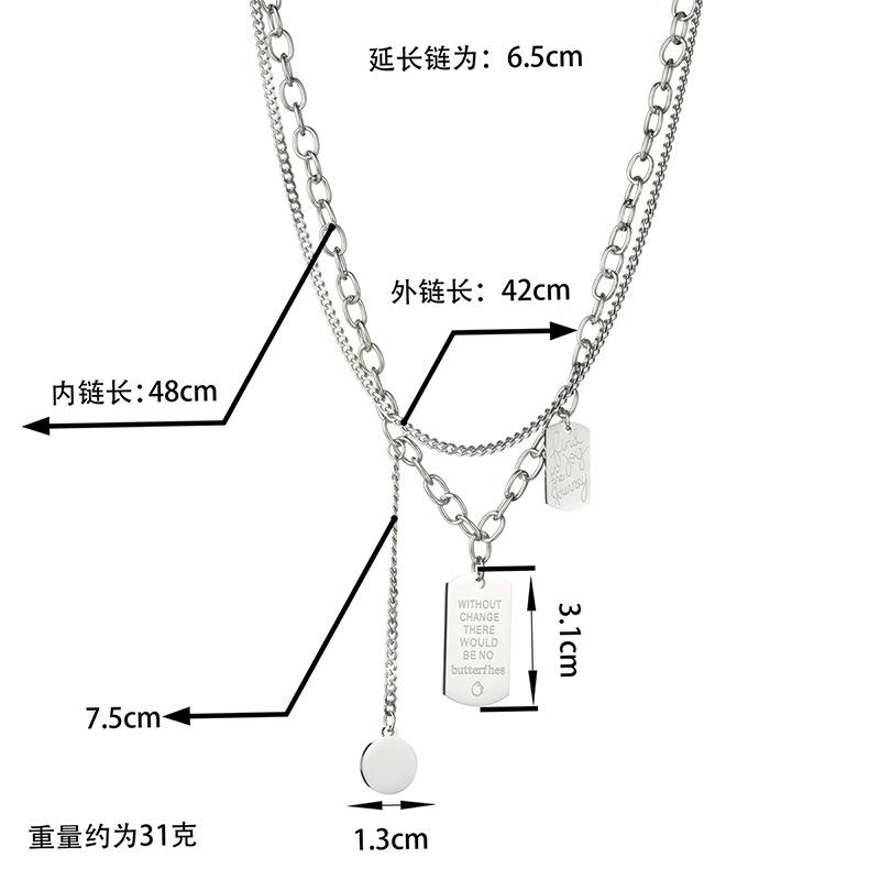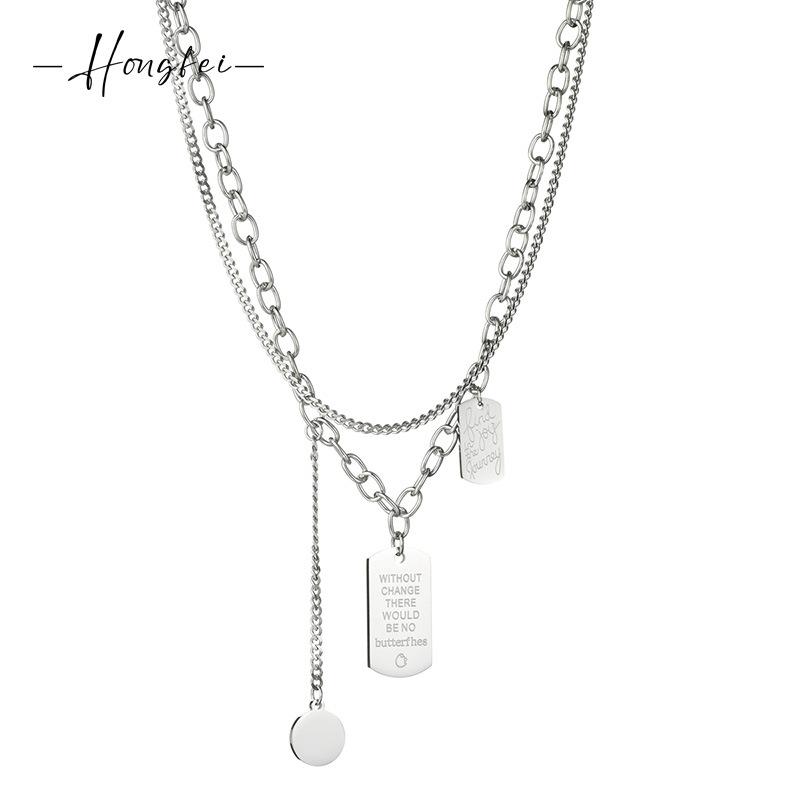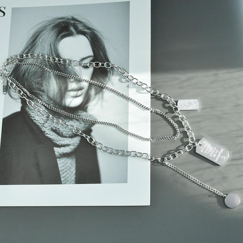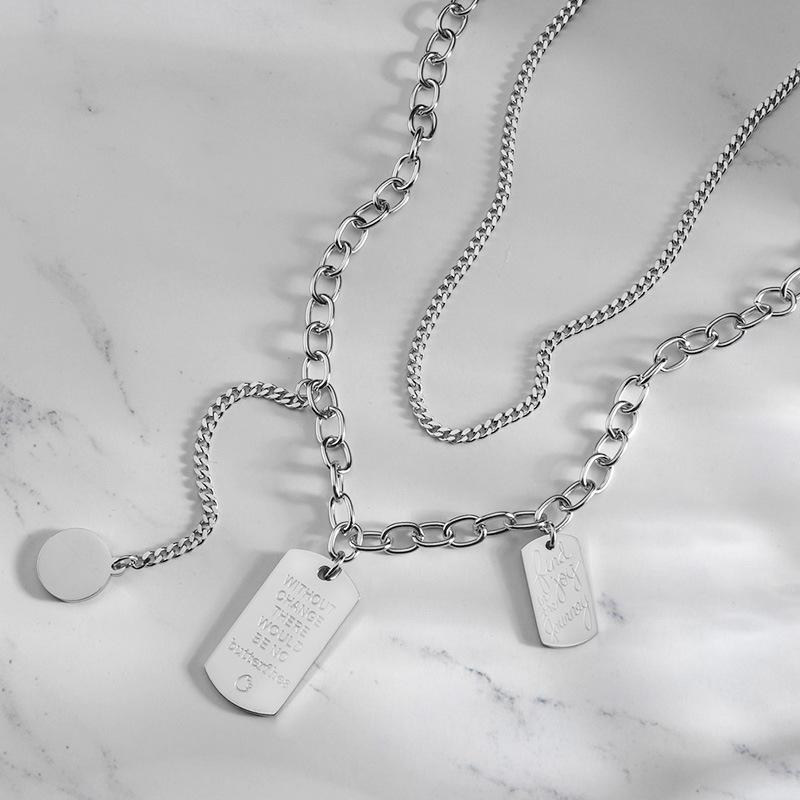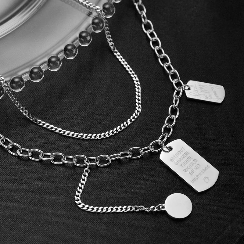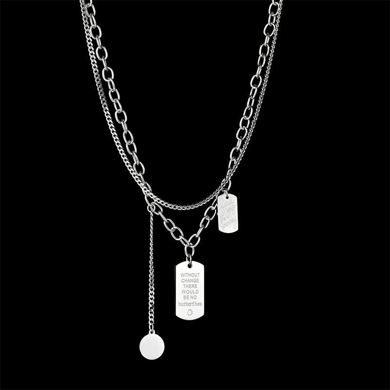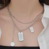 Collar con colgante redondo brillante de tarjeta cuadrada con letras de doble capa de estilo simple europeo y americano, cadena de clavícula de acero inoxidable para mujer, joyería