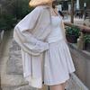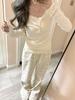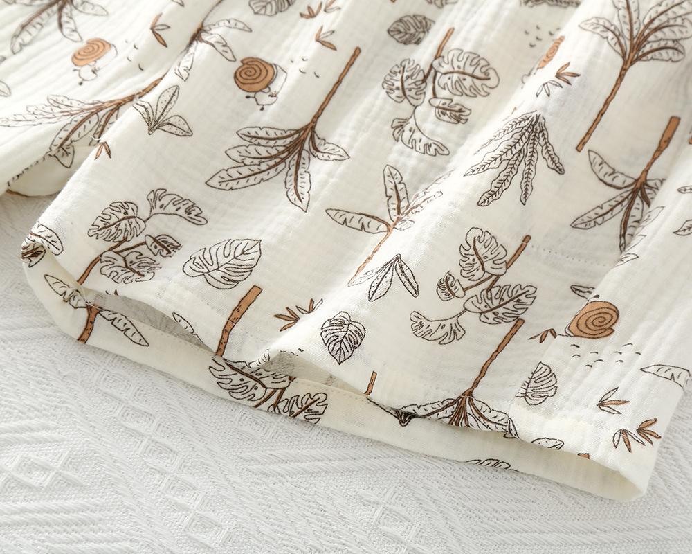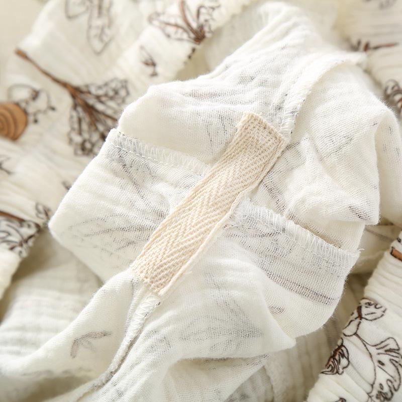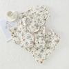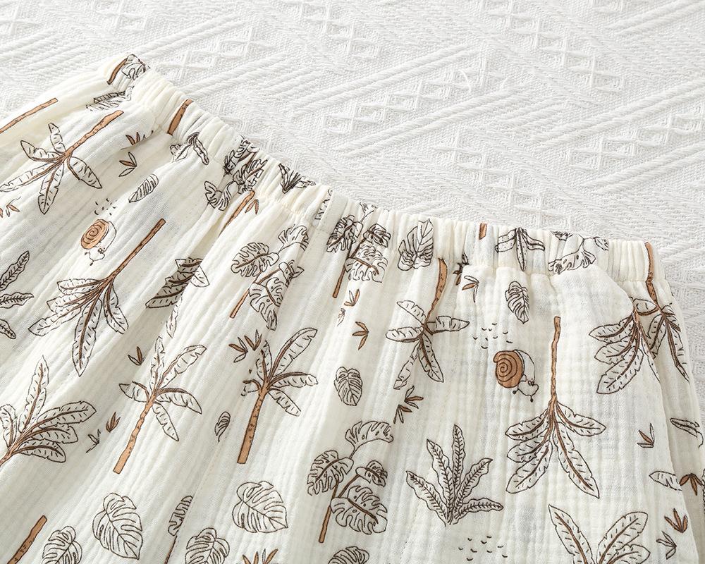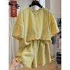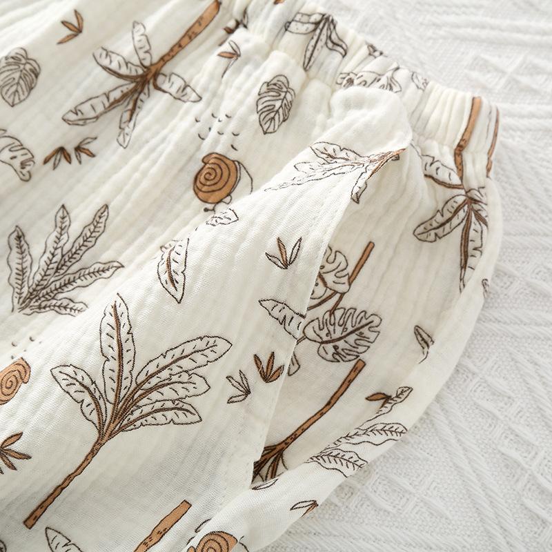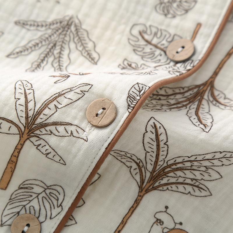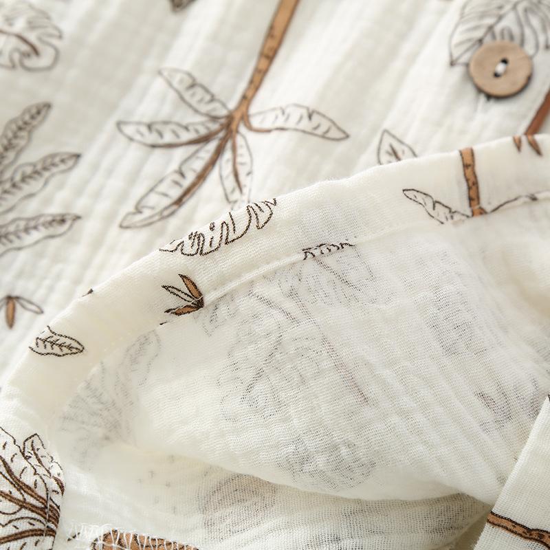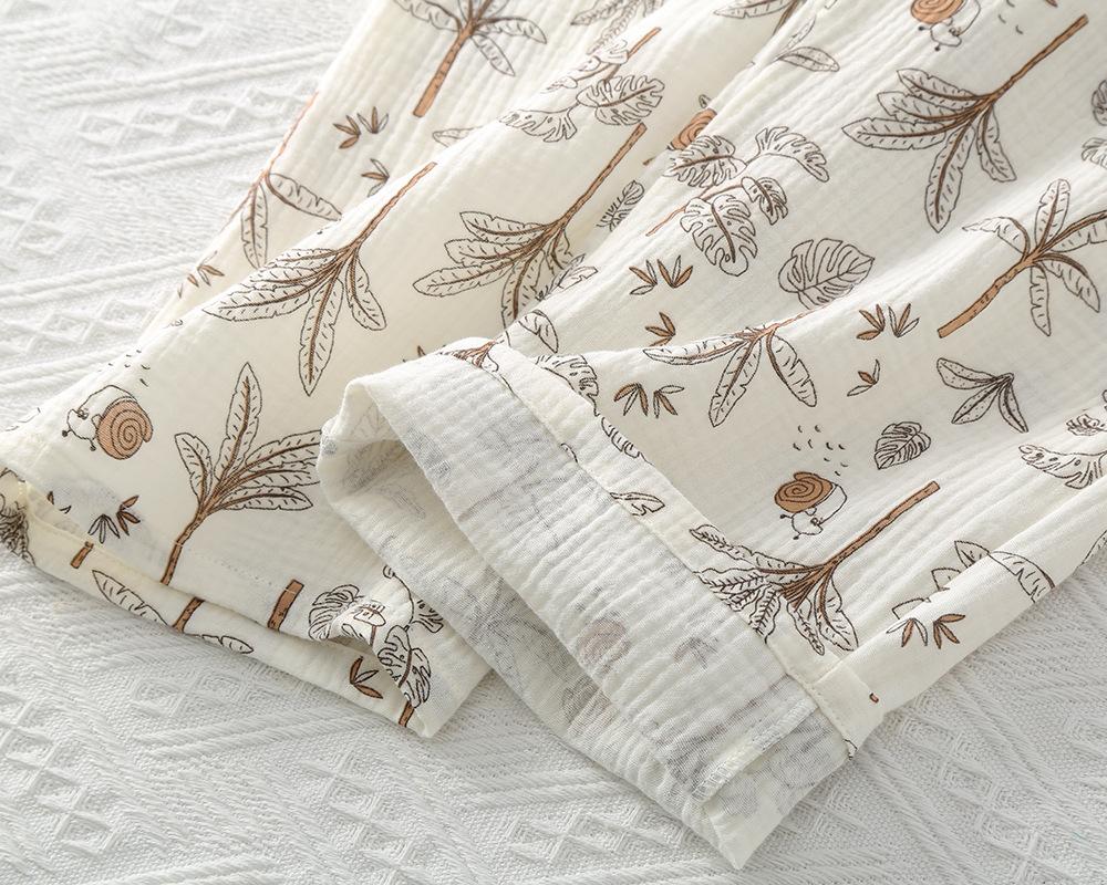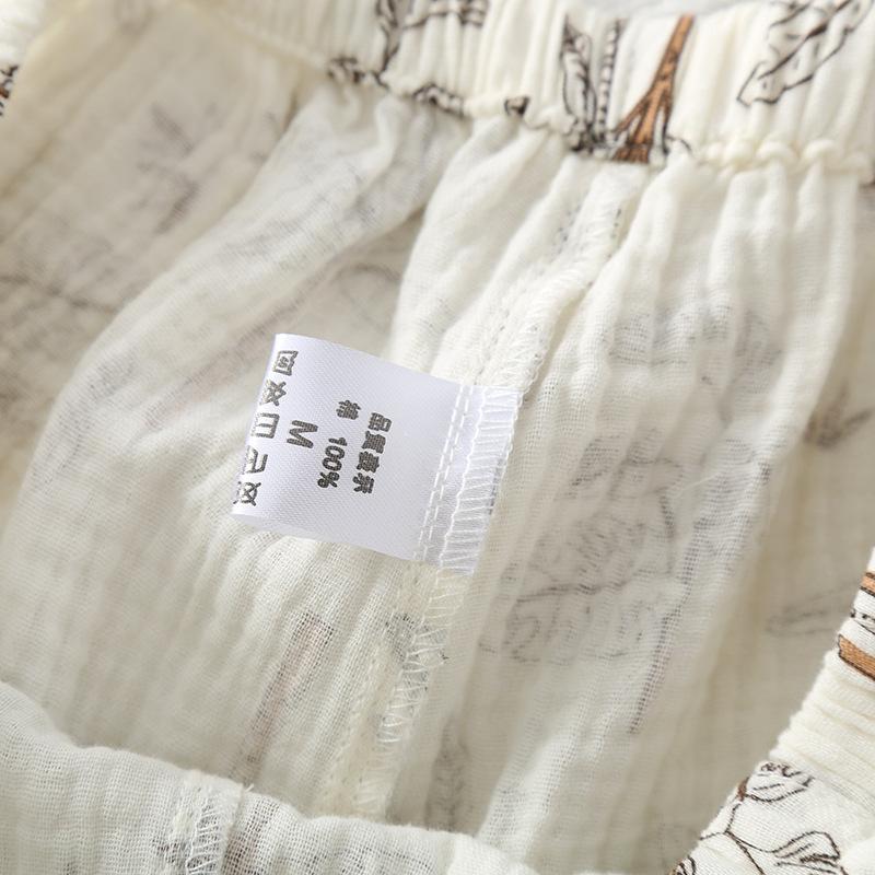 Crepé algodón hilo de algodón solapa estampado mujer primavera y otoño verano manga corta pantalones cortos traje de tres piezas para estar en casa fábrica