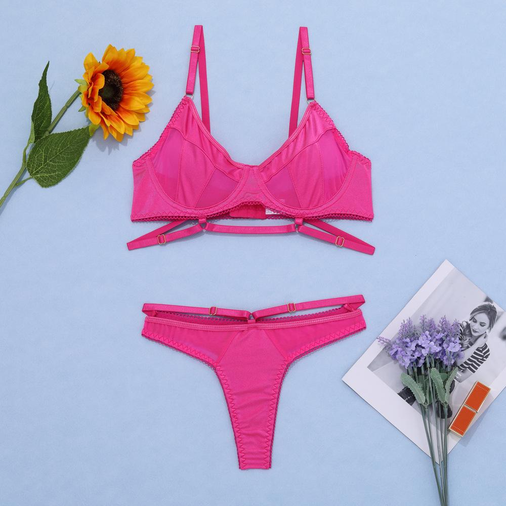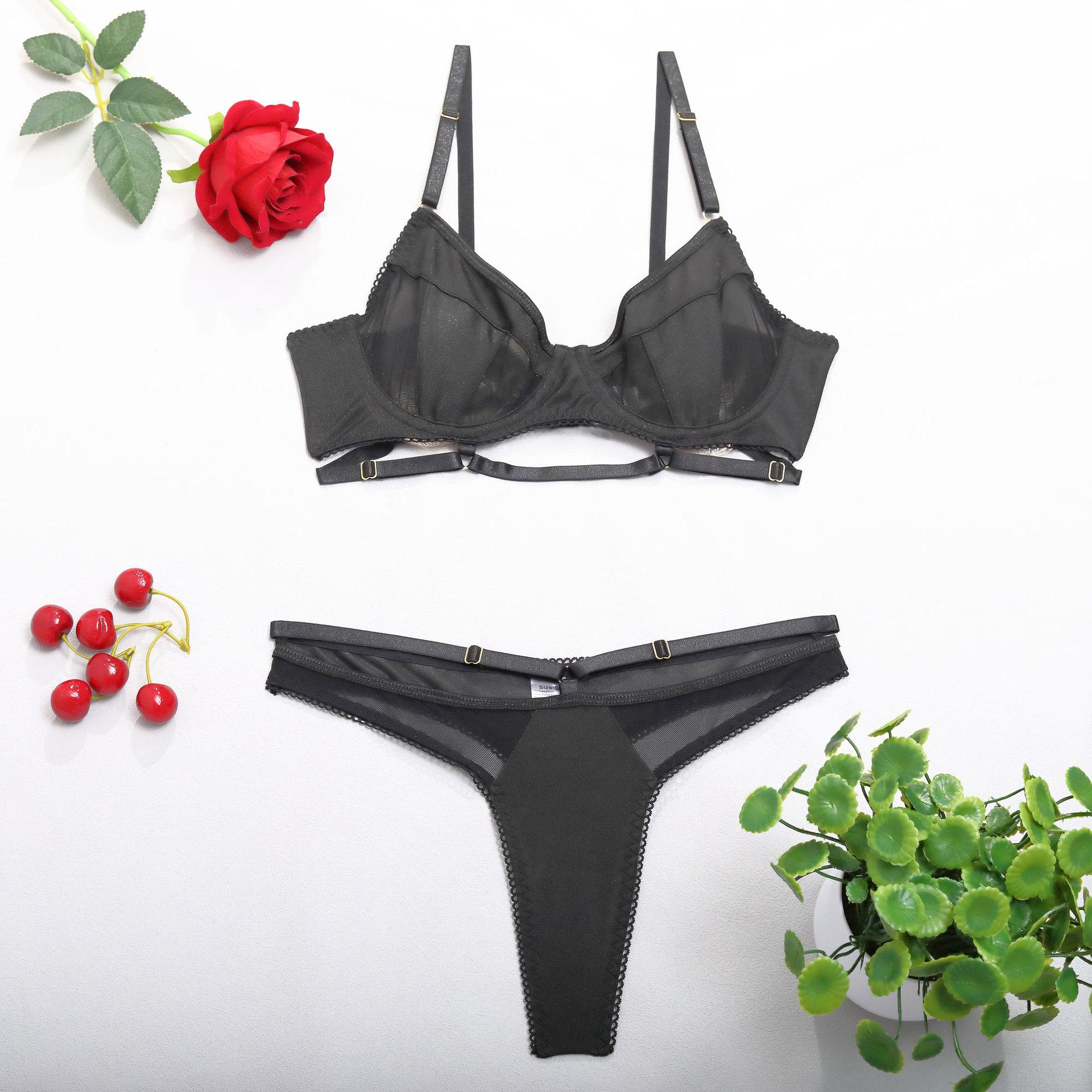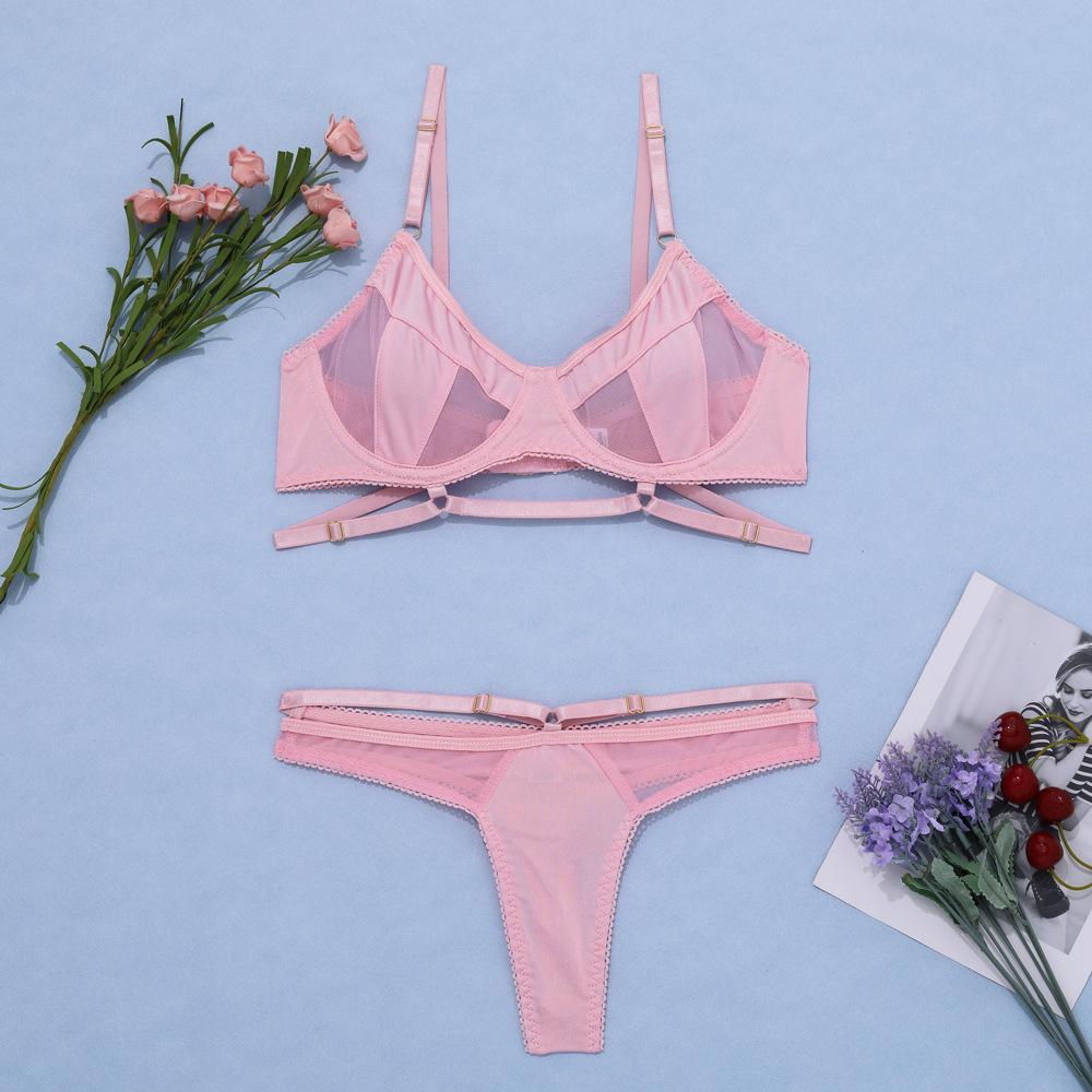 Conjunto de dos piezas de brasier push-up cómodo de malla con varilla Ls1666