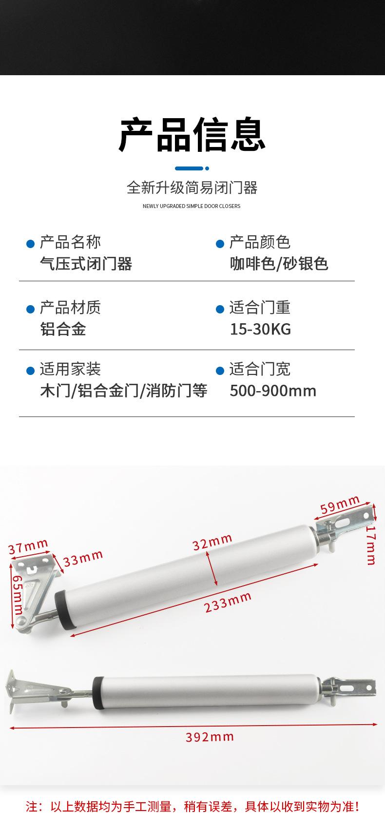 Cierrapuertas simple, cierrapuertas de presión de aire silencioso, cierrapuertas automático para el hogar, cierrapuertas de madera con interruptor de rebote
