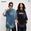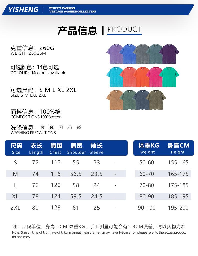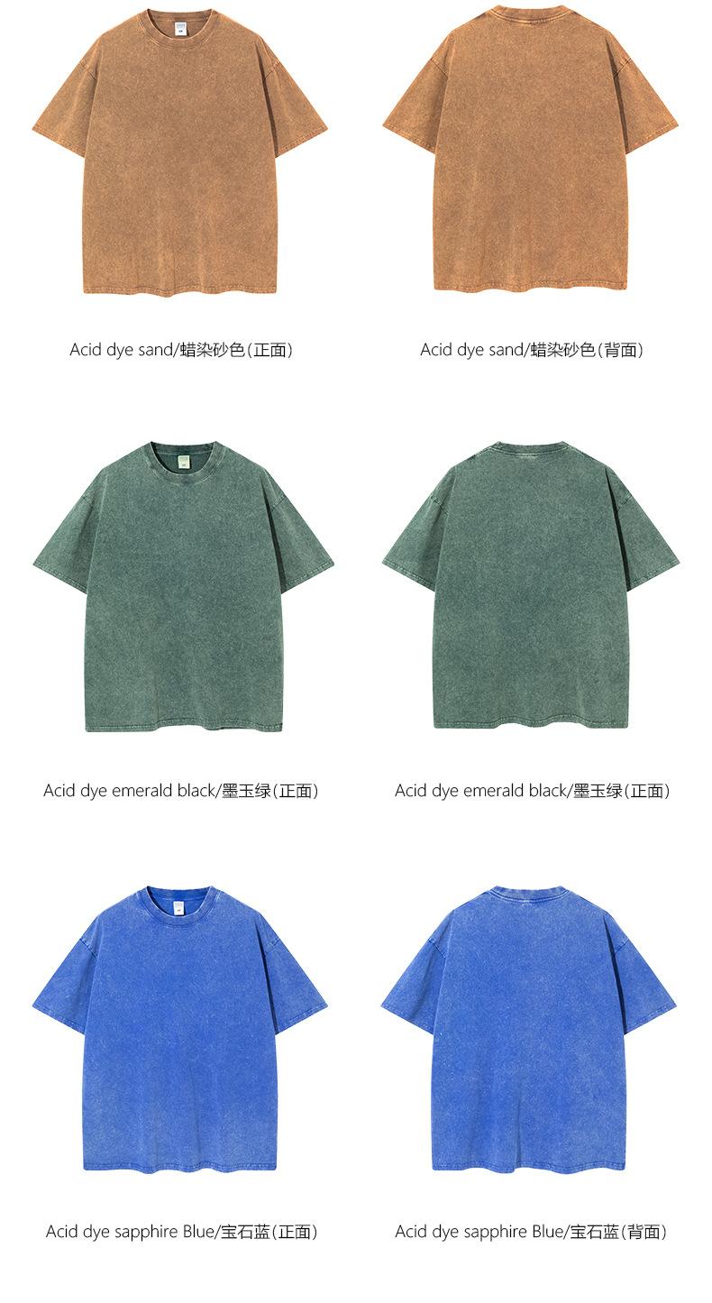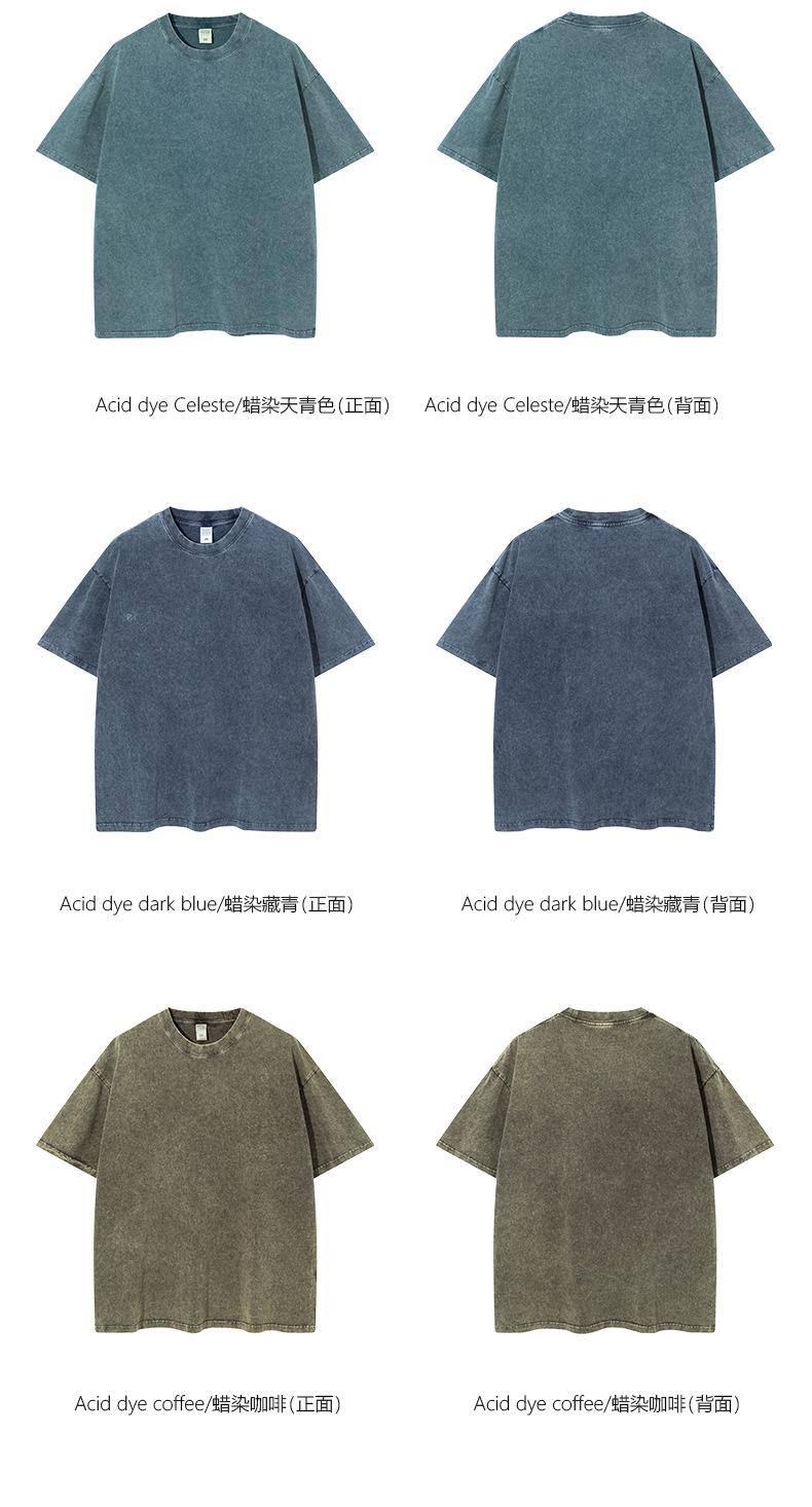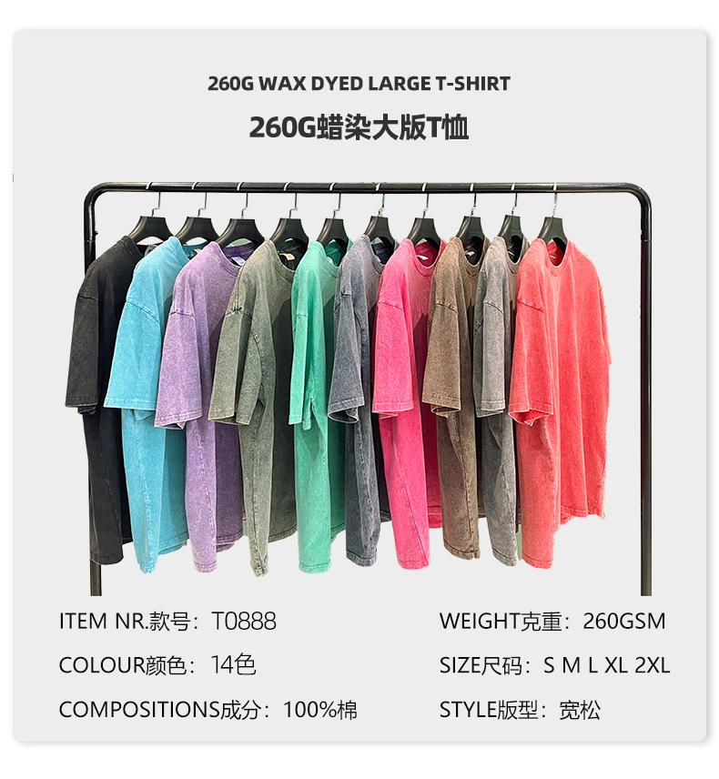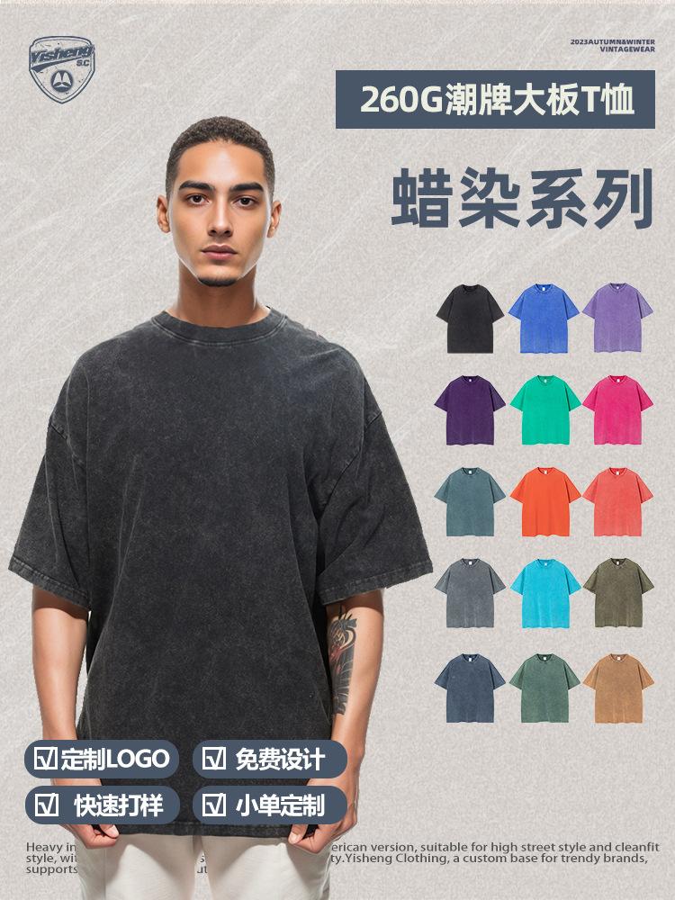 Talla Grande 260g Algodón Puro Americano Retro Batik Lavado y Desgastado Pesada Camiseta de Manga Corta para Hombre y Mujer Suelta Moderna Marca Venta al por Mayor