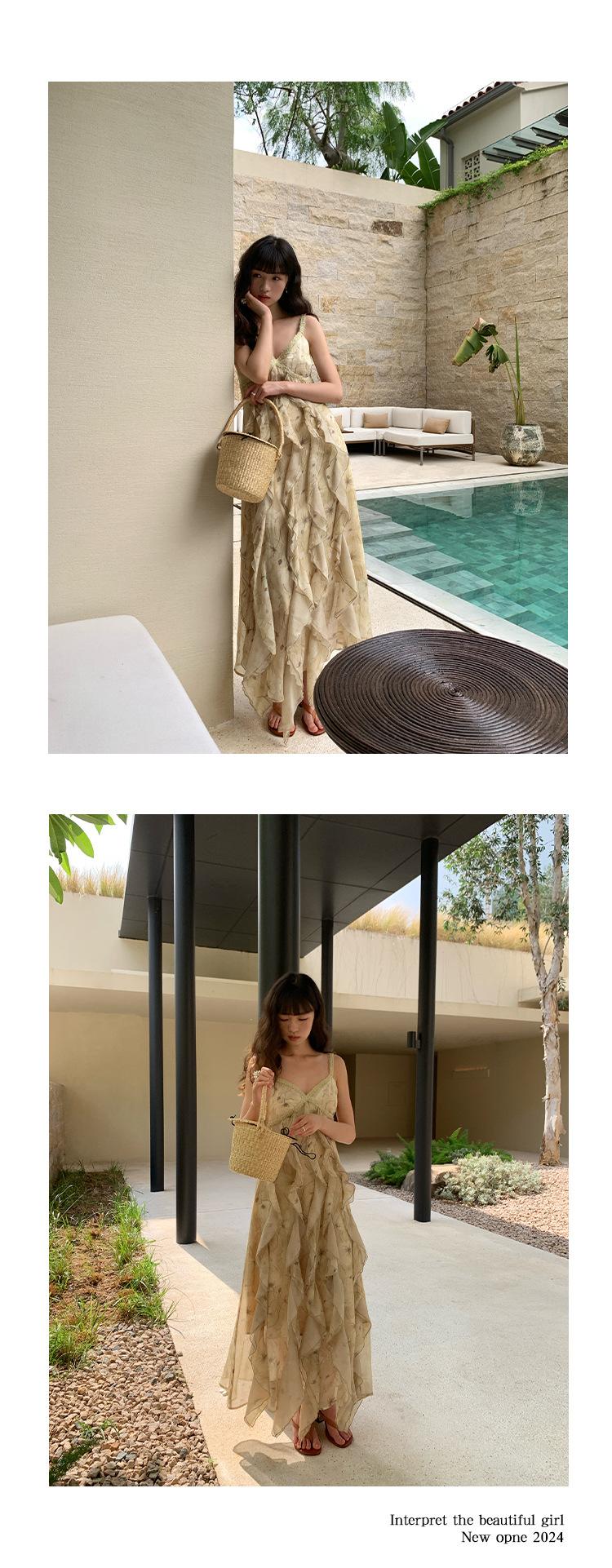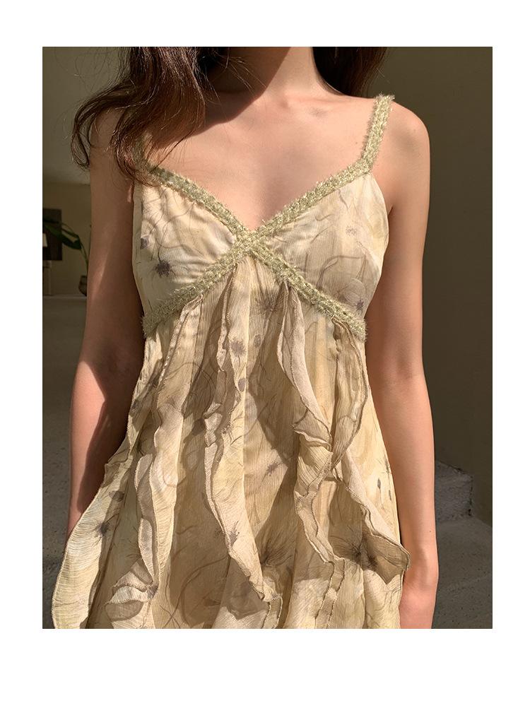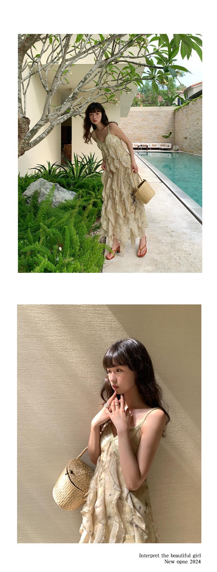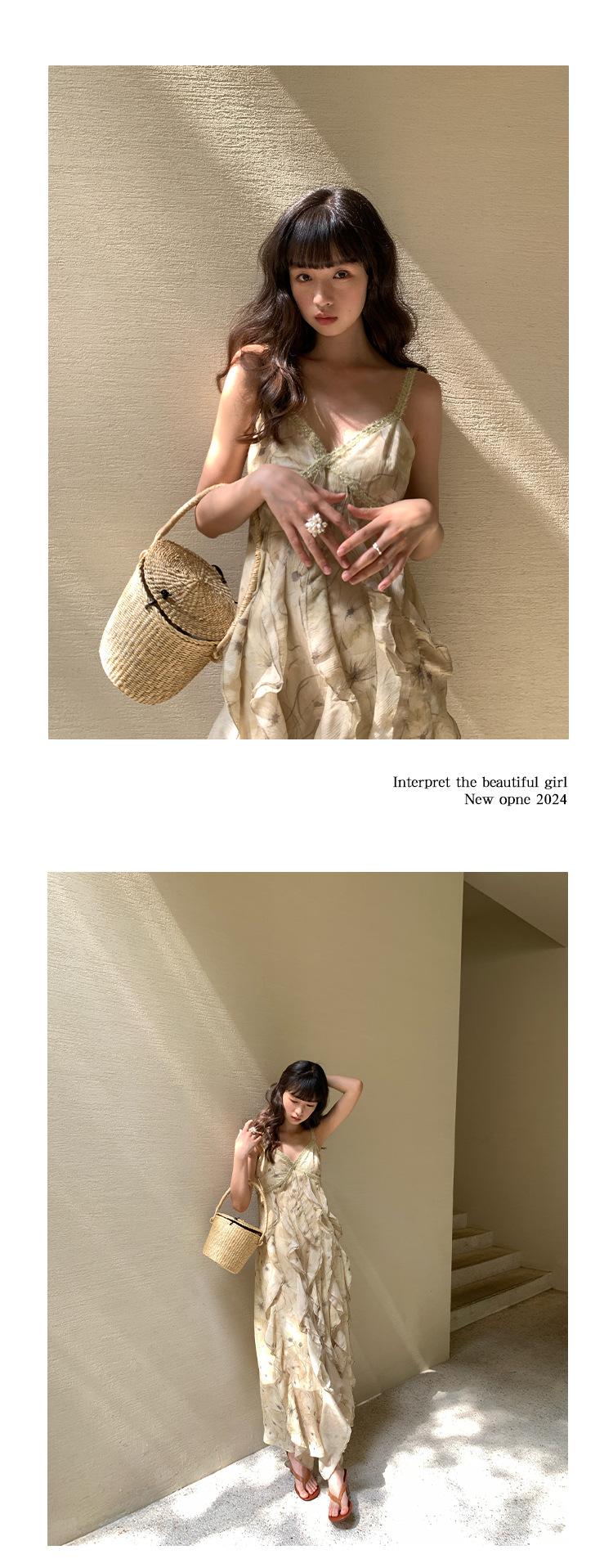 Interpretación de la Belleza Newopen Verano 2024 Hora del Té Francés Estilo Old Money Socialité Hermoso Vestido con Tirantes para Mujer S1015