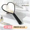 Espejo de maquillaje portátil pequeño con forma de amor, bonito espejo con asa, espejo de mano de plástico HD, espejo de belleza para niñas.