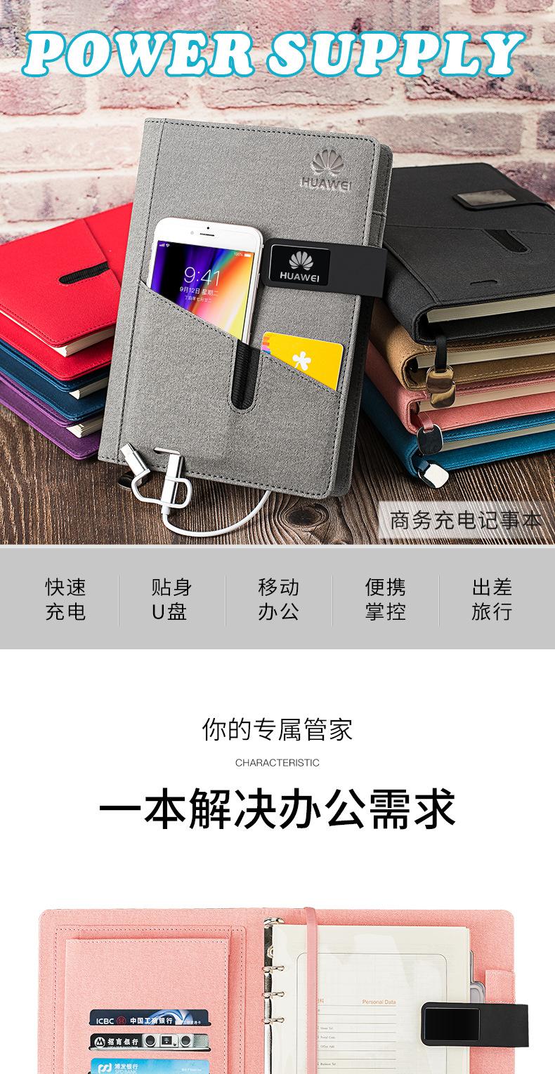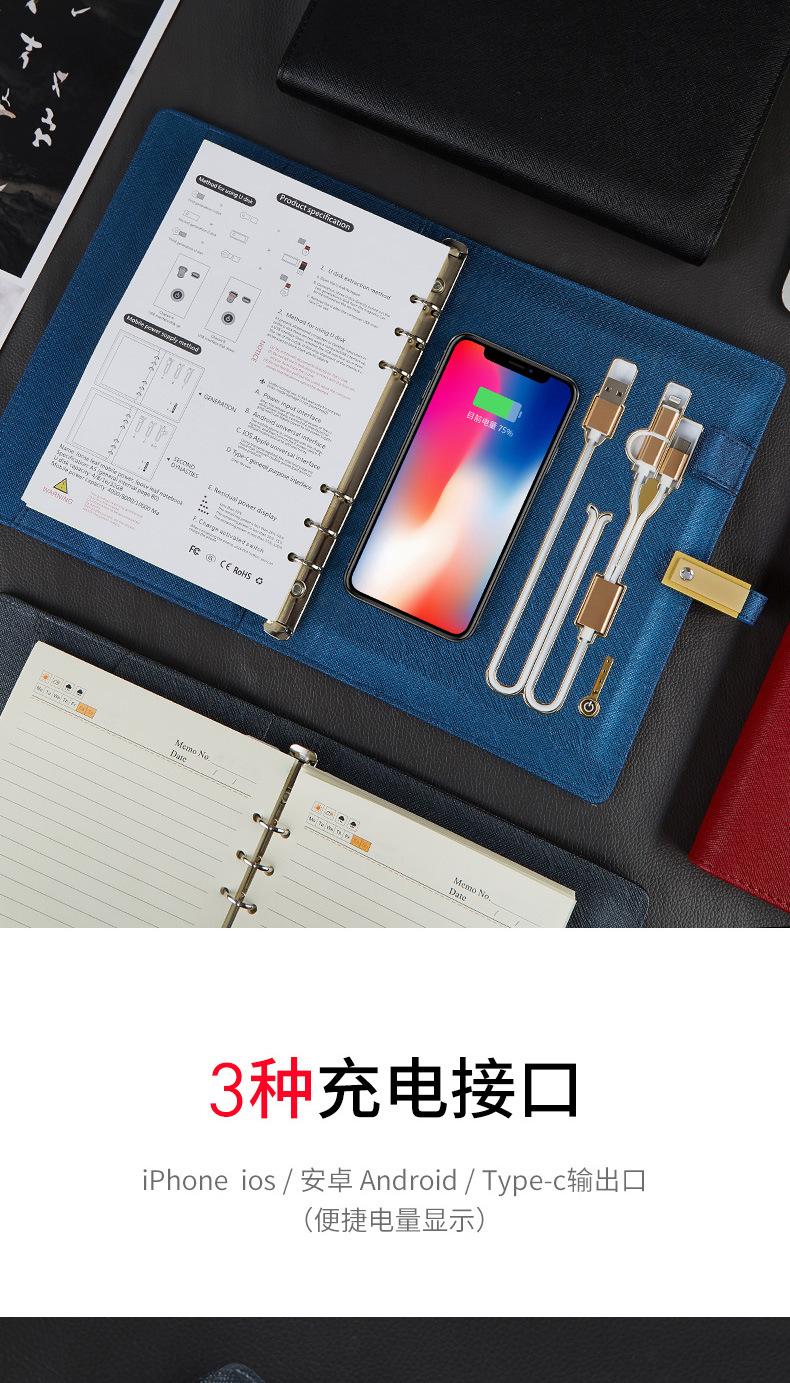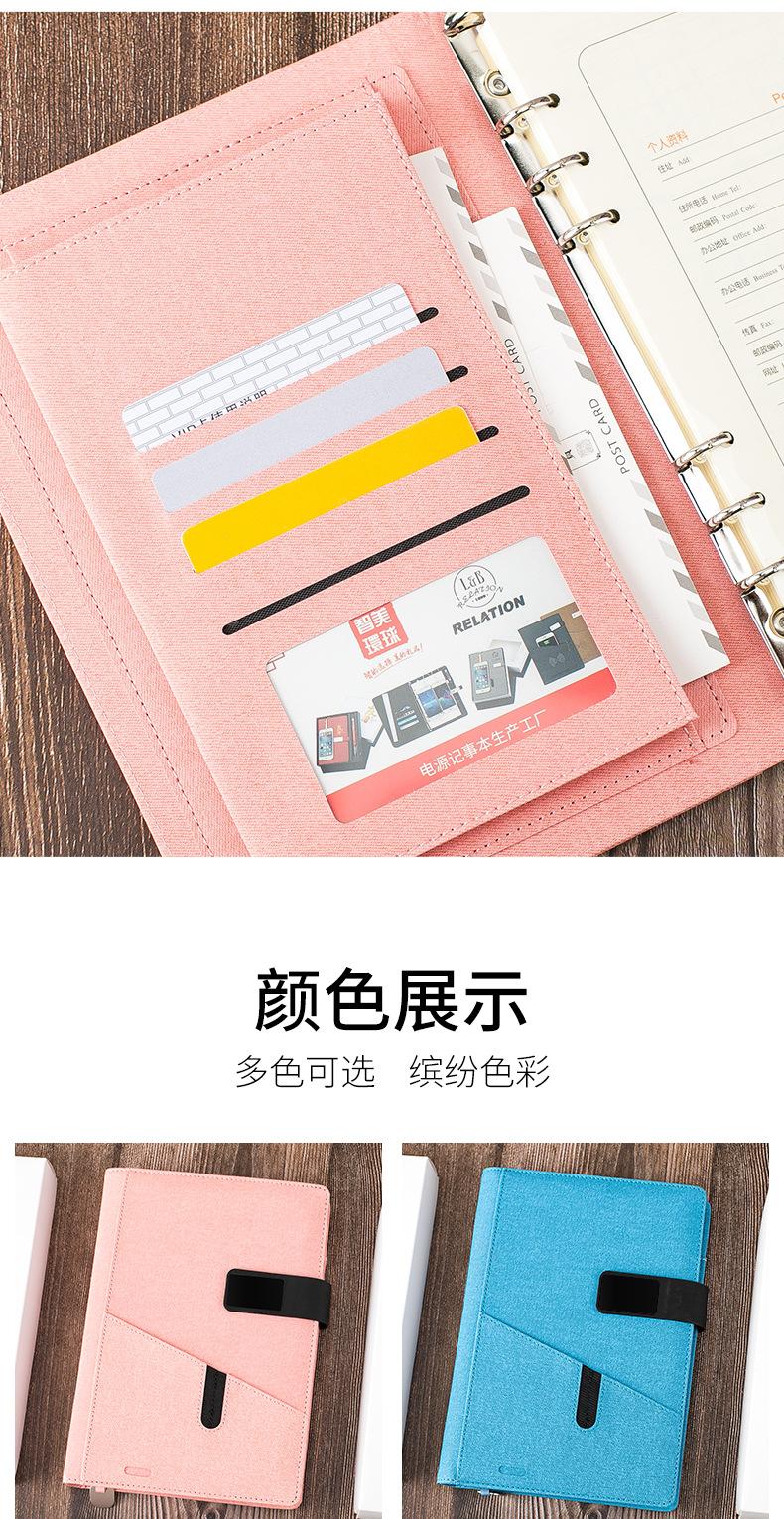 Regalo Oficina de Negocios Creativo Multifuncional Carga Cuaderno Bloc de Notas A5 Hojas Sueltas Set Cuaderno con Batería Portátil