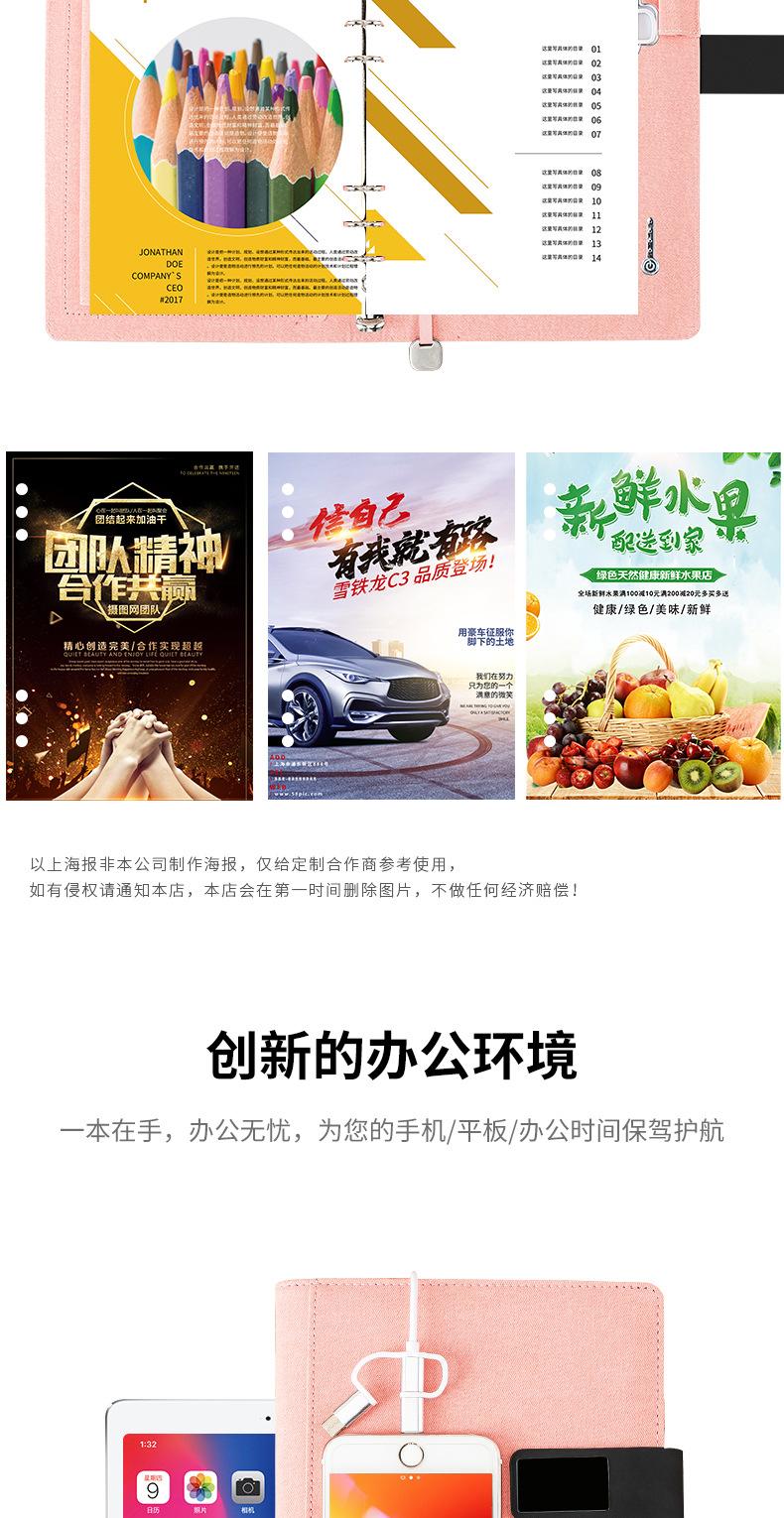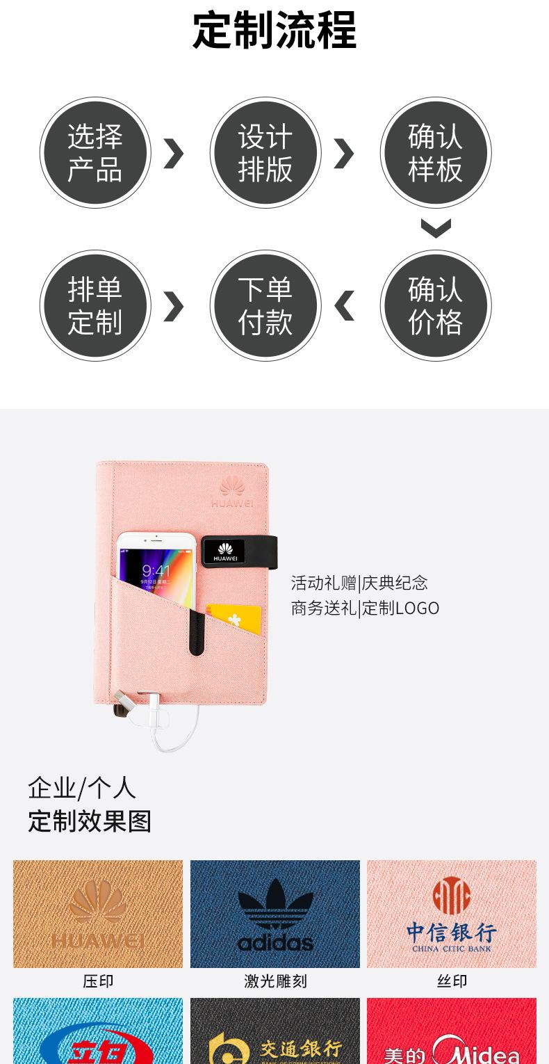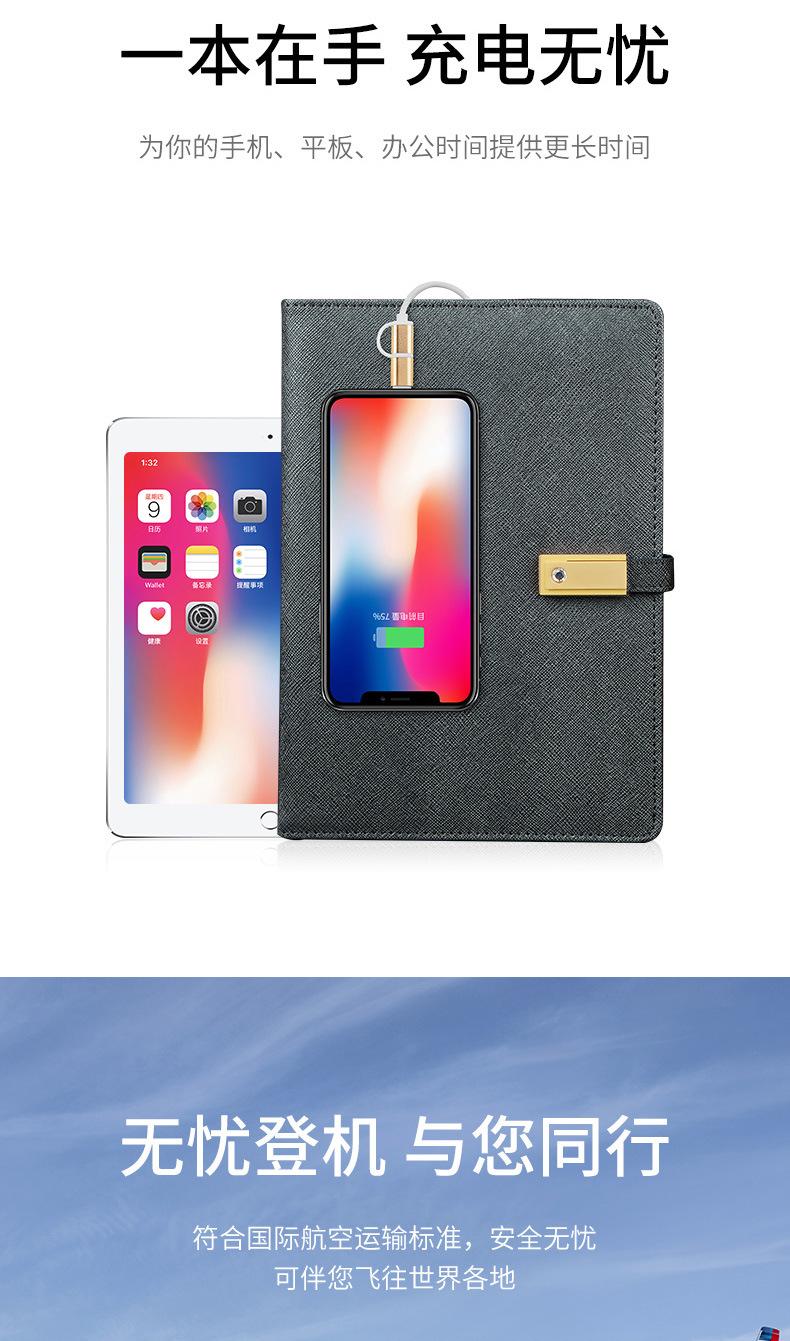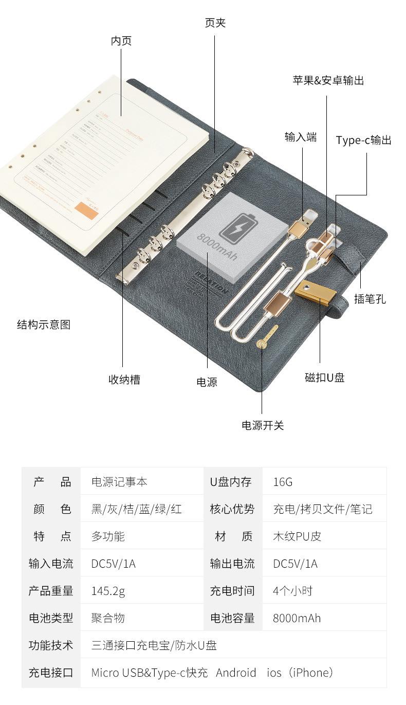 Regalo Oficina de Negocios Creativo Multifuncional Carga Cuaderno Bloc de Notas A5 Hojas Sueltas Set Cuaderno con Batería Portátil