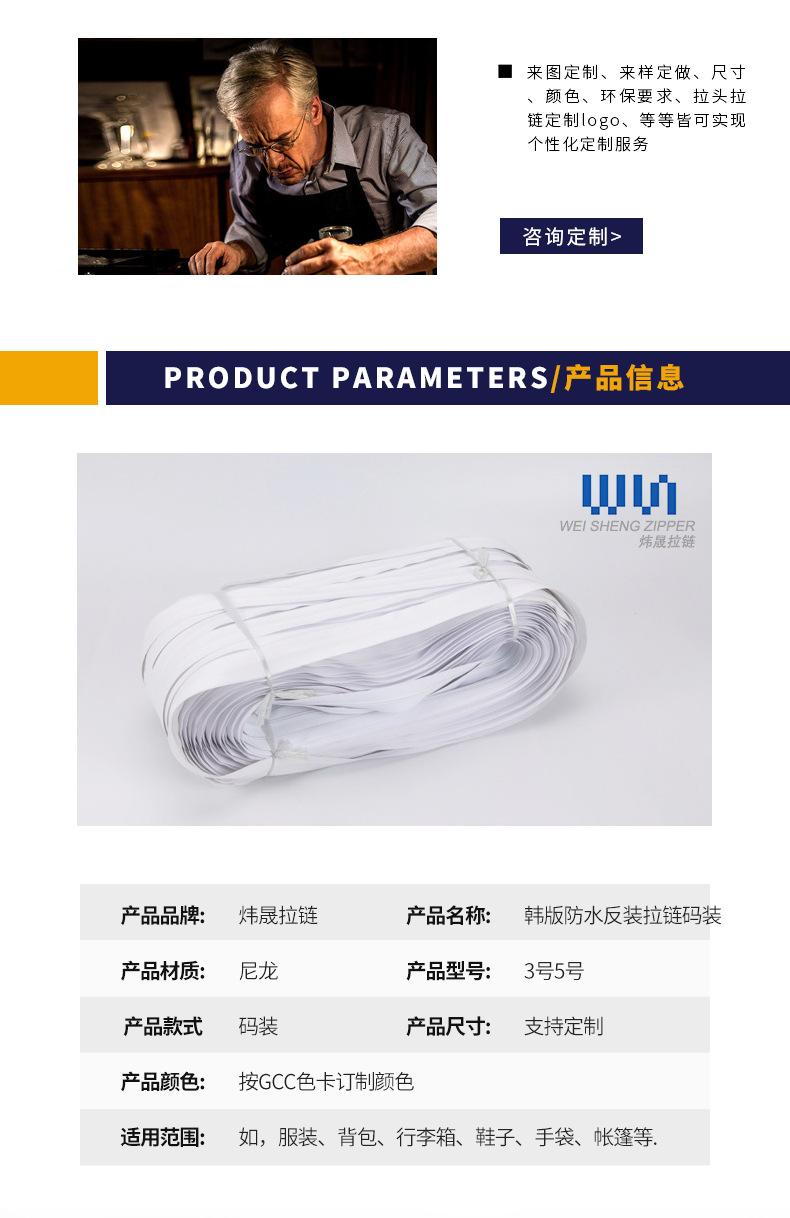 No.3 No.5 Chaqueta de Plumón Cortavientos con Cremallera Impermeable Blanca Cremallera Autoblocante Coreana PVC Impermeable Cremallera con Código