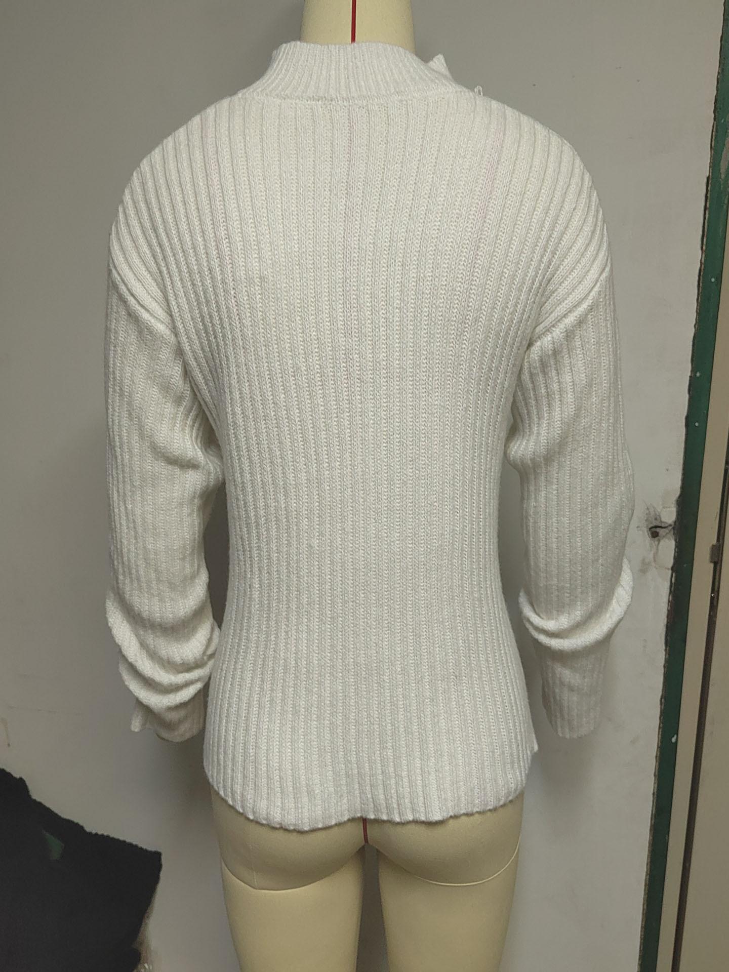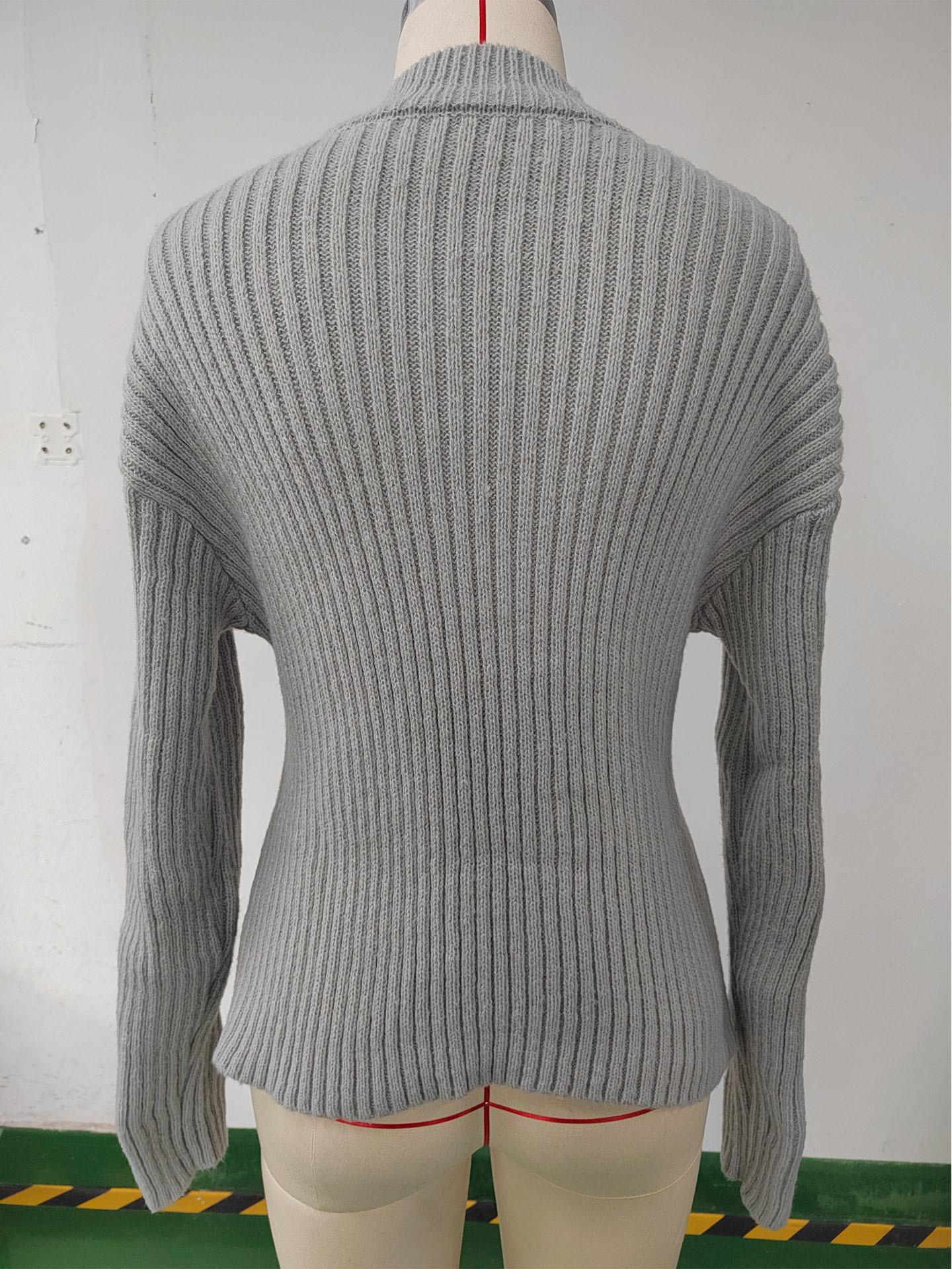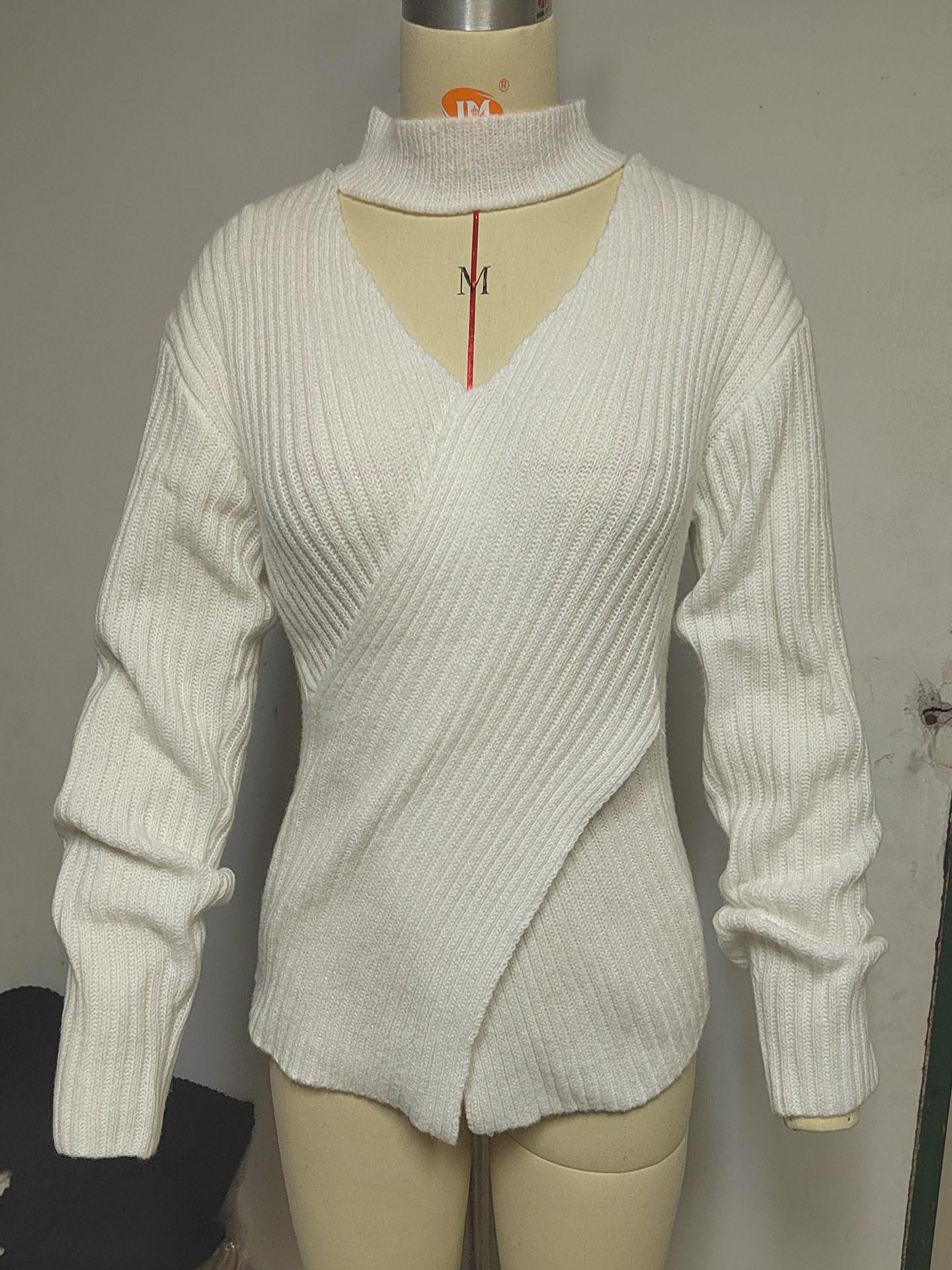 Europeo y Americano Otoño e Invierno Nuevo Transfronterizo Amazon Tops de Punto para Mujer con Cuello Halter en V Tejido de Punto de Color Puro para Mujer