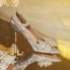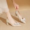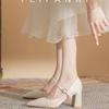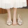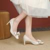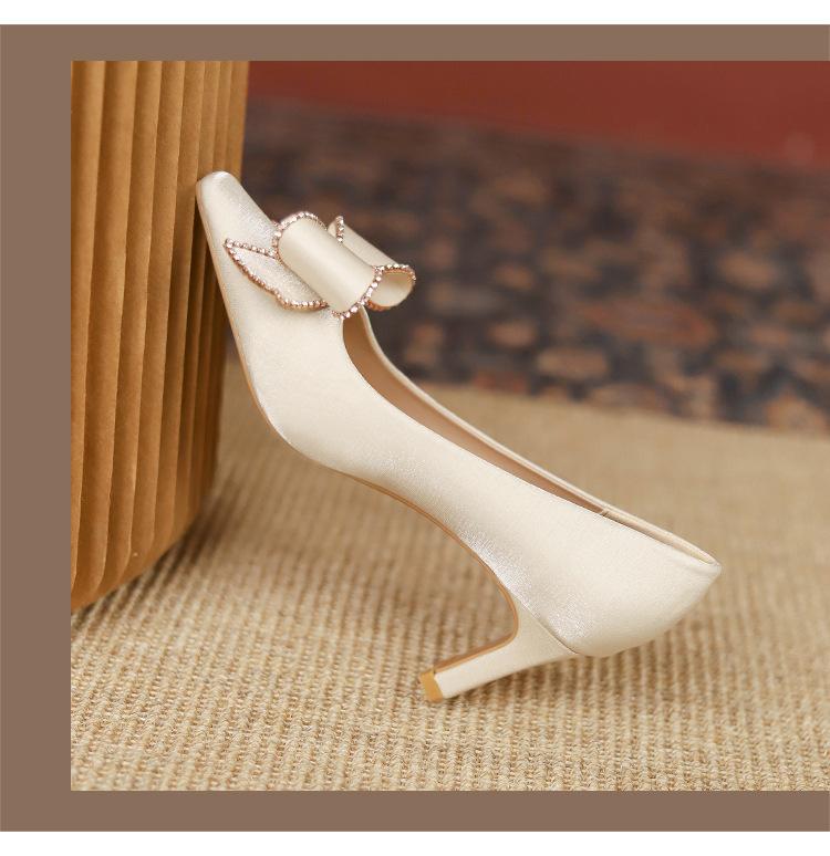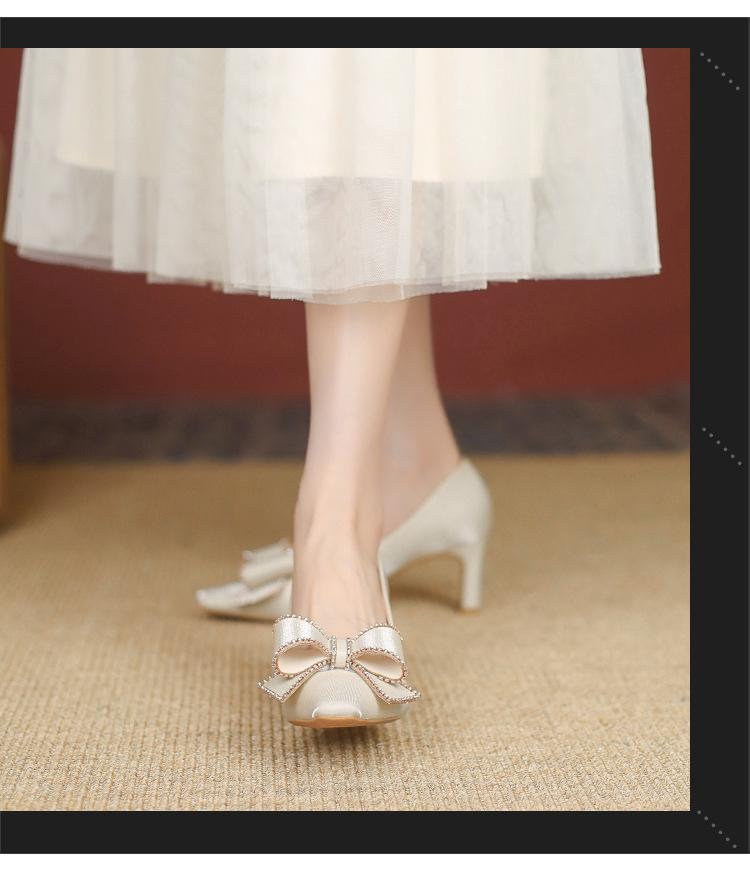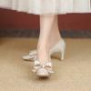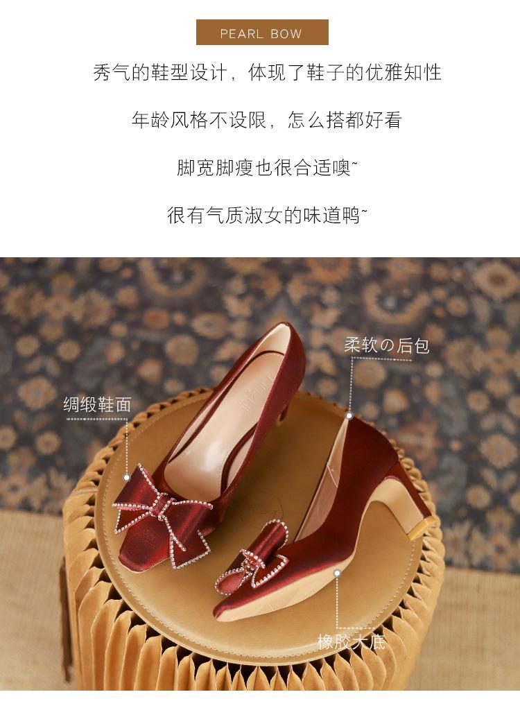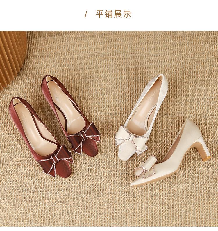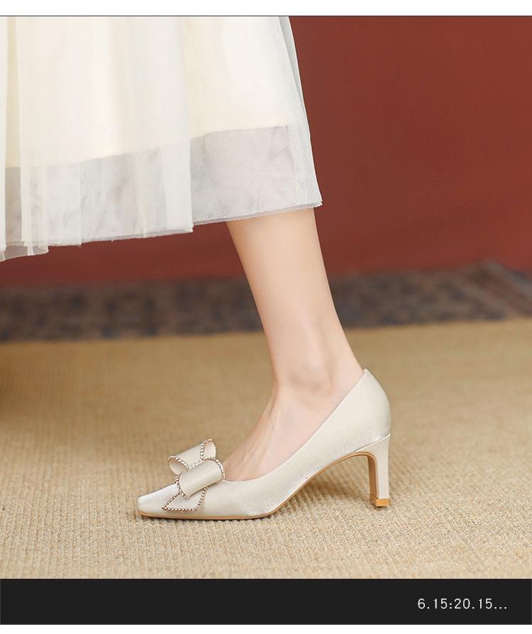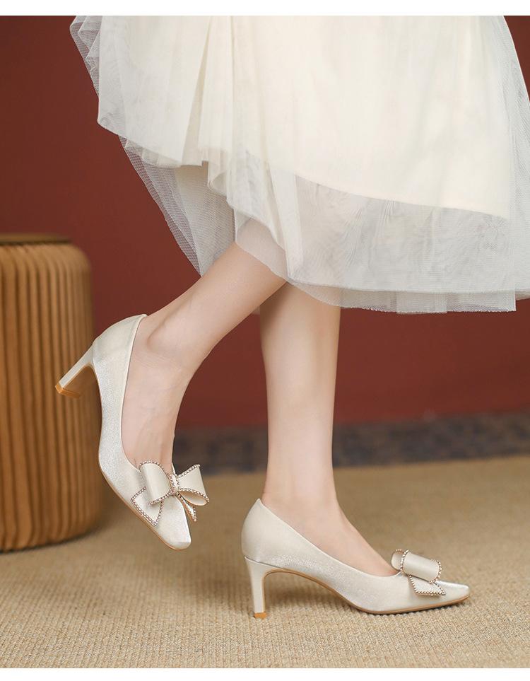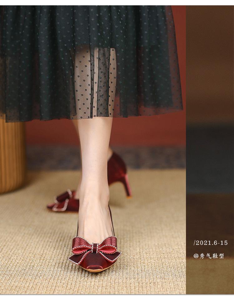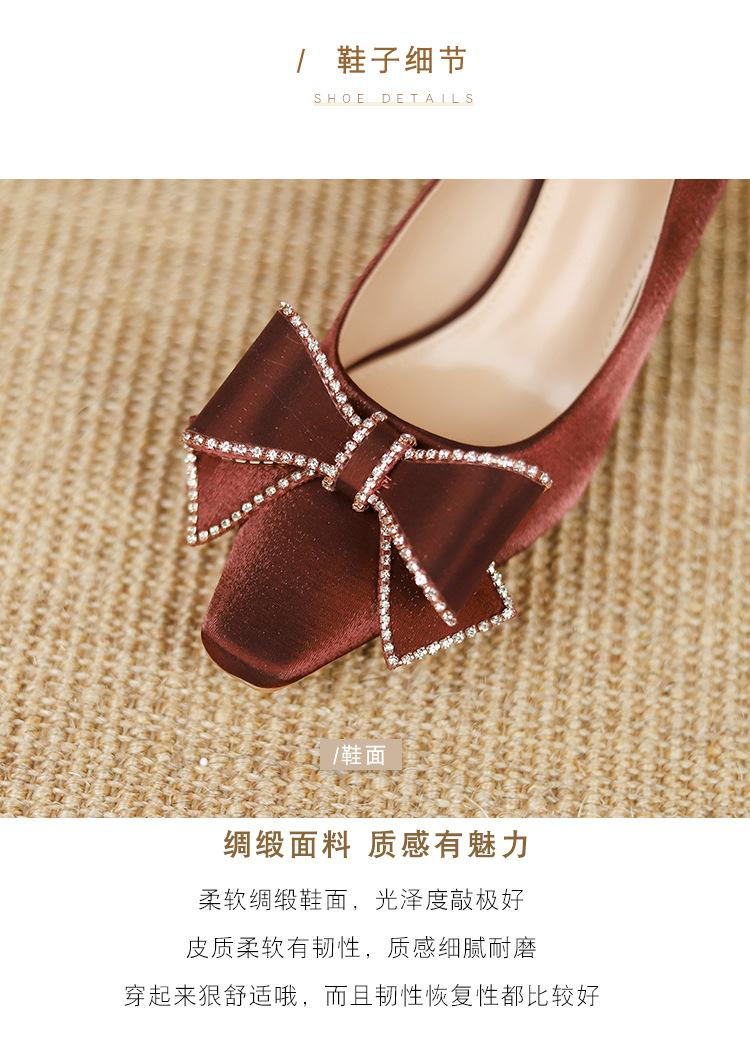 Zapatos de boda para mujer con punta cuadrada, tacón alto, lazo grueso, color rojo, otoño 2023, nuevos zapatos de boda de piel de oveja para dama de honor, para pies no cansados