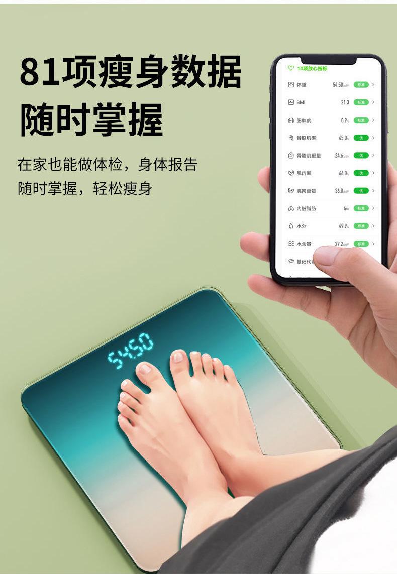 Báscula de grasa corporal inteligente de precisión con Bluetooth, balanza electrónica con gradiente de color de alta calidad, balanza corporal para el hogar, venta al por mayor