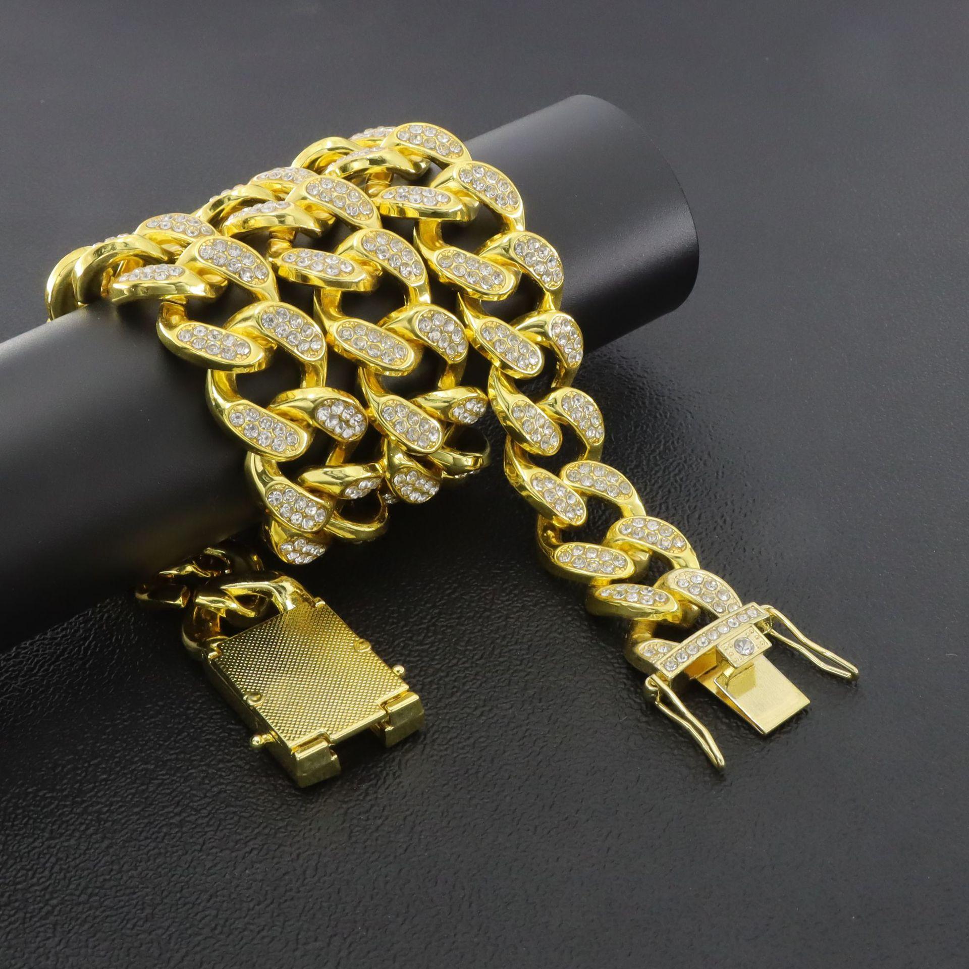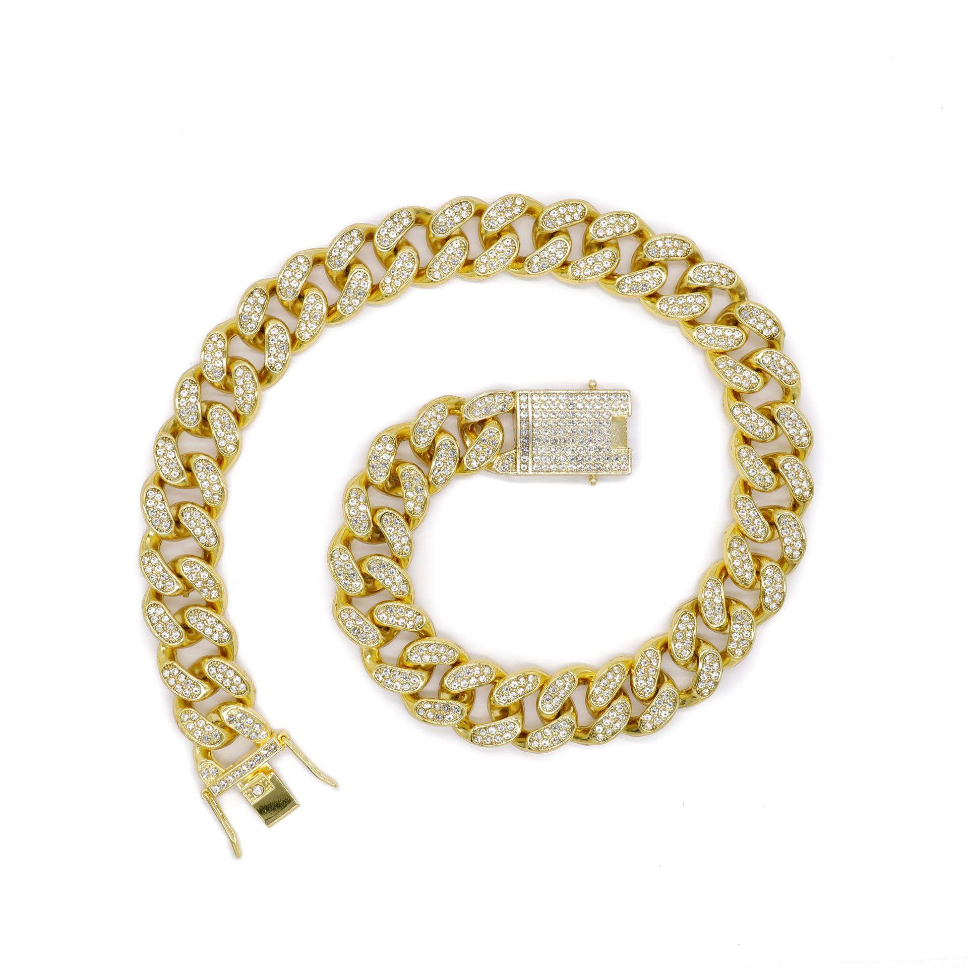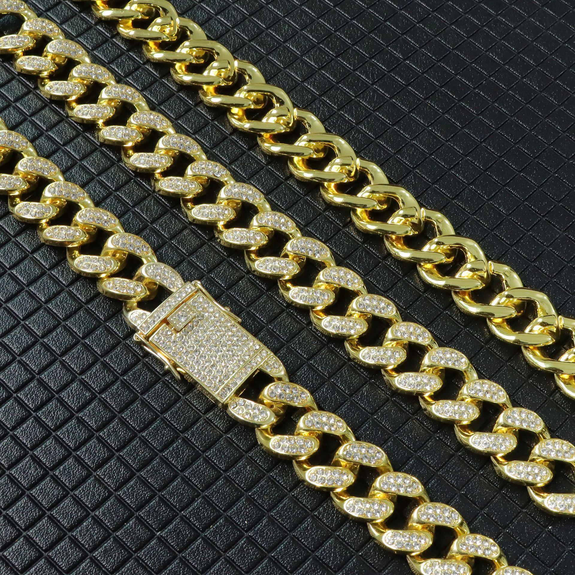 Aleación Pedrería 20mm Grueso Diamante Cadena Diamante Cubana Eslabón Cubano Esquina Grande Redonda Cadena de Cuerda