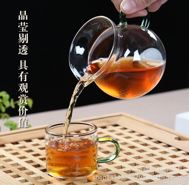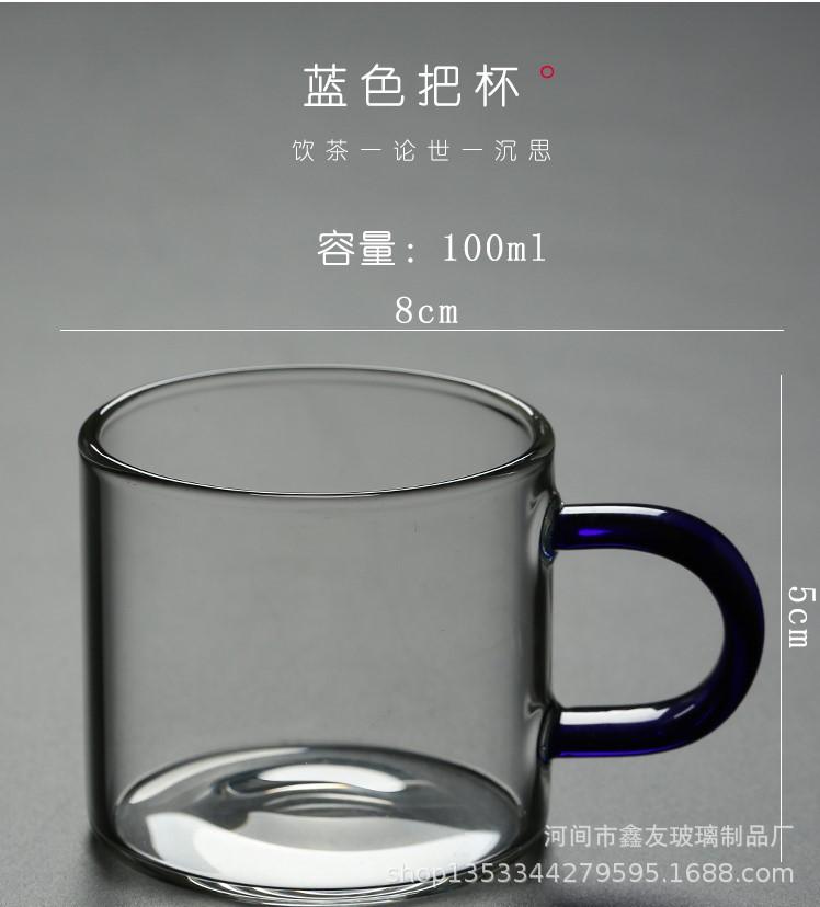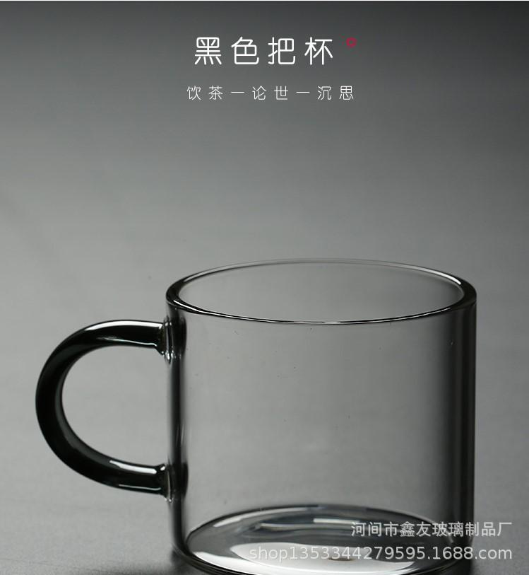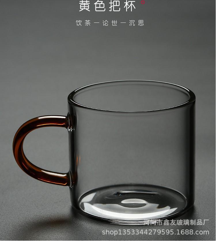 Taza de té de vidrio grueso, taza de té transparente resistente al calor con asa, taza de té para el hogar, taza maestra, taza de té para el oído