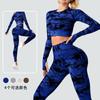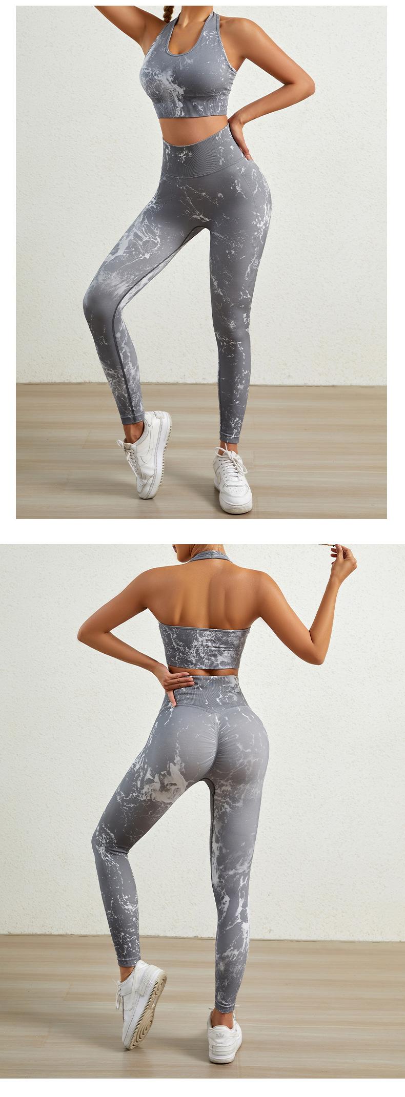 Ropa de Fitness Transfronteriza Europea y Americana Conjunto de Ropa de Yoga Seamless Tie-Dye Sujetador Halter Pantalones de Cintura Alta Levanta Glúteos Traje Deportivo