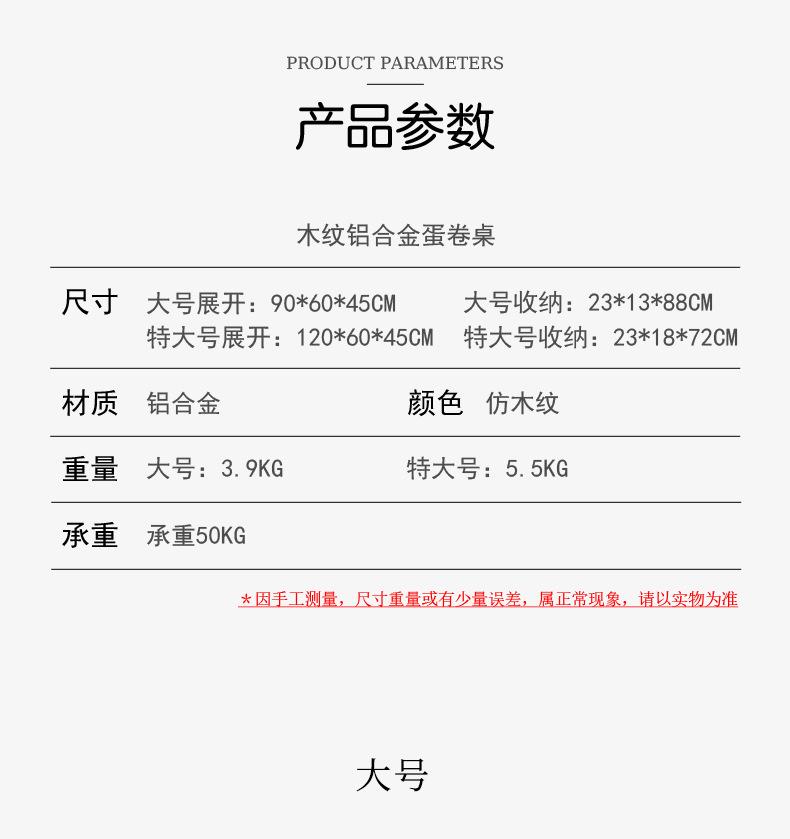 Mesa plegable para exteriores con forma de rollo de huevo, de aleación de aluminio, ligera, portátil, para varias personas, para acampar y barbacoa, con diseño de imitación de madera.