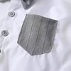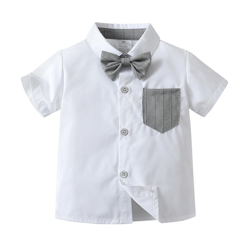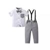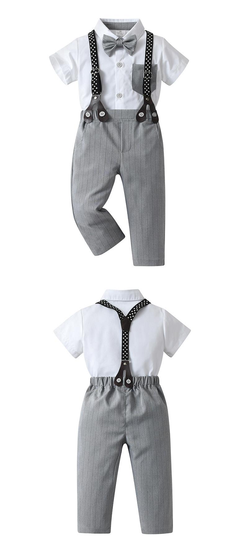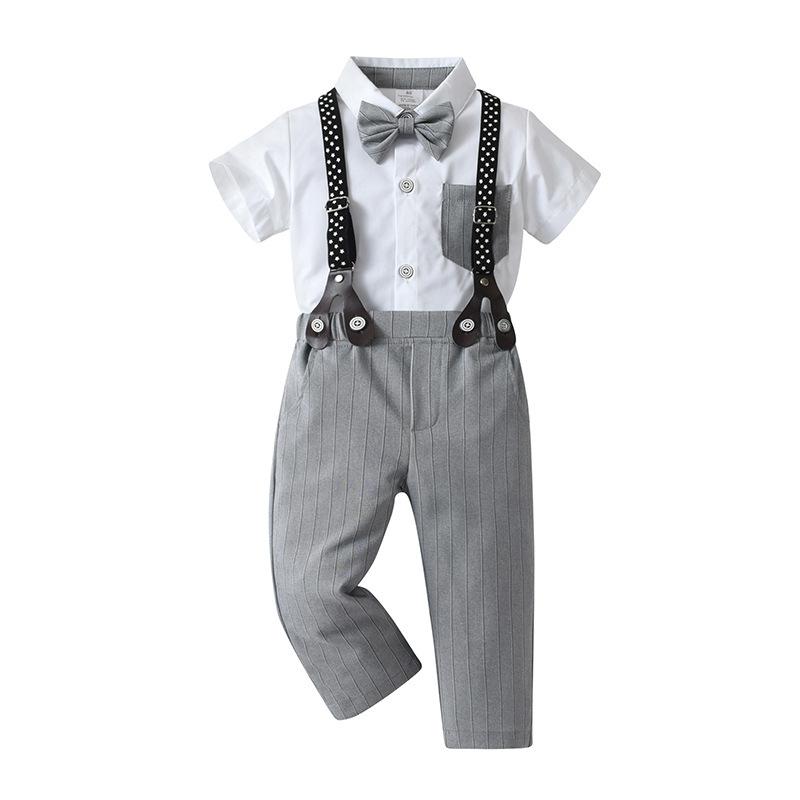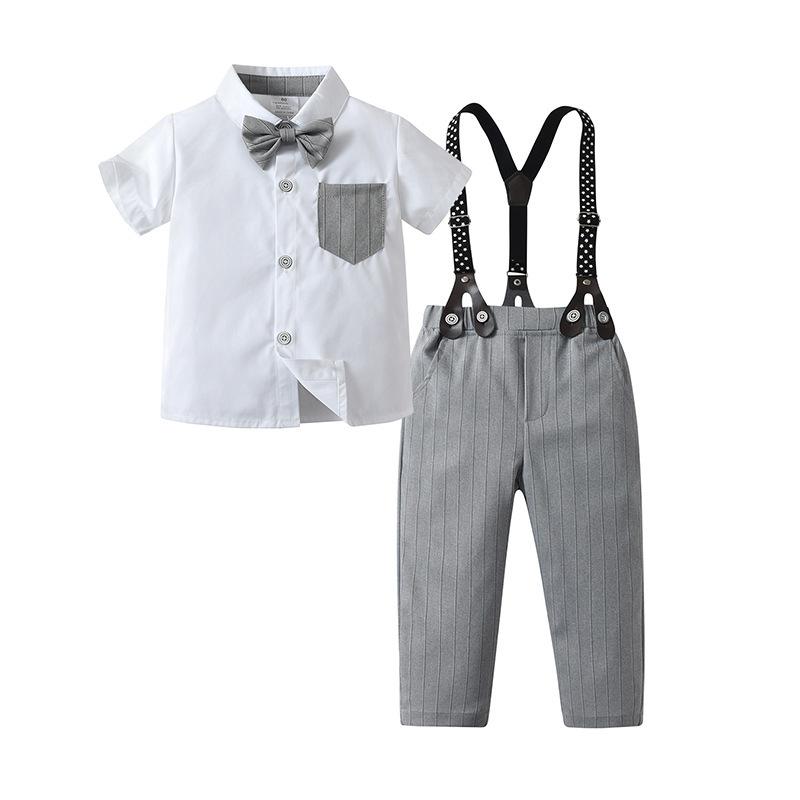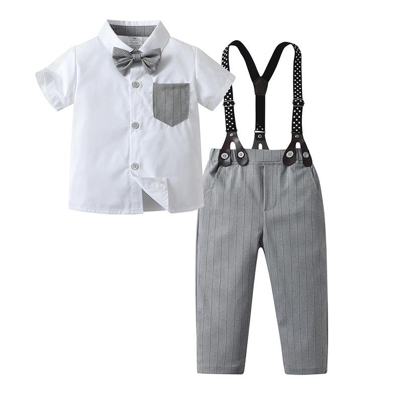 Nuevo traje de dos piezas para niños transfronterizos, ropa de bebé de verano, traje de caballero británico a rayas de manga corta para niño