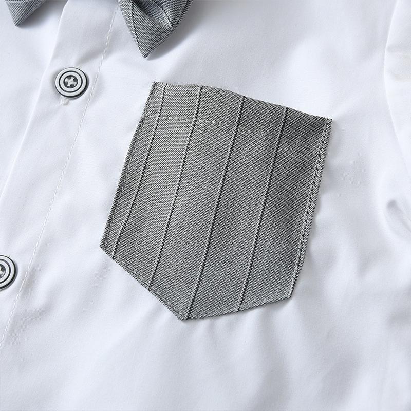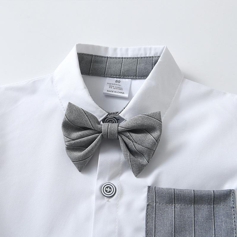 80-90-100-110-120-130 nueva ropa infantil transfronteriza, mono de dos piezas, ropa de bebé de verano de manga corta a rayas, traje de caballero británico para niño