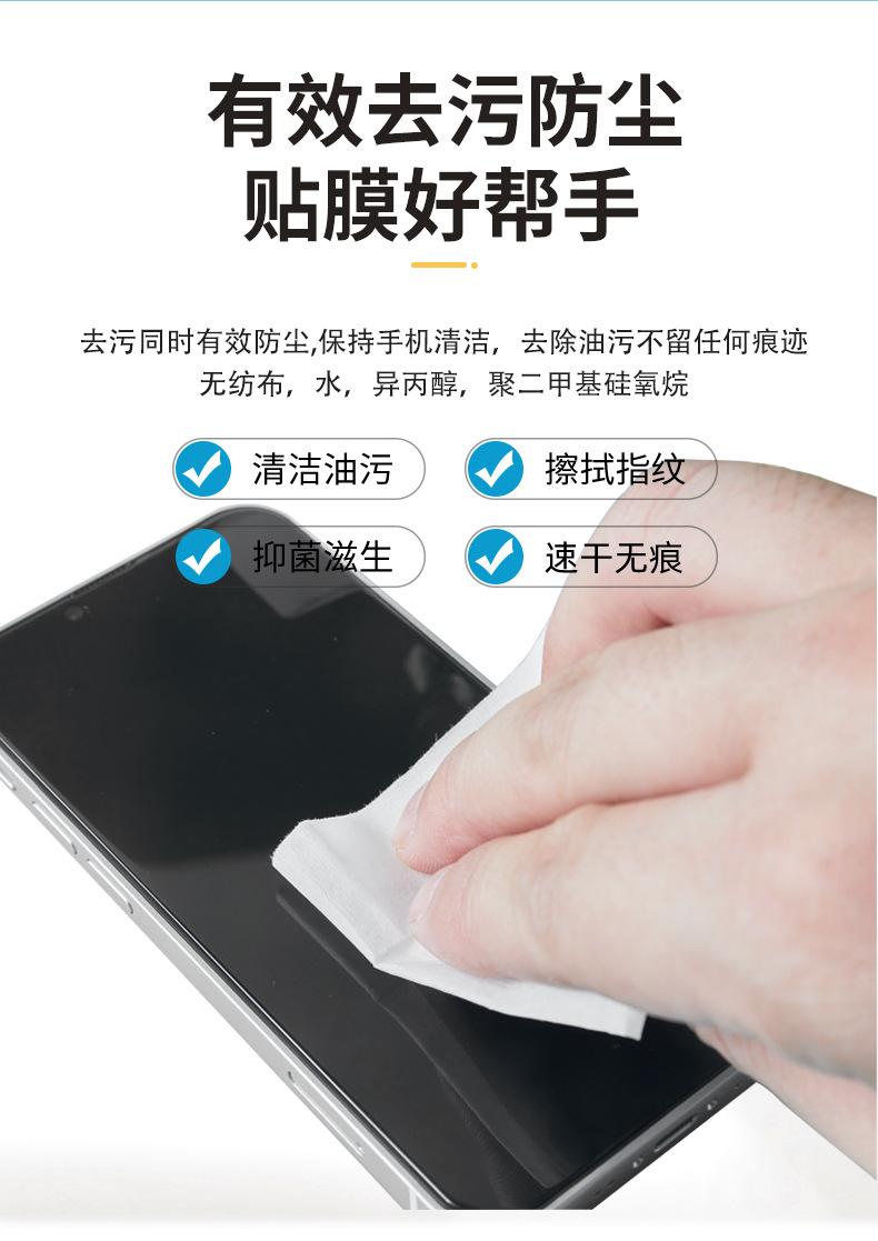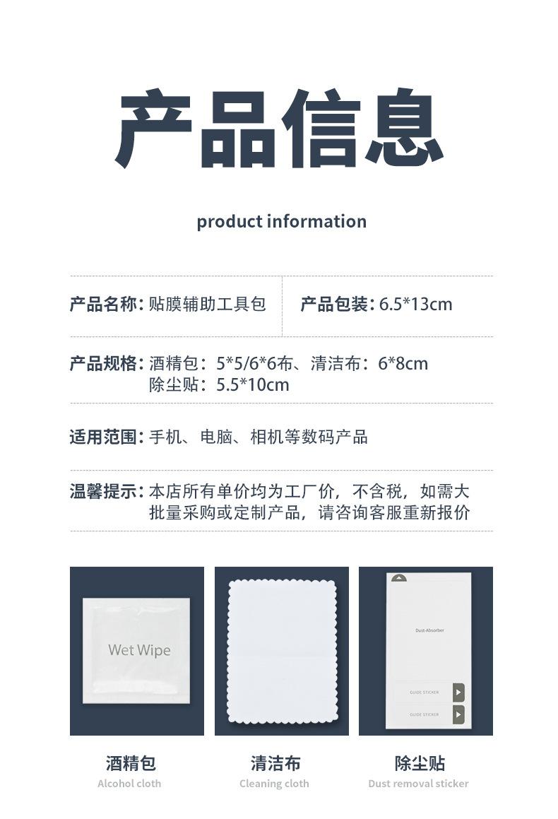 Kit de película neutra para teléfono móvil, película templada, bolsa de alcohol, pasta quitapolvo para pantalla, paño de limpieza, juego de tres piezas, venta al por mayor